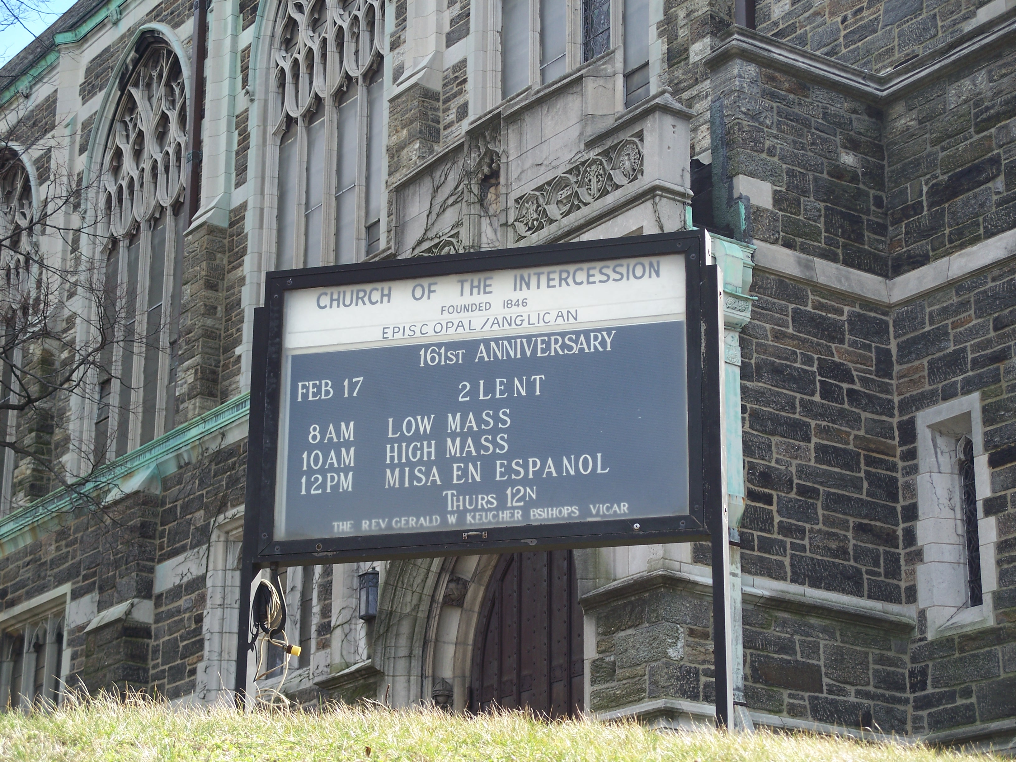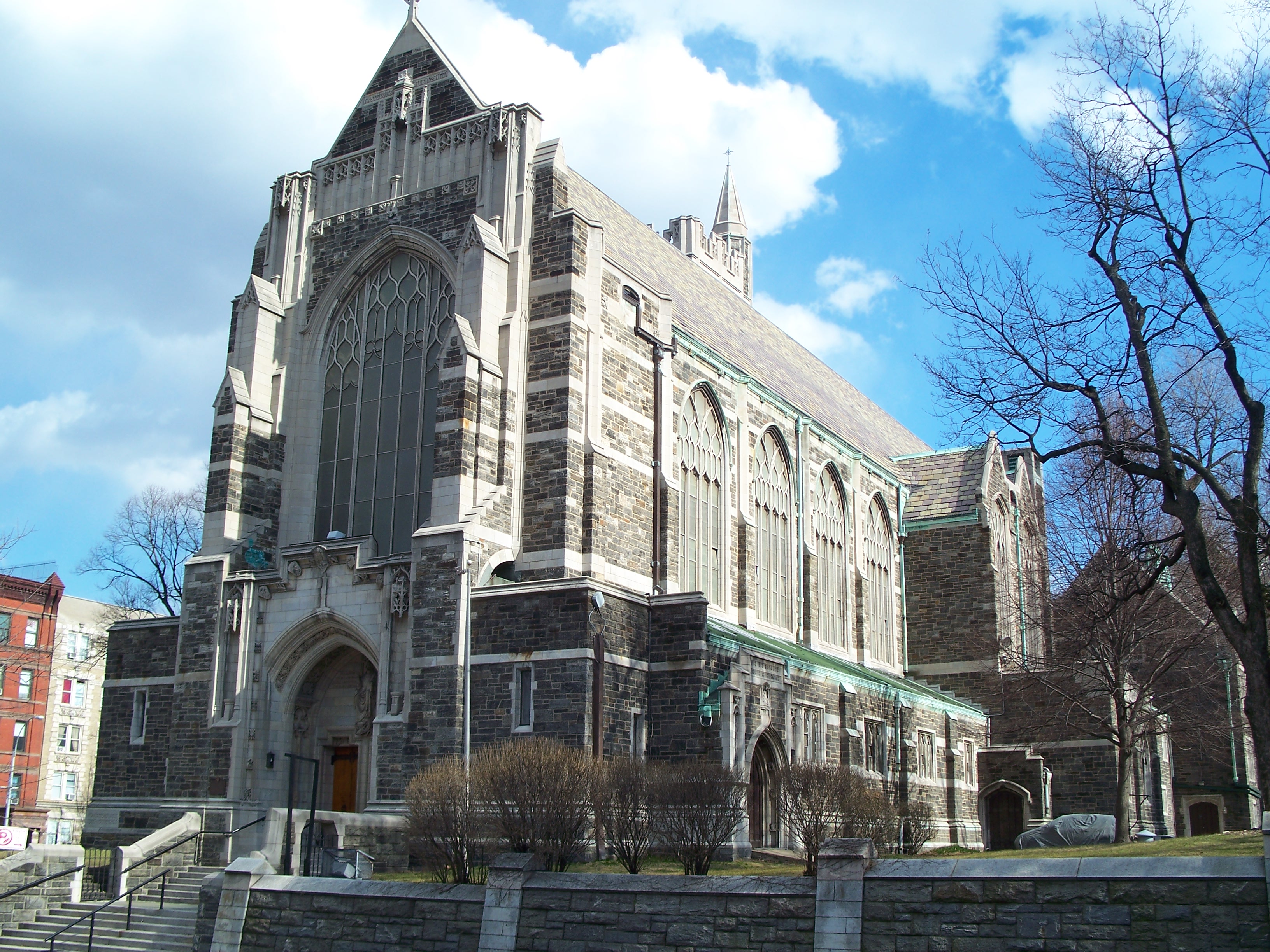 The result of that merger was this Gothic Revival building designed by Bertram Grosvenor Goodhue which was dedicated in 1915. The building is a New York City Landmark and was added to the National Register of Historic Places in 1980. The Church of the Intercession separated amicably from Trinity and became an independent congregation again in 1976.