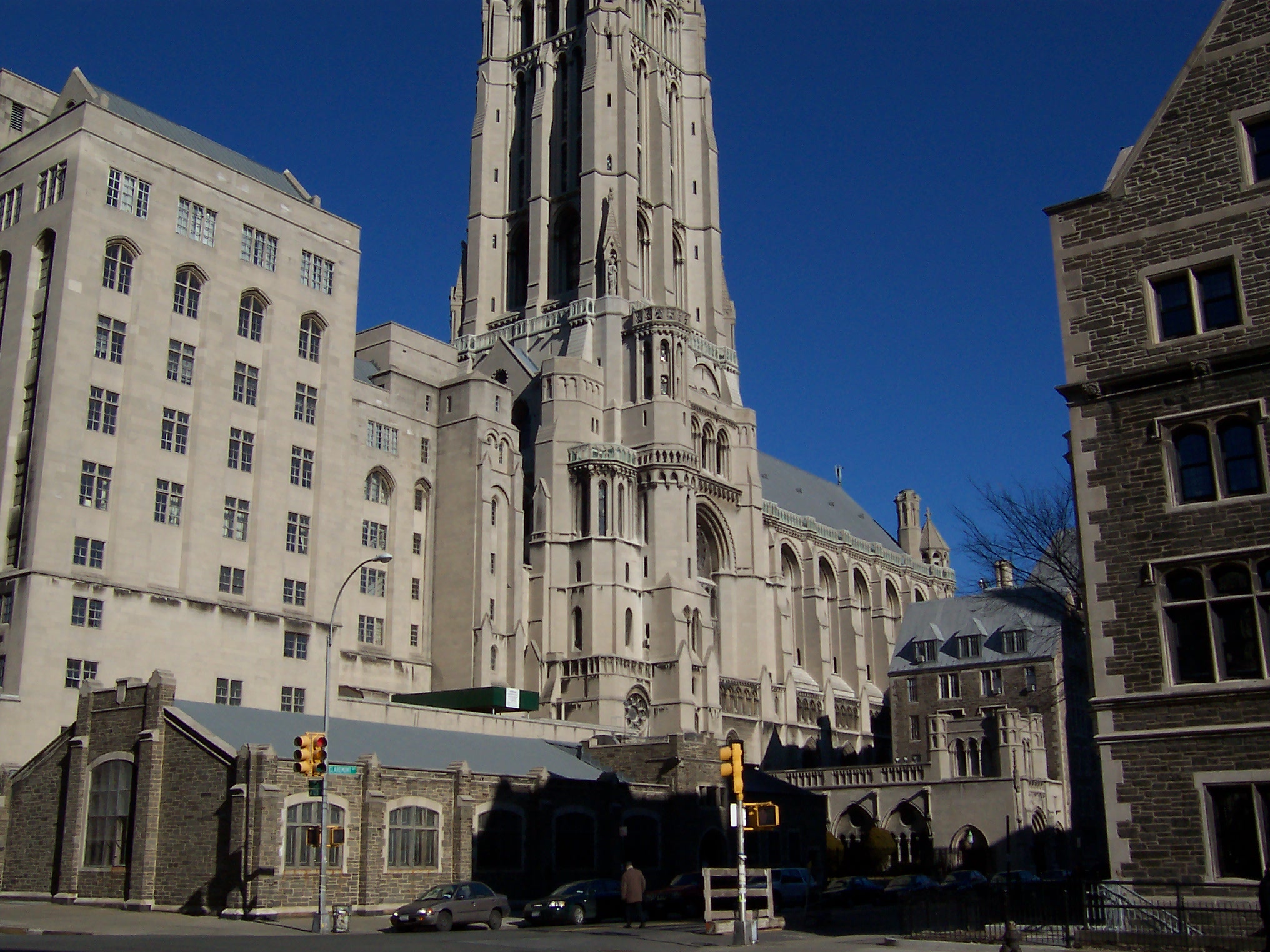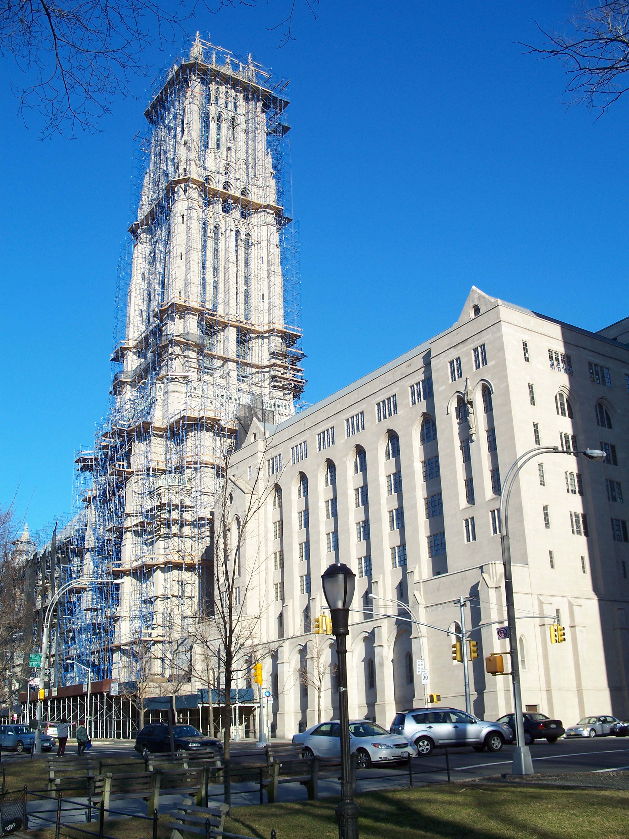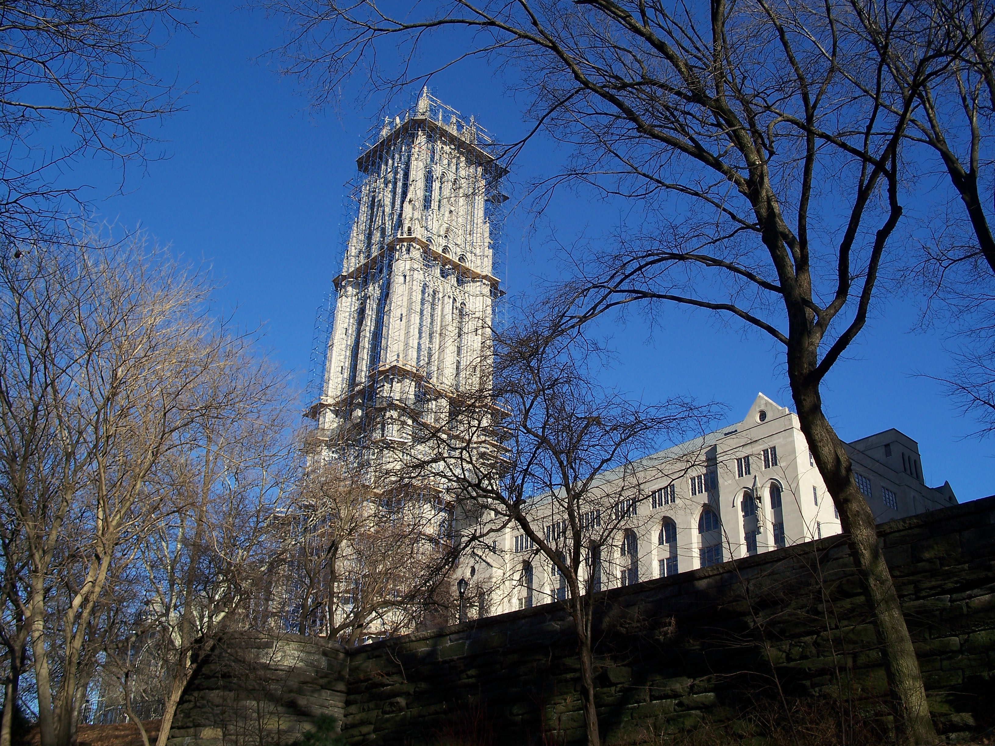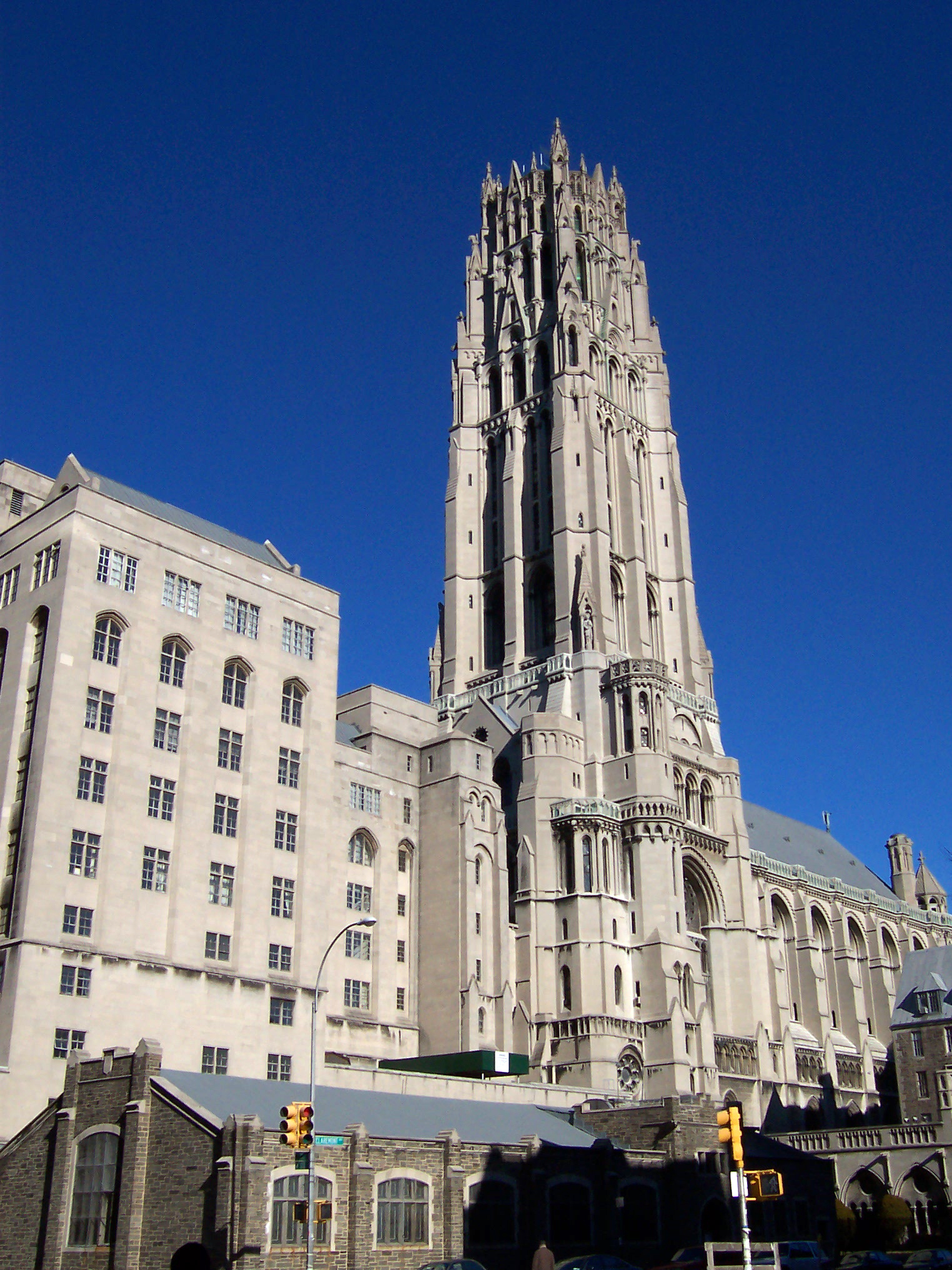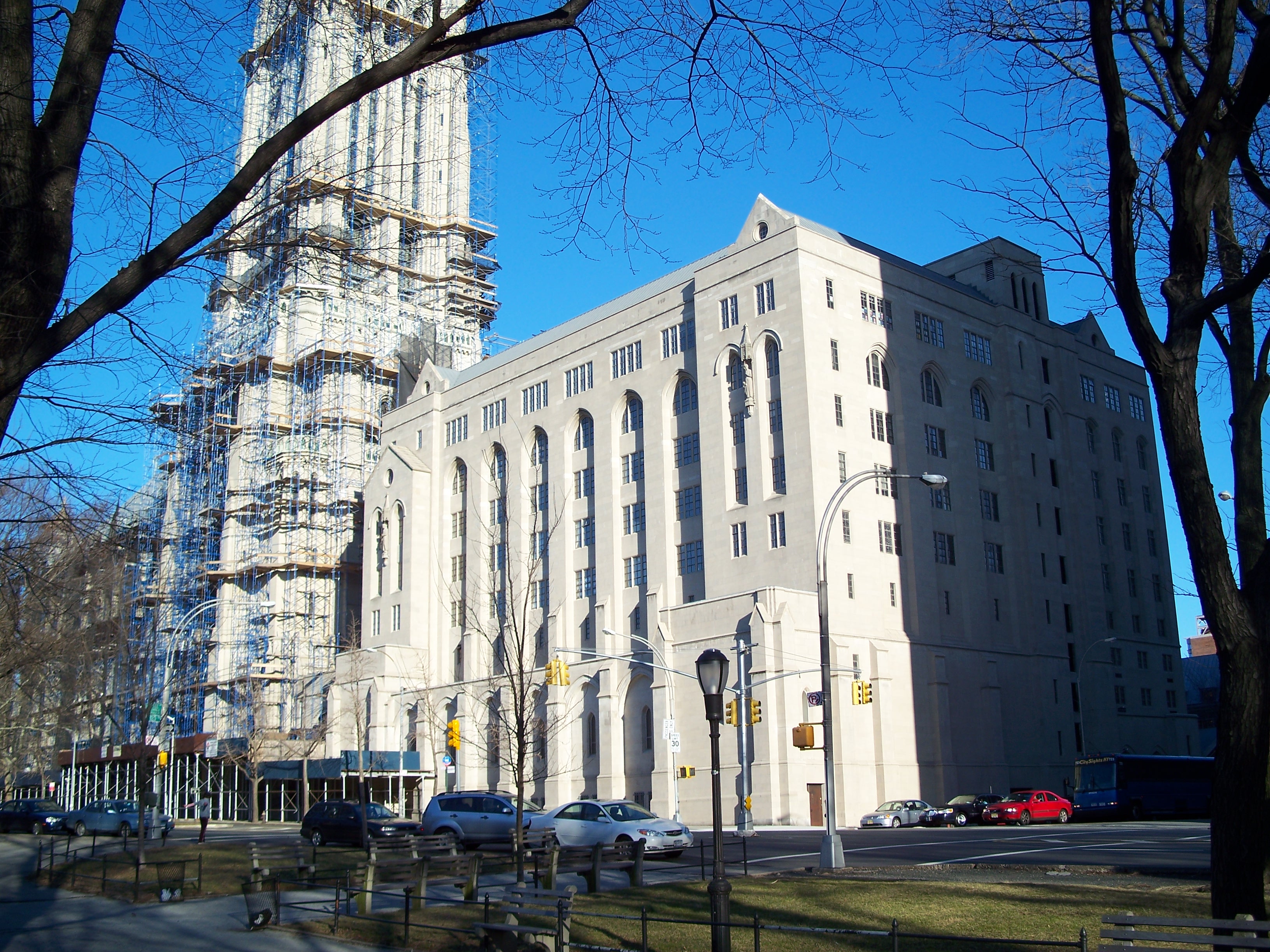 Union Theological Seminary sits just across Clairmont Avenue from the church in a building that opened in 1910. Following construction of the church, Rockefeller built McGiffert Hall as a residence for seminary students on the northeast corner of the block next to the Riverside Church nave. The placement of McGiffert Hall was an exchange with the seminary for land they owned on the southern part of the church block that Rockefeller wanted for future expansion of the church (Dolkert 1998). The South Wing containing offices, classrooms, a parking garage and other social facilities was dedicated on December 6, 1959.