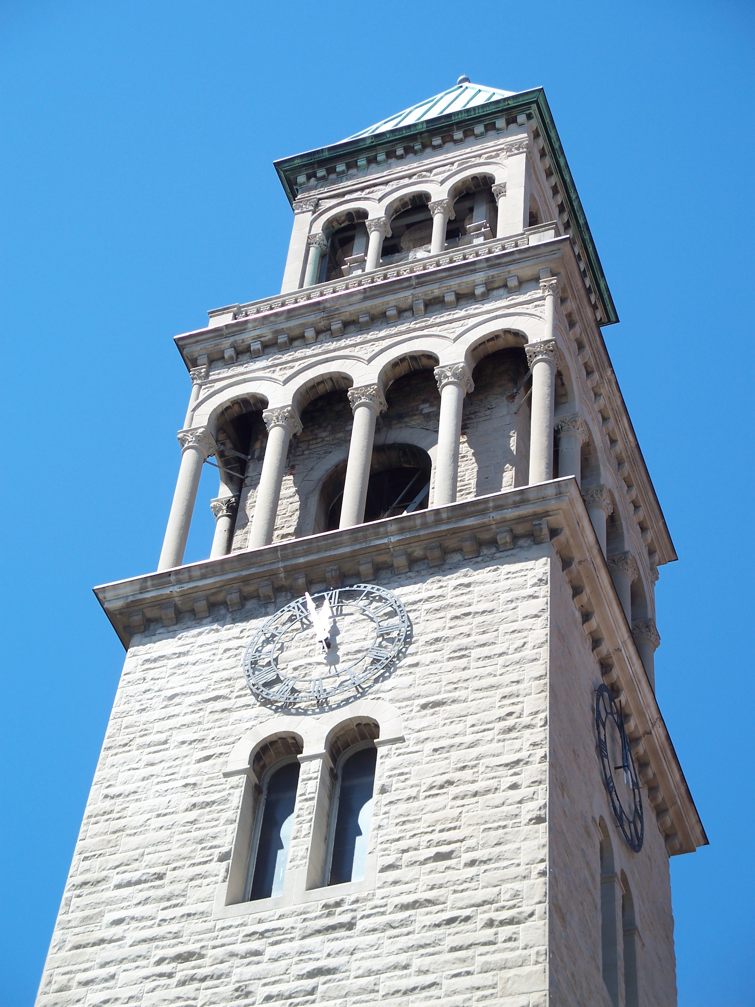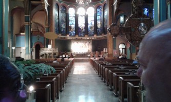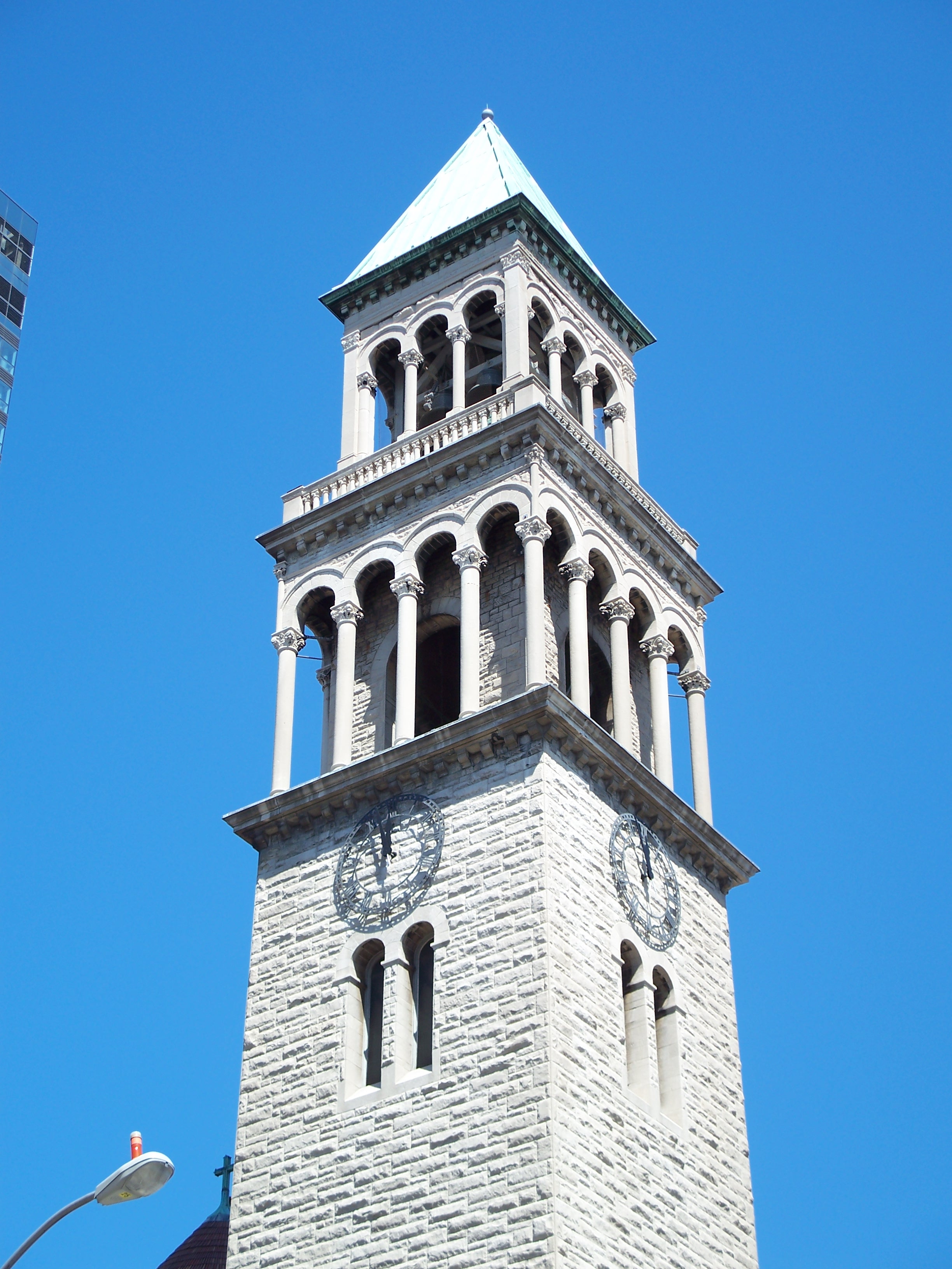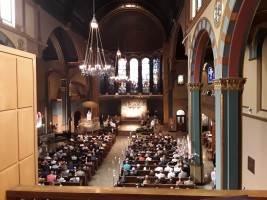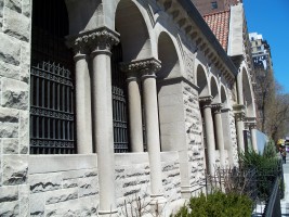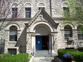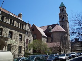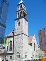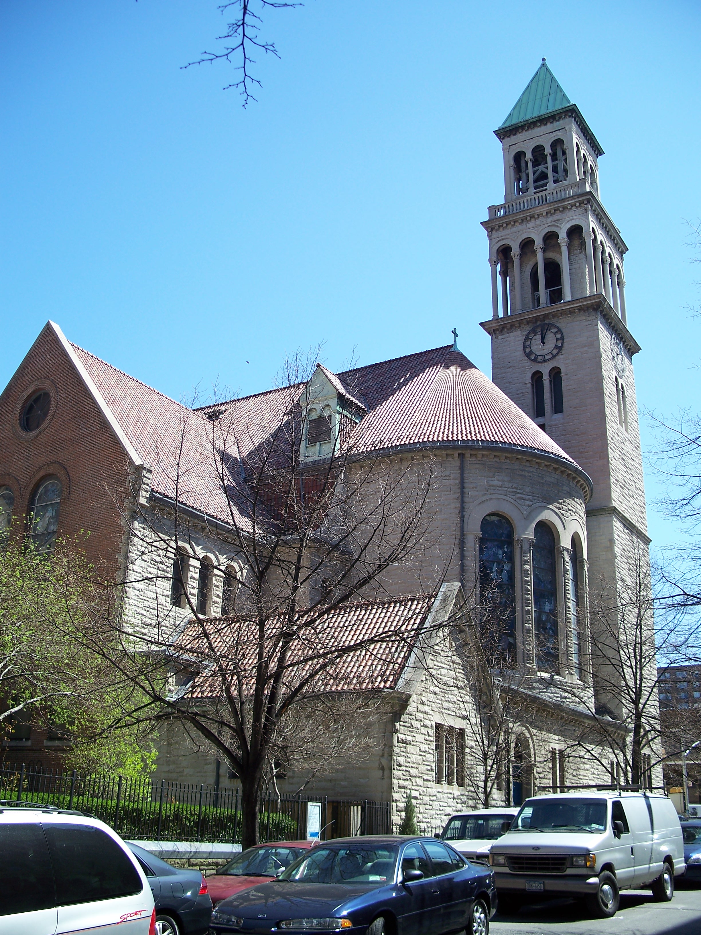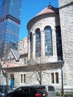 By the 1880s, the second building had become inadequate and Robert W. Gibson (1854-1927) was hired to design this Romanesque and Byzantine structure that includes a 1,500-seat sanctuary. It was built with rough-hewn Indiana limestone and dedicated in December, 1891. In 1895, Louis Comfort Tiffany (1848-1933) was commissioned to design and install the seven great lancet windows representing St. Michael's Victory in Heaven. A parish house was added in 1902 and St. Jude's Chapel was added in 1921.