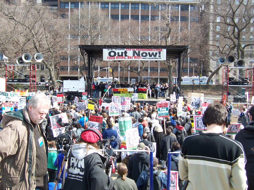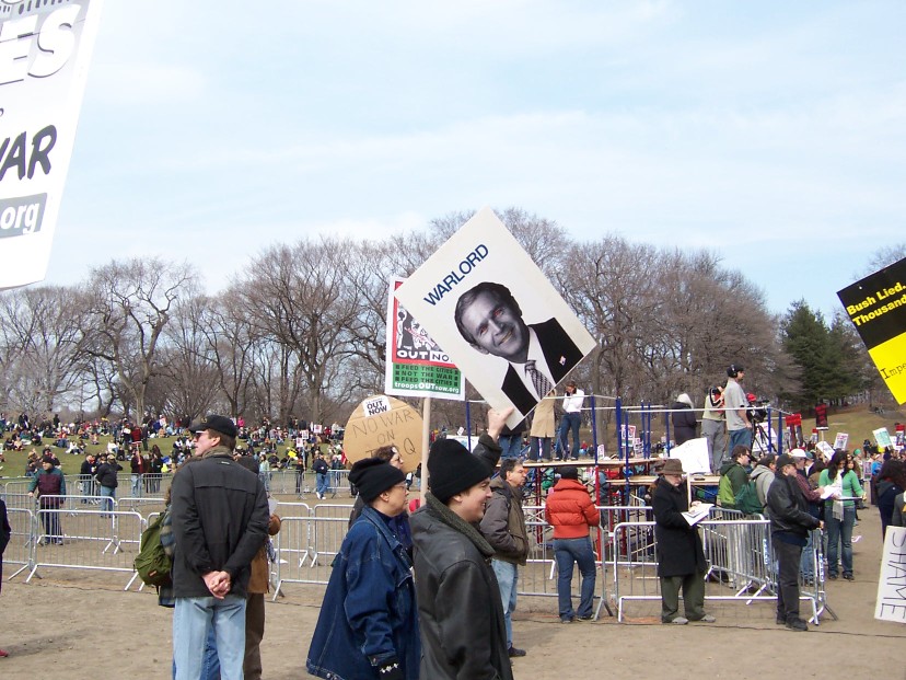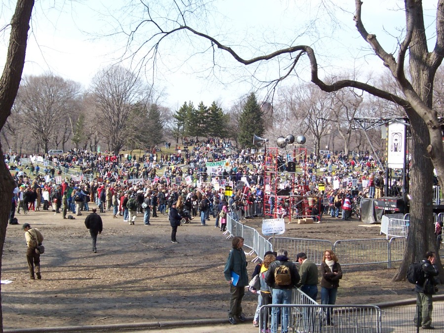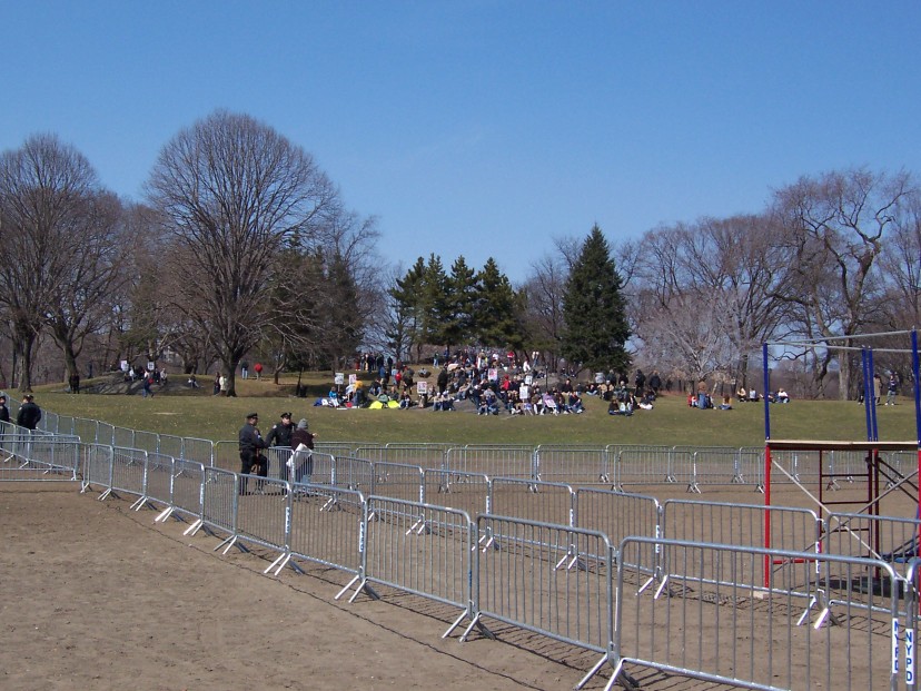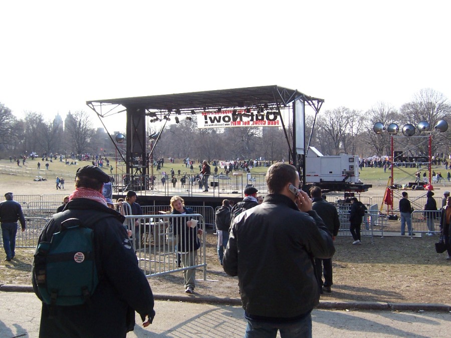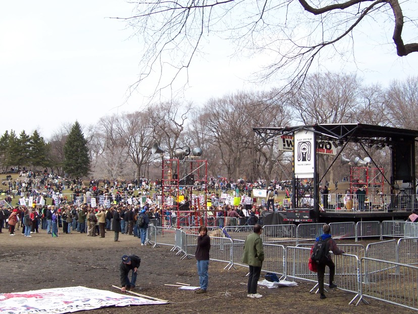 On March 19, 2005, TroopsOutNow.org sponsored a rally in the East Meadow of NYC's Central Park to protest the 2nd anniversary of the American invasion of Iraq. The rally was part of a weekend of protests worldwide that included additional gatherings in all five boroughs.