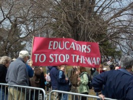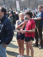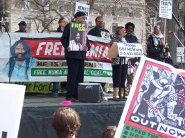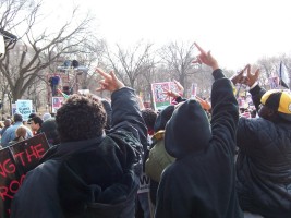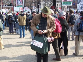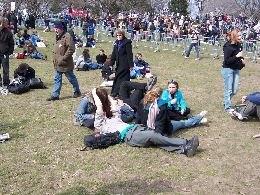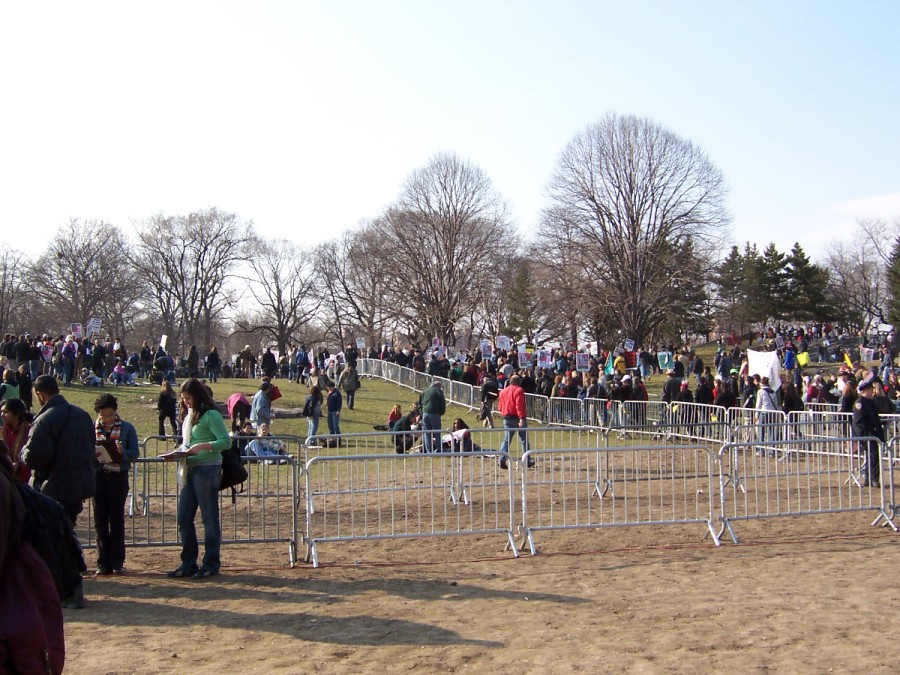 Contrary to the impression often created by sensationalist news reporting, my experience was that these things tended to be rather chaotic, boring affairs that are more like really crowded afternoons in the park than earth-changing events. As a rapid-fire succession of around 50 speakers, rappers and singers screamed on the main stage for three hours, the surrounding areas had a festive atmosphere that seemed almost oblivious to central event. The speakers addressed not only the war, but a panapoly of liberal causes that were often only tangentally related to Iraq: the Cuban five, Mumia Abu-Jamal, Hugo Chavez, Korean militarization, Puerto Rican statehood, the Hatian coup, AIDS funding, Palestinian liberation.