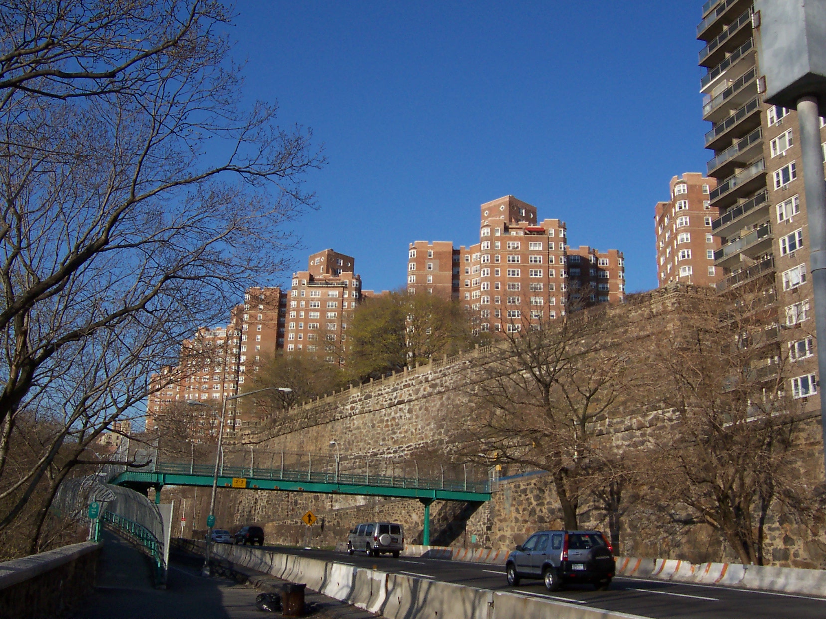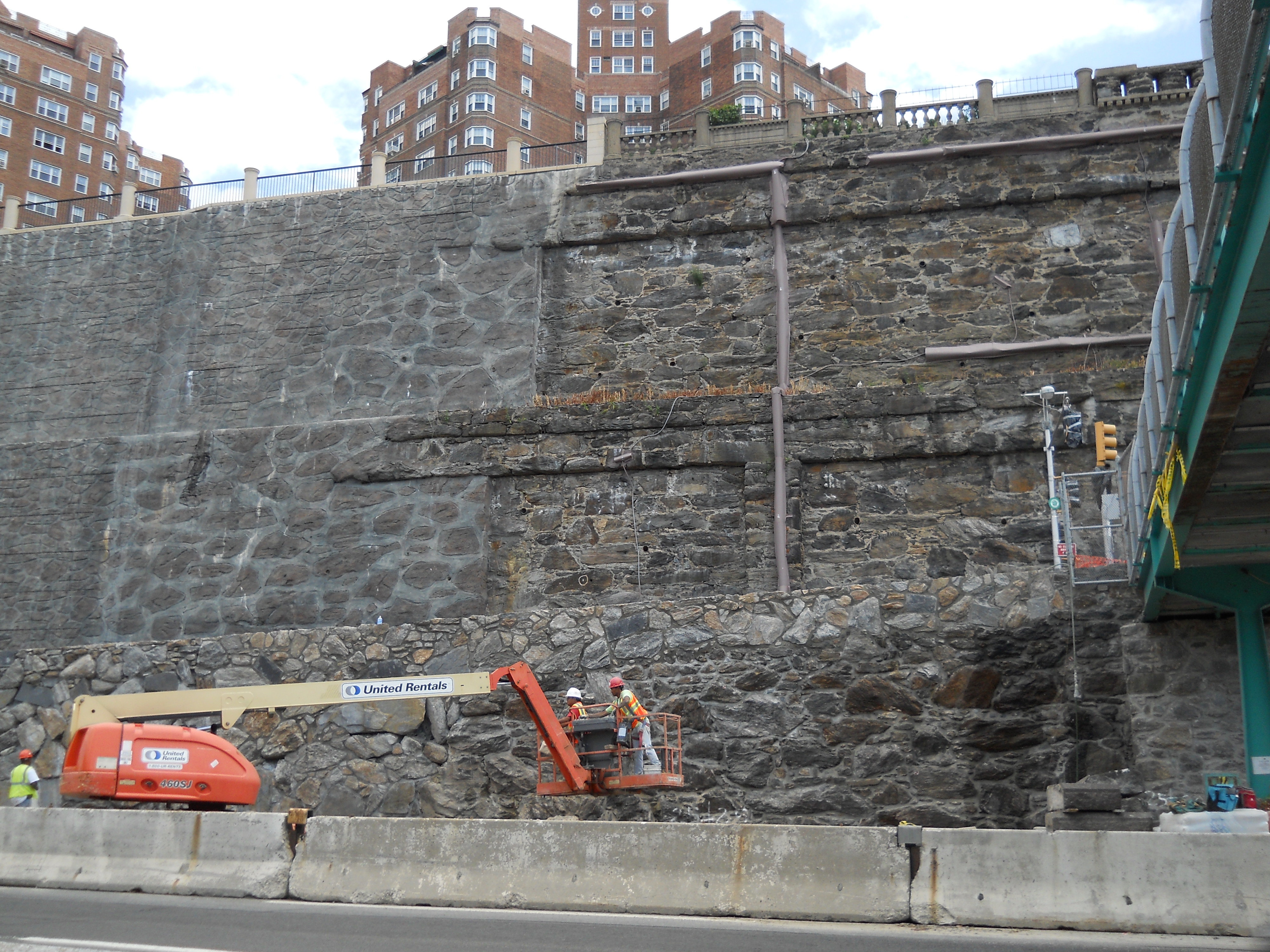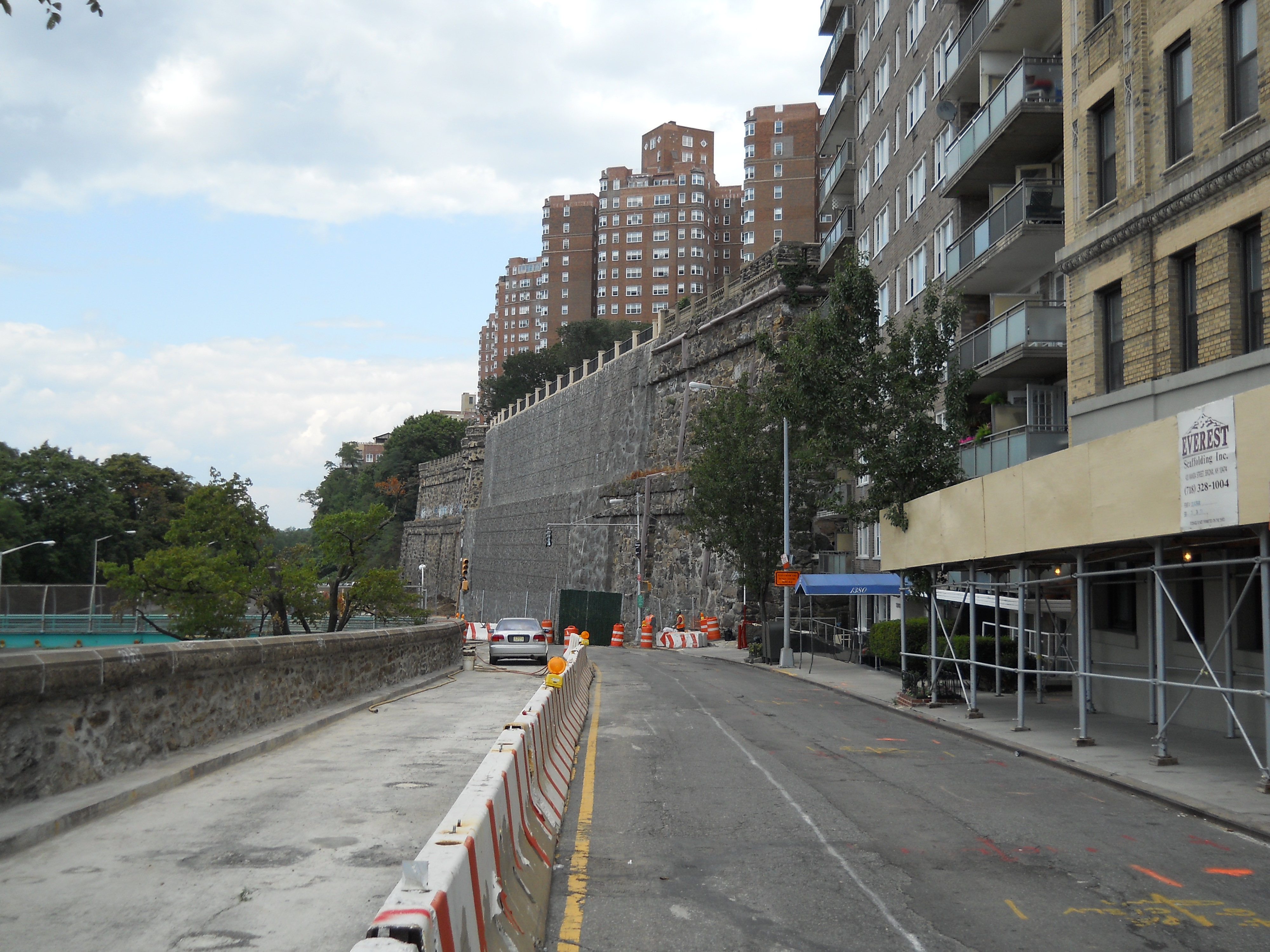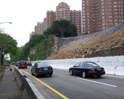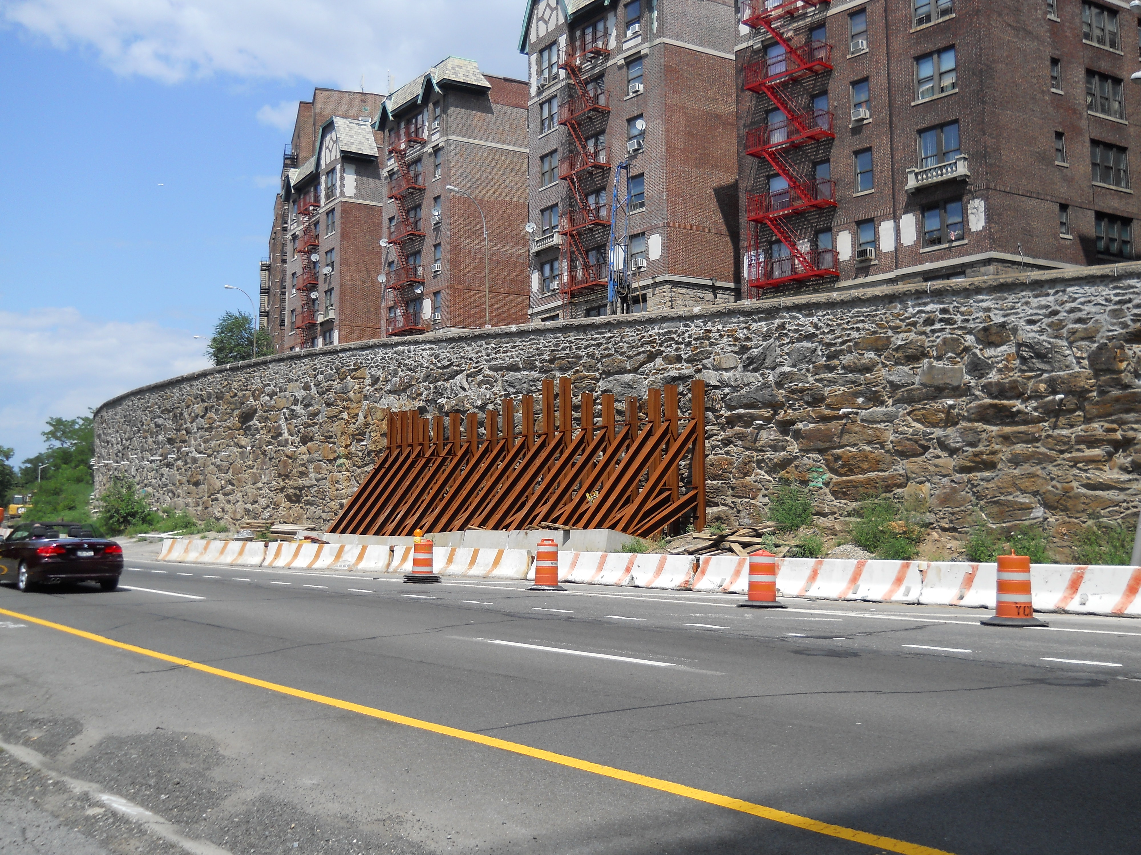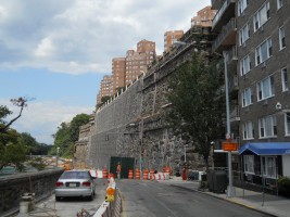 On the afternoon of May 12, 2005, a 90-foot-tall retaining wall just north of the GWB collapsed sending a torrent of rocks, dirt and trees across the Henry Hudson Parkway below. The wall was built around 1908 and supported a small private park between high-rise buildings on Cabrini Boulevard. Serendipitously, I had passed that wall a month earlier and, struck by it's age and fearsome height, took some photos of it. After the fall, I returned on Friday the 13th and the following Monday, after much of the spillage had been cleaned up and stabilized.