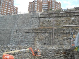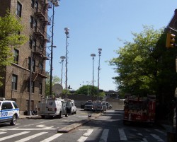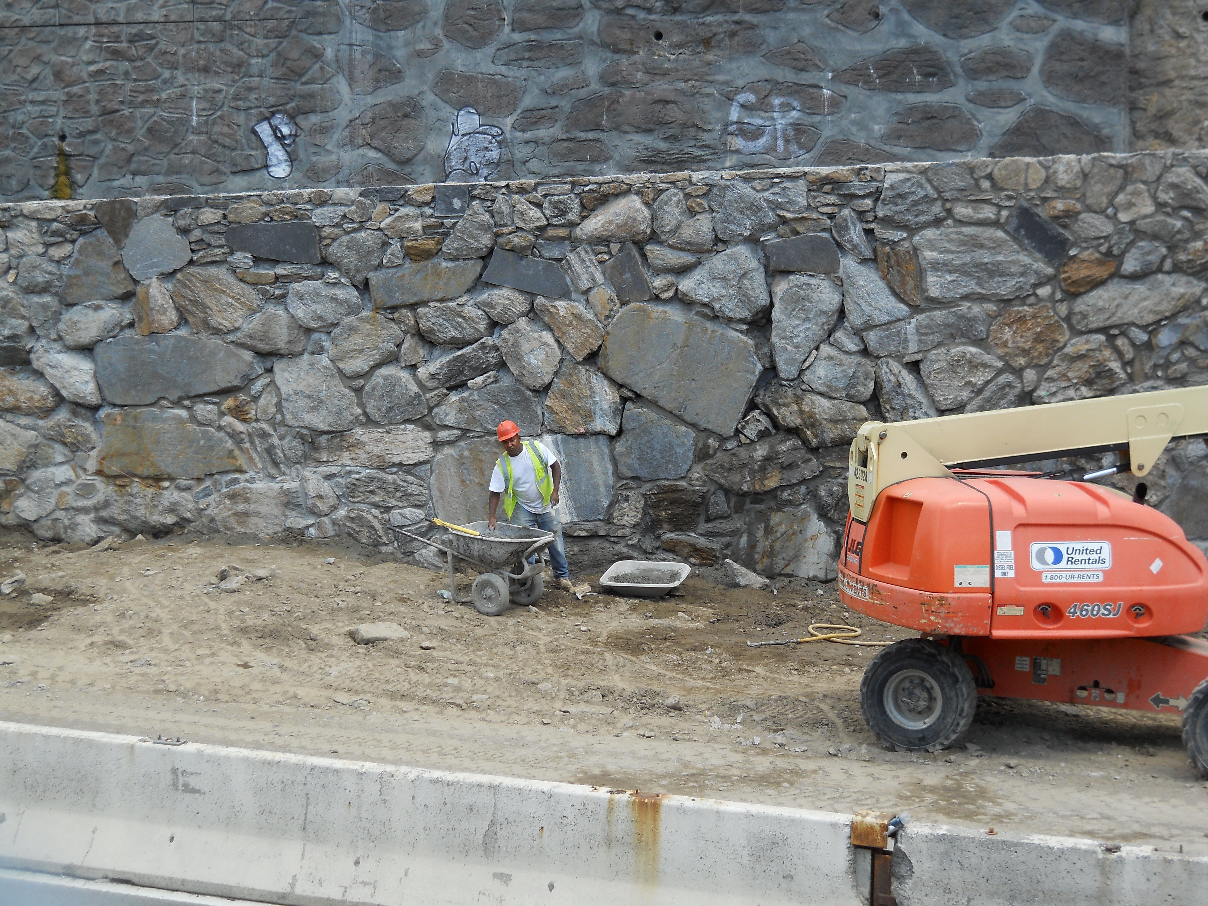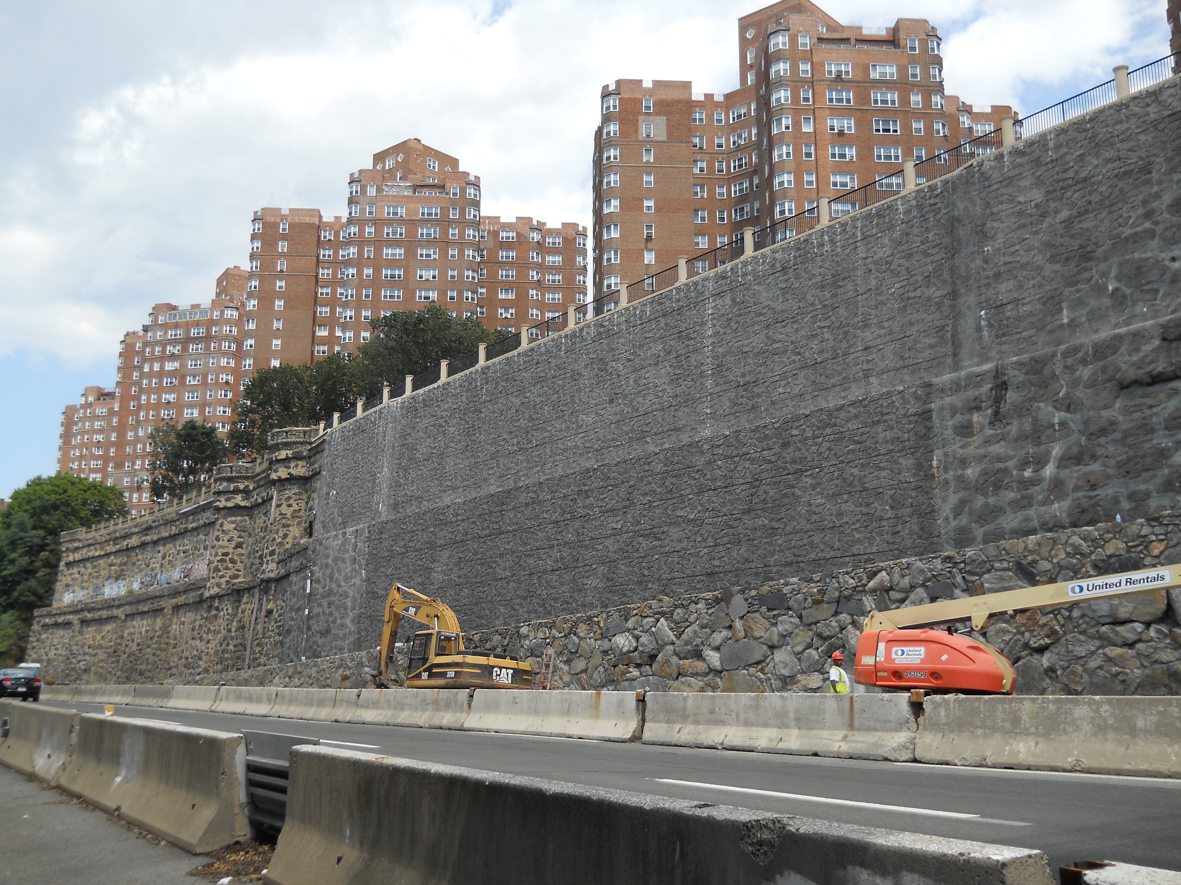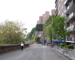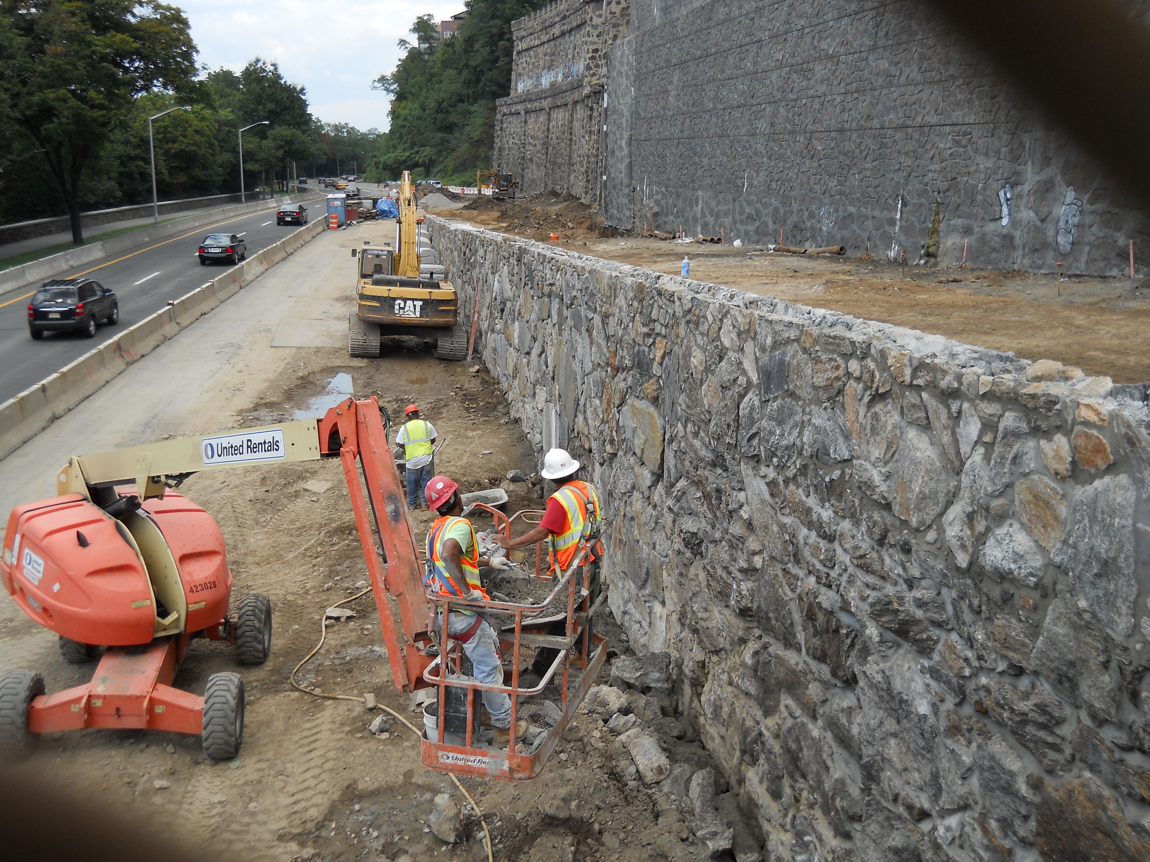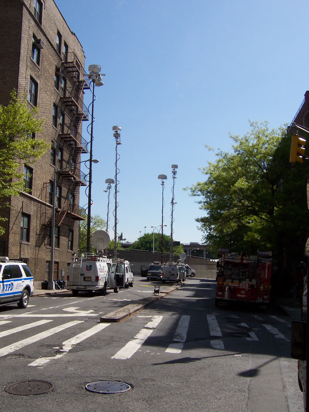 On the afternoon of May 12, 2005, a 90-foot-tall retaining wall just north of the GWB collapsed sending a torrent of rocks, dirt and trees across the Henry Hudson Parkway below. The wall was built around 1908 and supported a small private park between high-rise buildings on Cabrini Boulevard. Serendipitously, I had passed that wall a month earlier and, struck by it's age and fearsome height, took some photos of it. After the fall, I returned on Friday the 13th and the following Monday, after much of the spillage had been cleaned up and stabilized.
