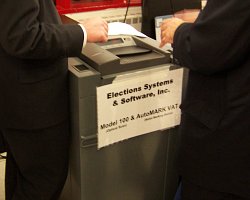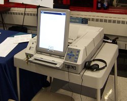 ES&S offered a system that is almost identical to the Diebold system. In fact, the AutoMark ballot marking terminal is the exact same AutoMark machine and, although the ballot scanner is different hardware, from the voter and poll worker perspective, the experience is basically identical. The distinction between Diebold and ES&S seems to lie in the software. ES&S machines use a Linux-based operating system (the only non-Windoze machine in the bunch) and, supposedly, the code has been examined and favorably reported on by NIST, the Election Science Institute, and Compuware. I can't vouch for the validity or integrity of these reports.