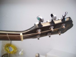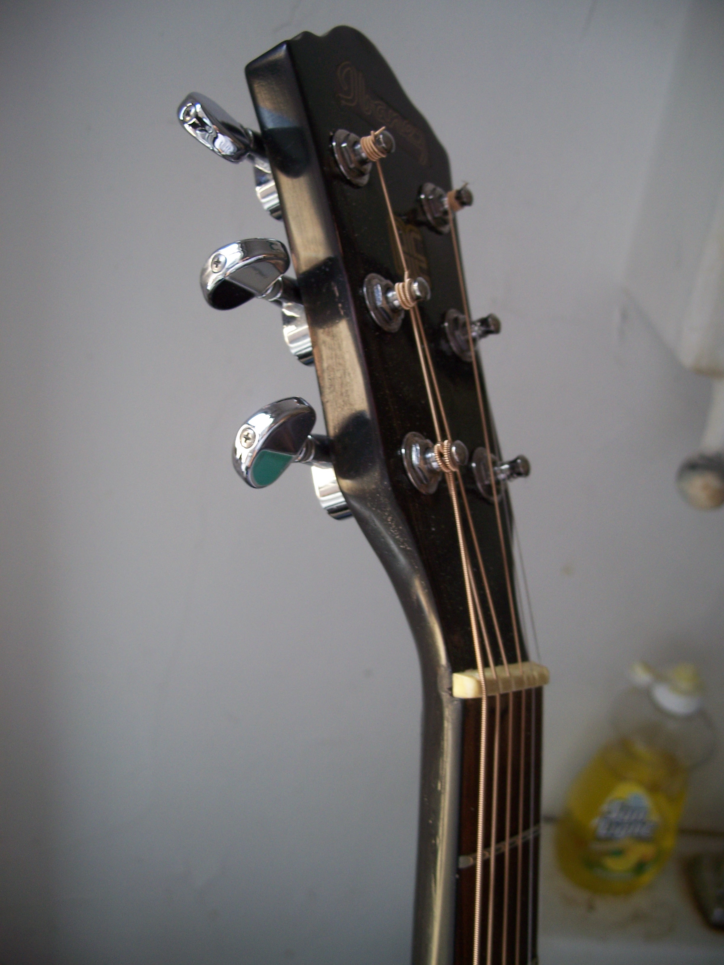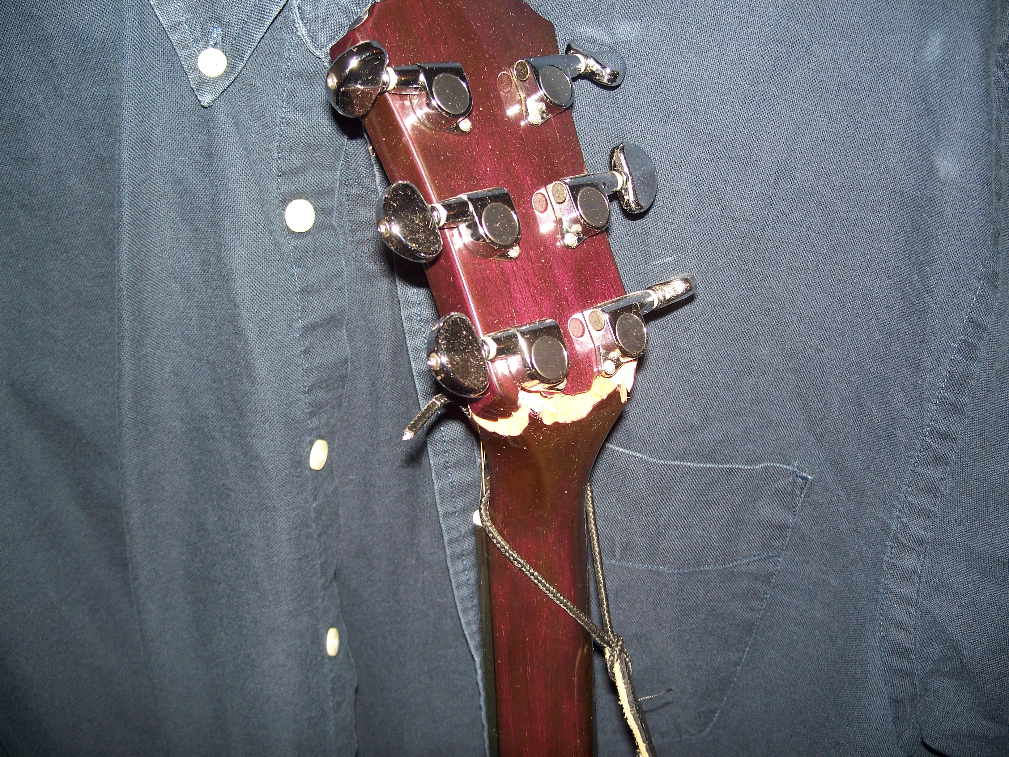 I had settled into a comfortable but not altogether satisfactory marriage with this instrument until September of 2007 when I took it out of the gig bag and noticed that the strings were sagging. I then noticed that the headstock had cracked at the bottom tuning lugs...