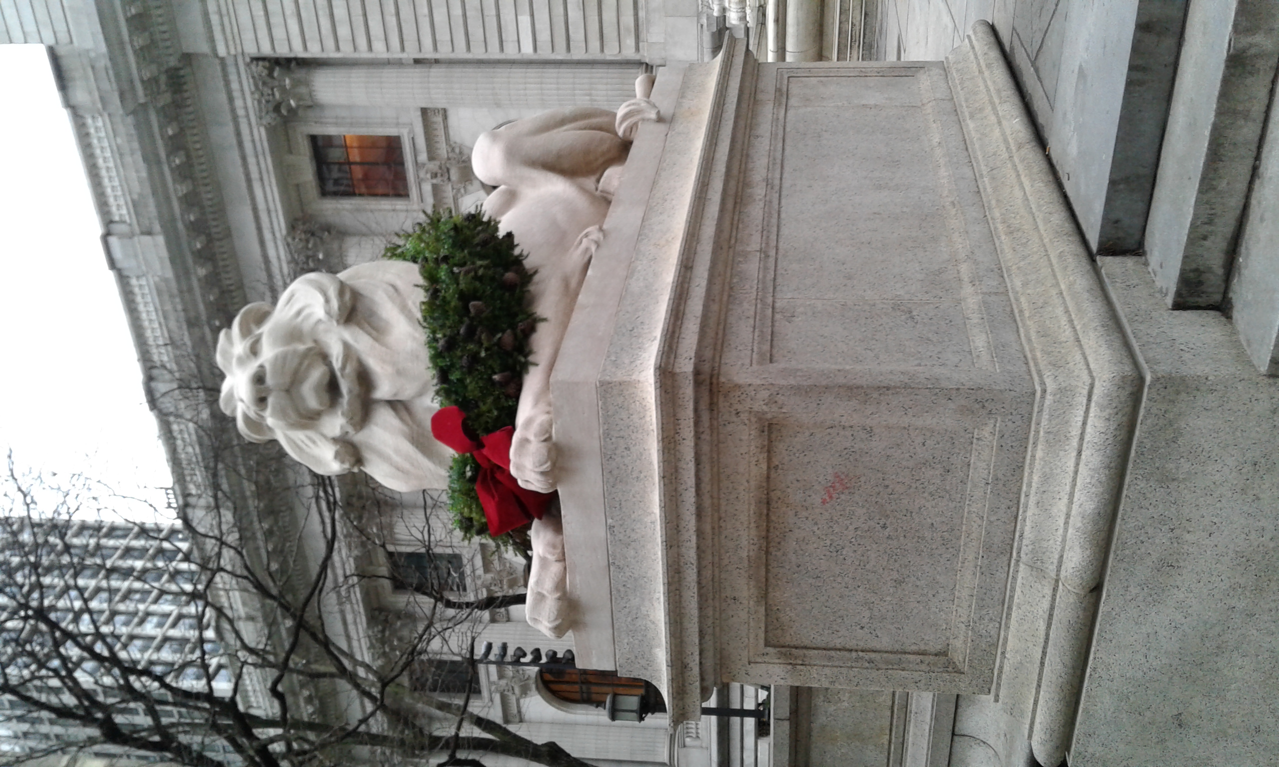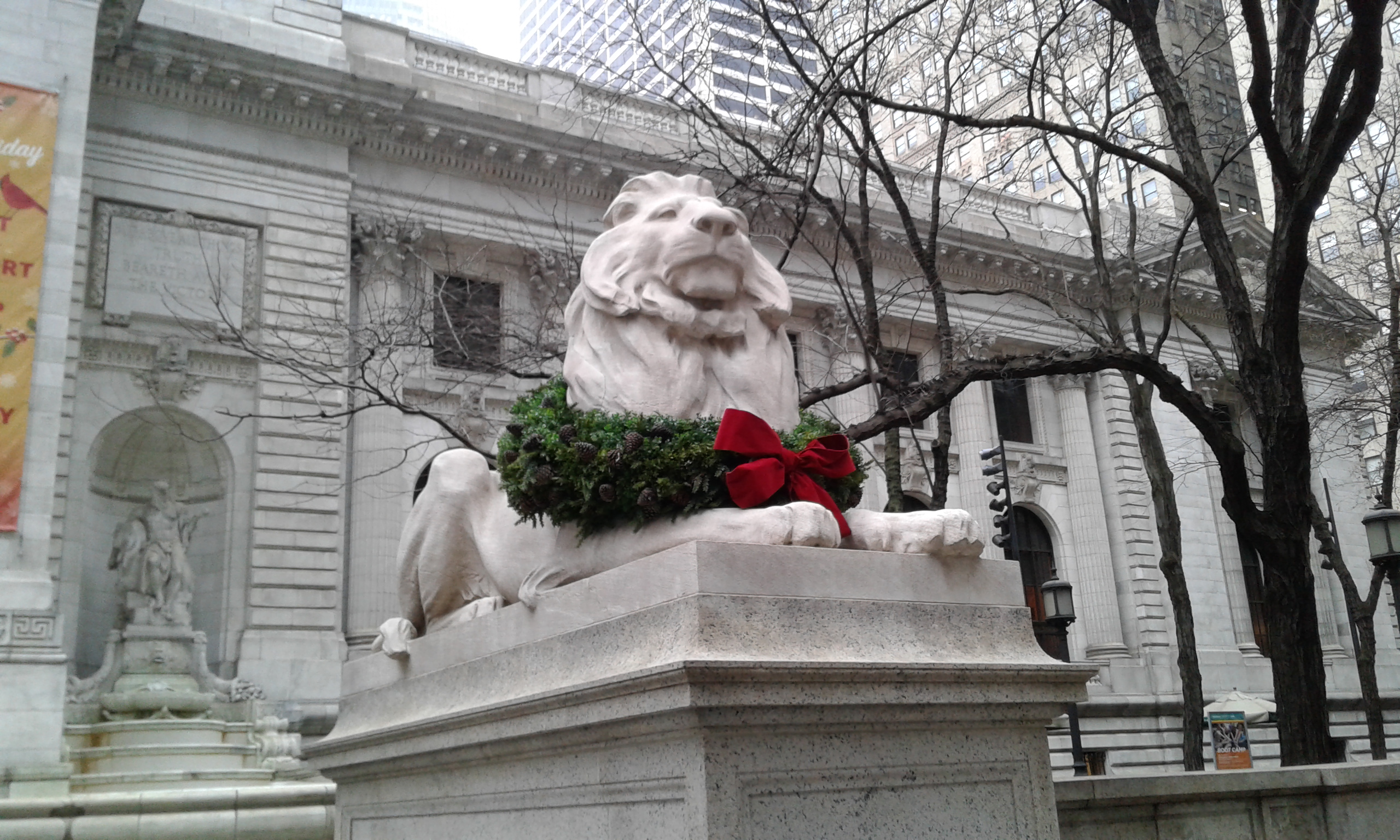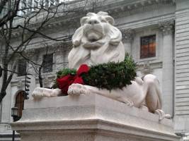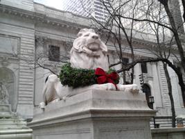 NYPL lion with wreath