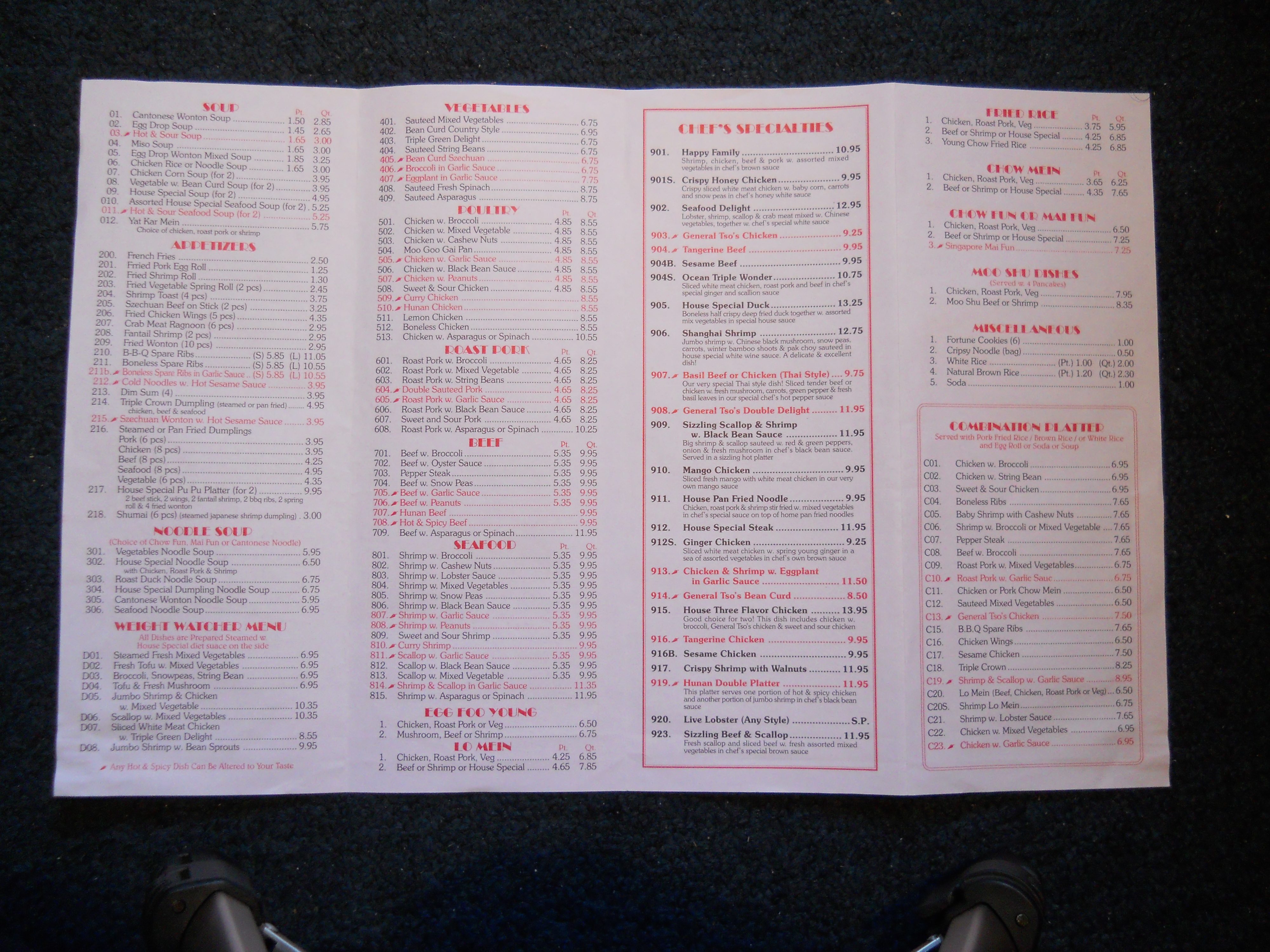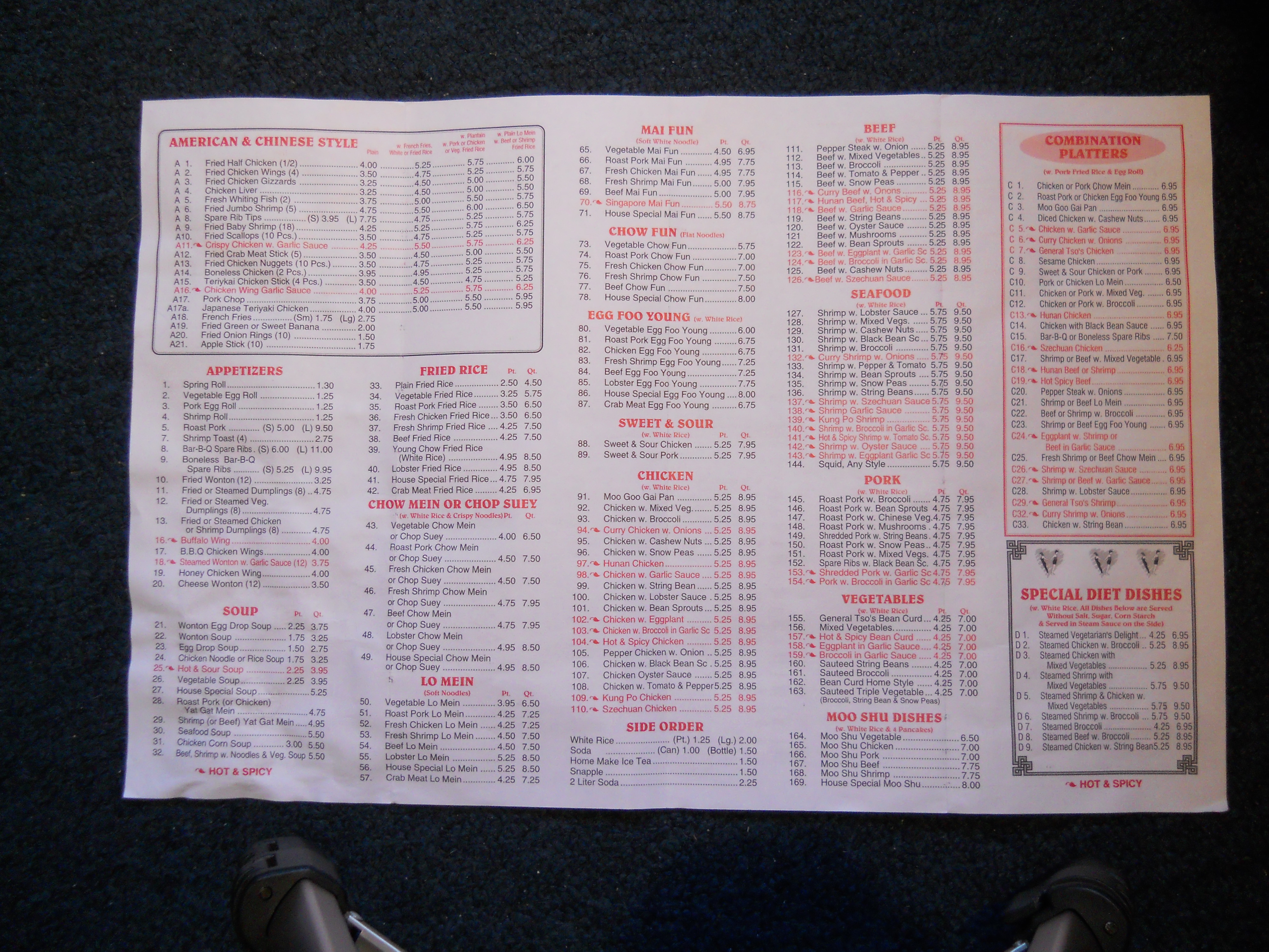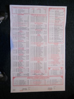 Number One menu