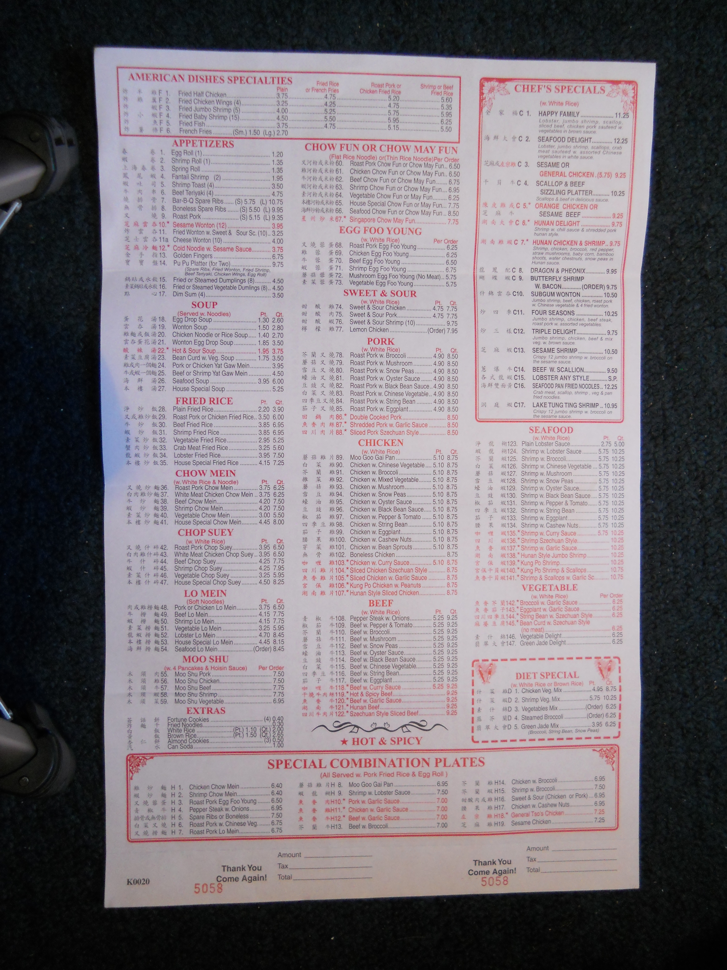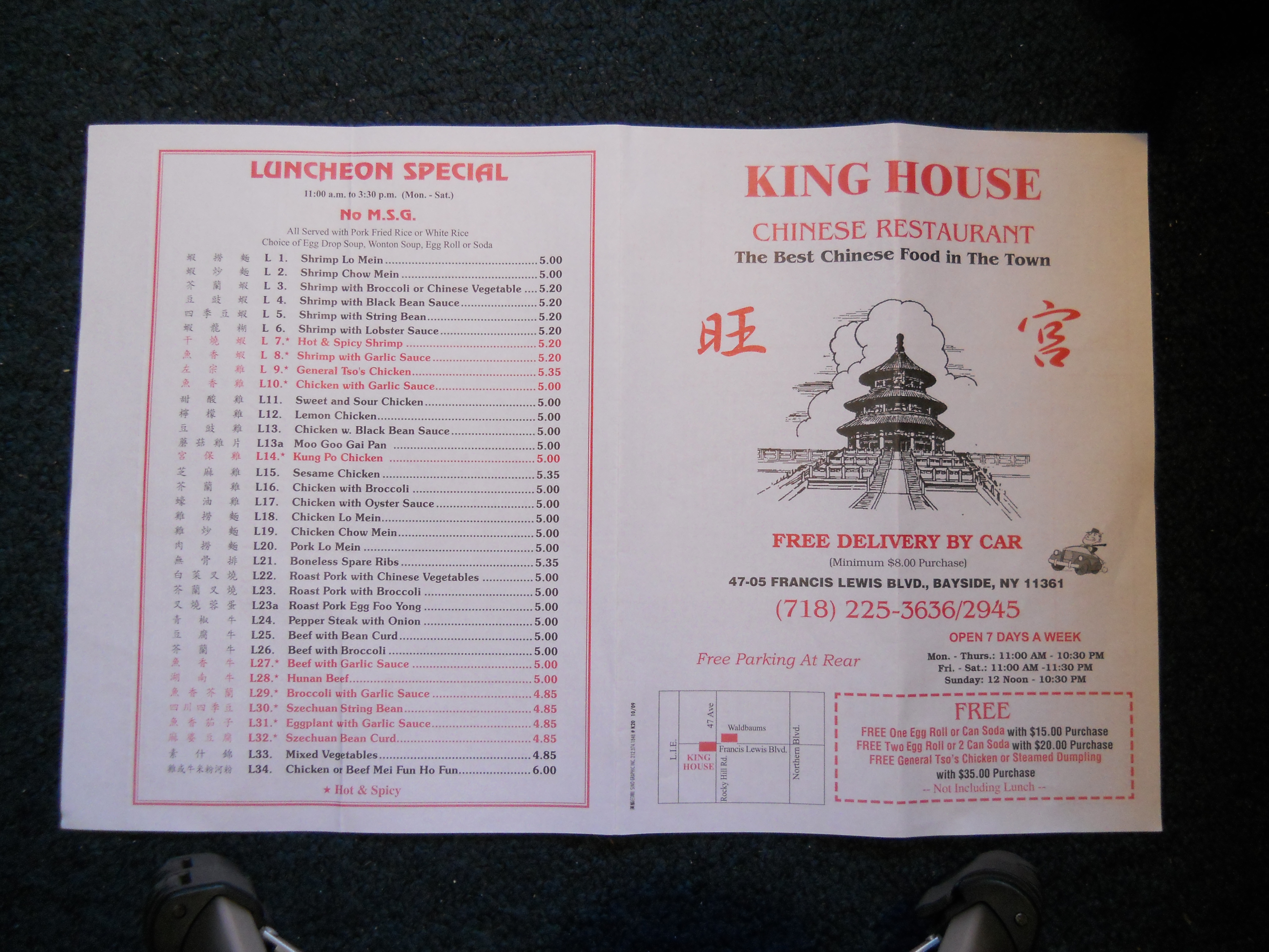 King House Chinese Restaurant menu
