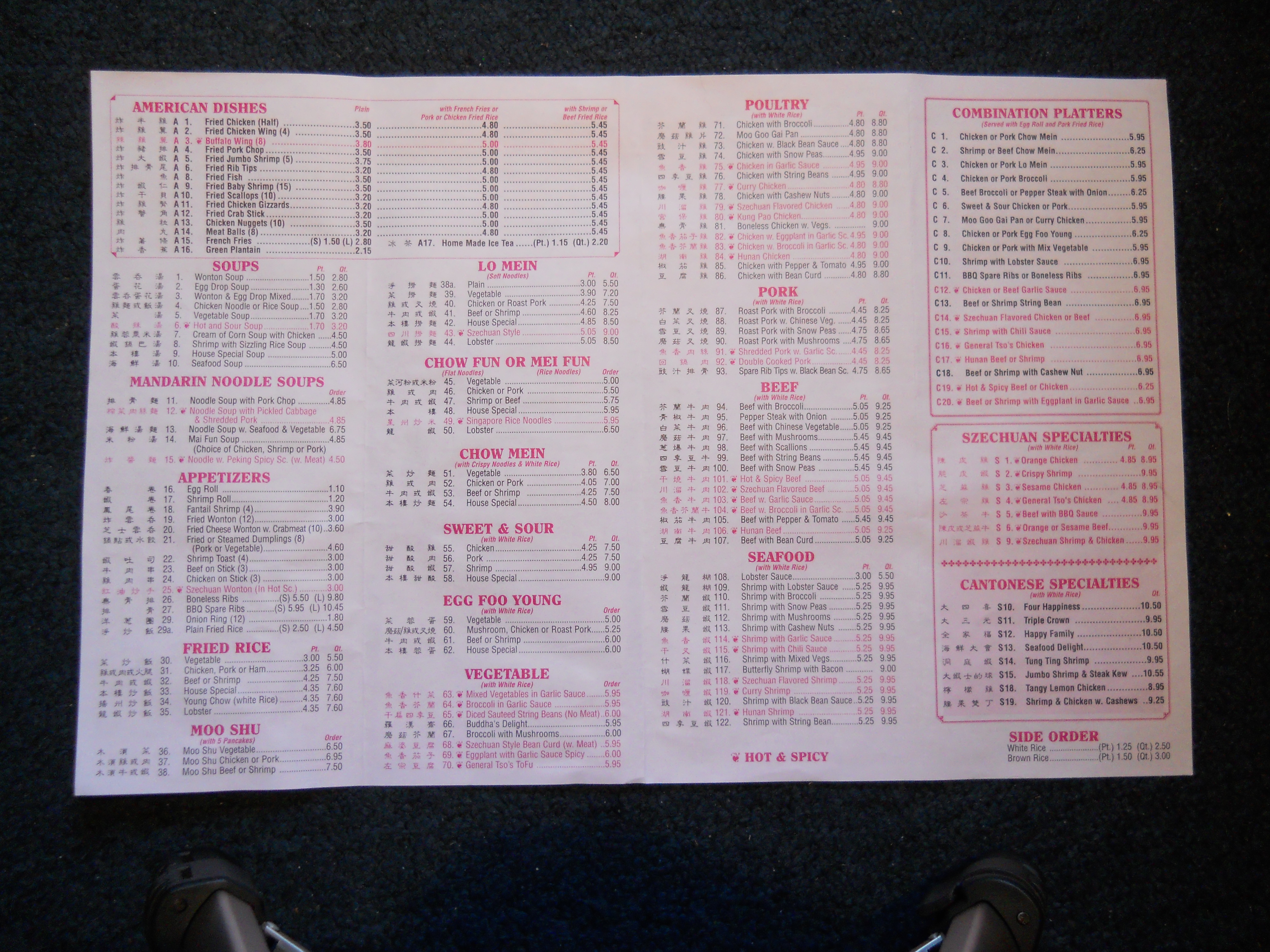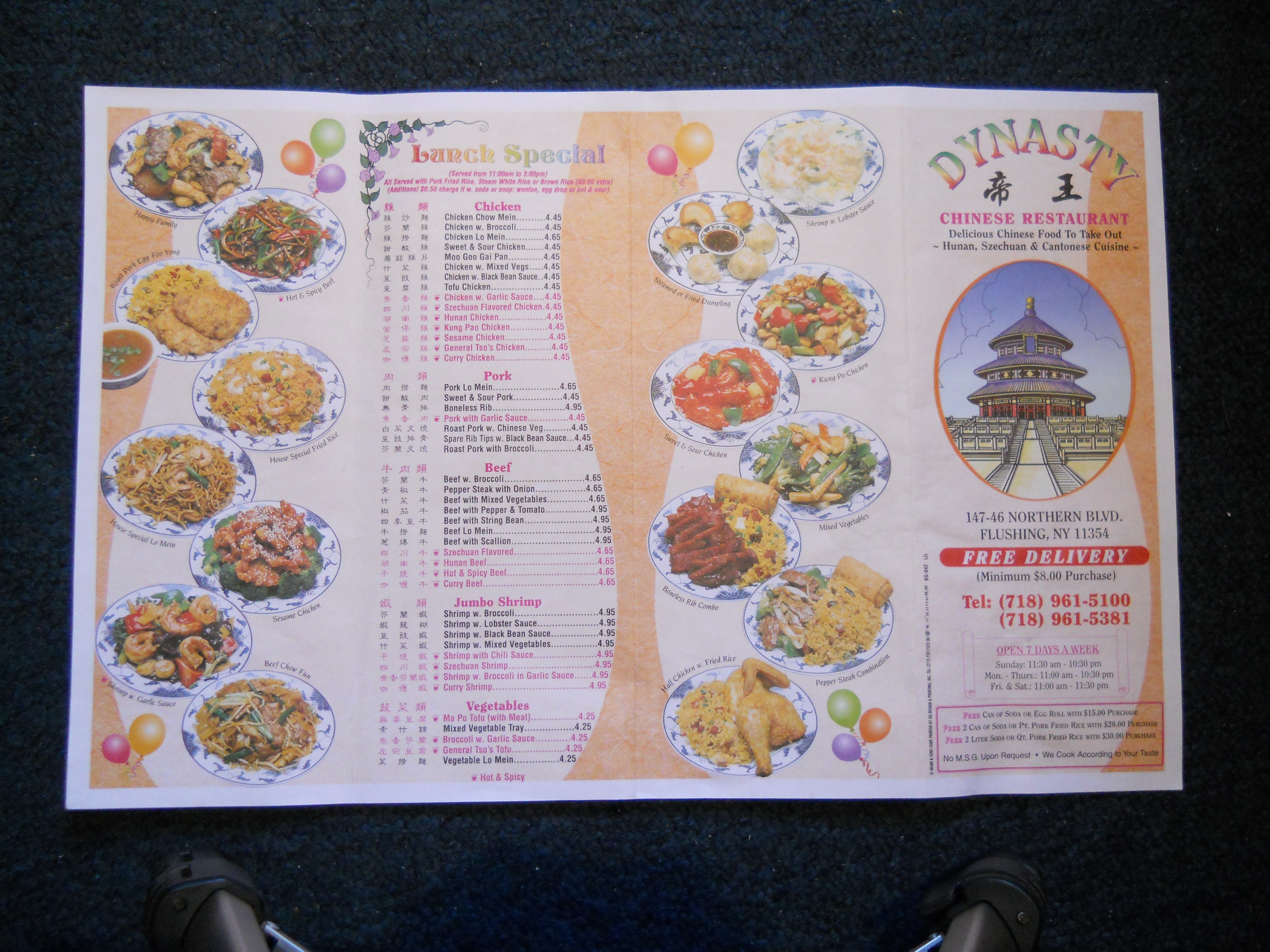 Dynasty Chinese Restaurant menu
