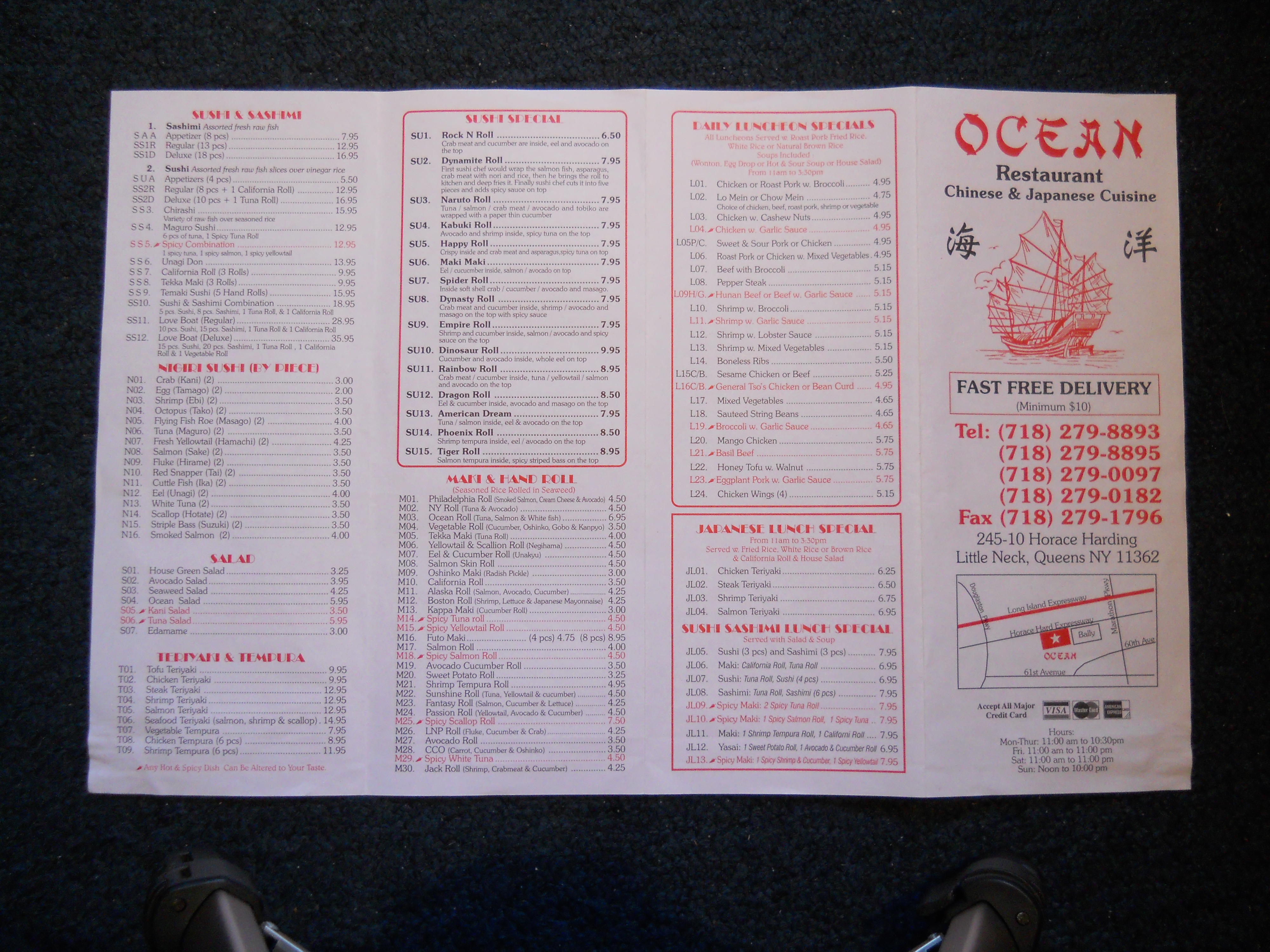 Ocean Restaurant menu