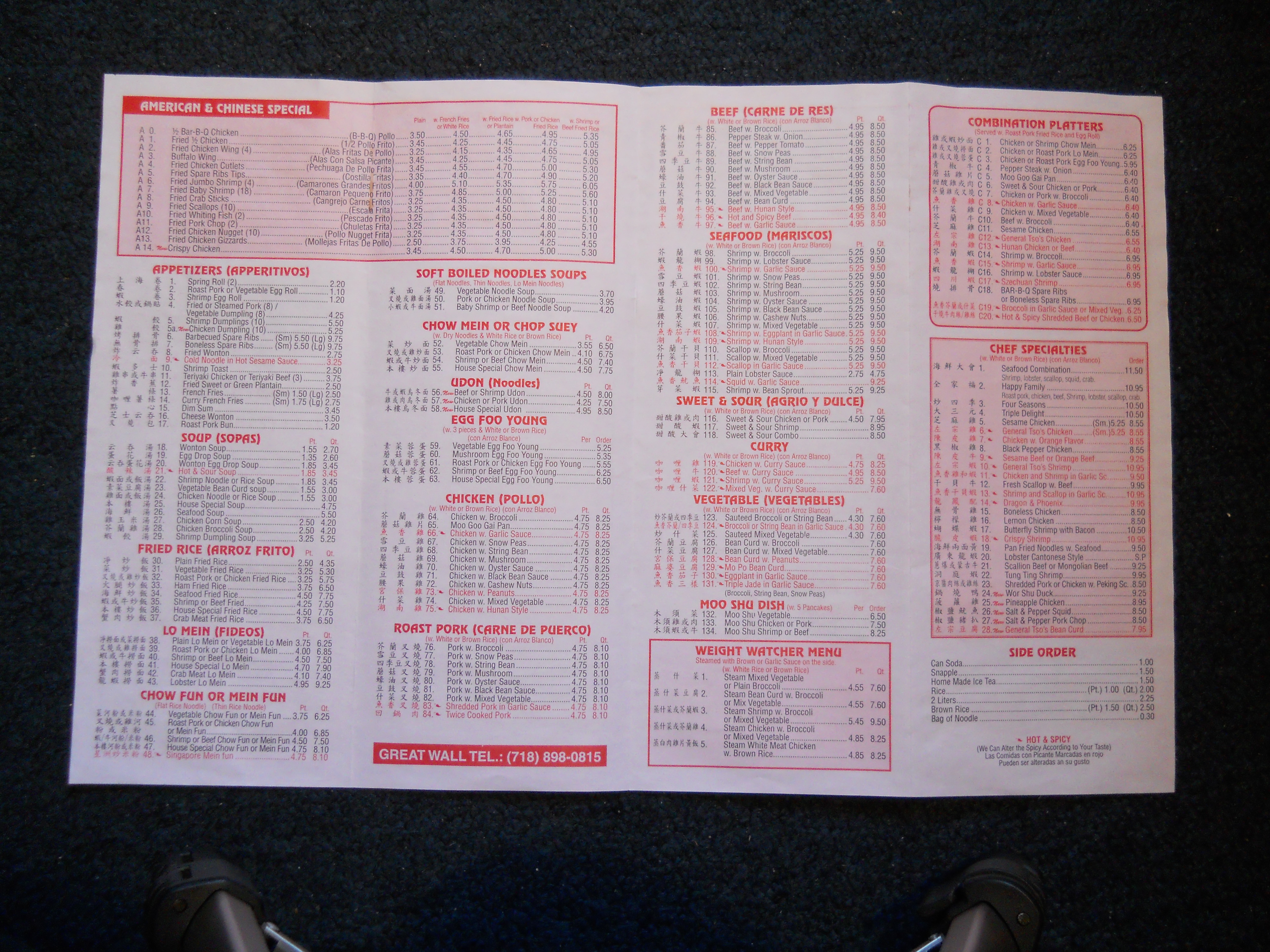 New Great Wall menu