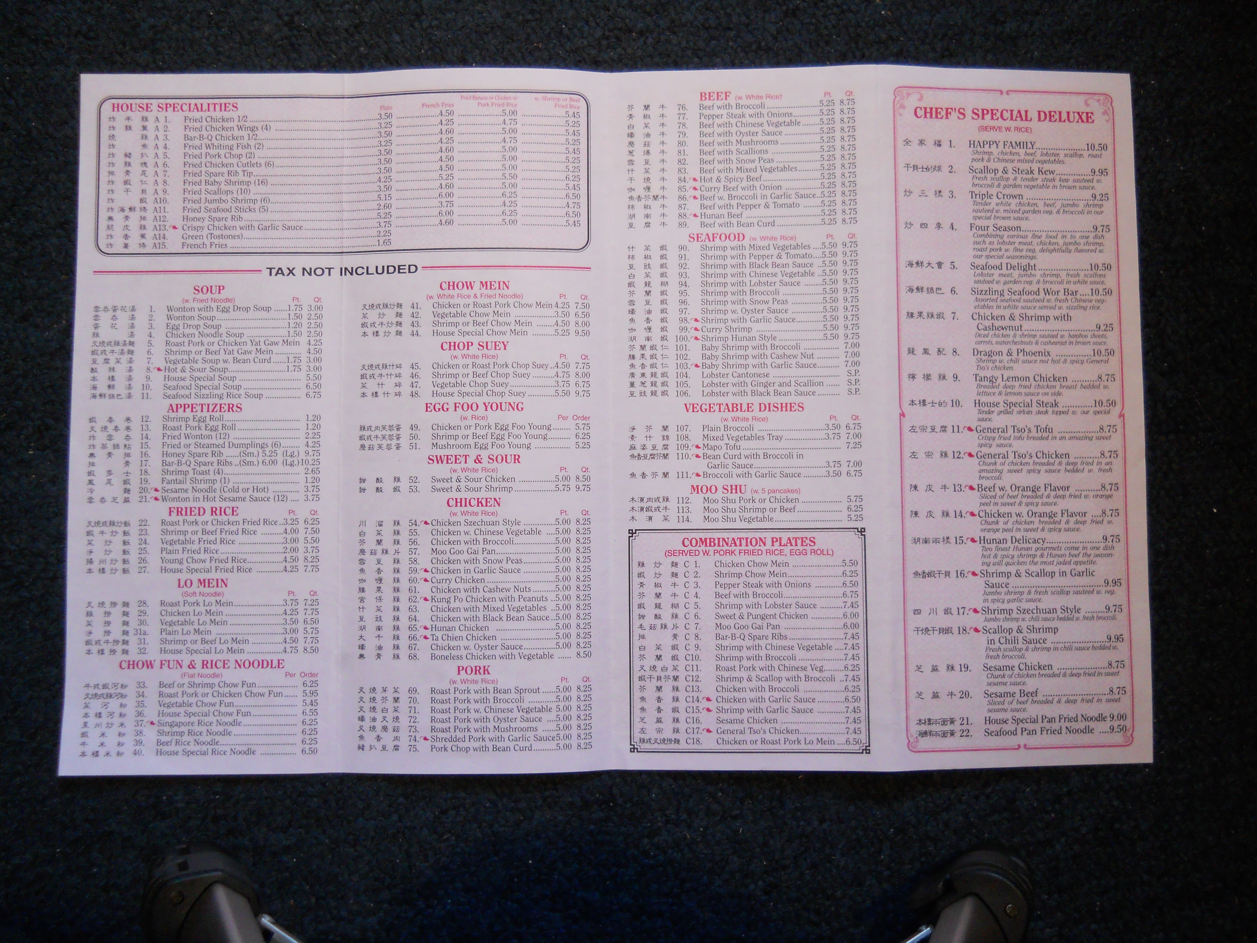 Lin's Number One Chinese Restaurant menu