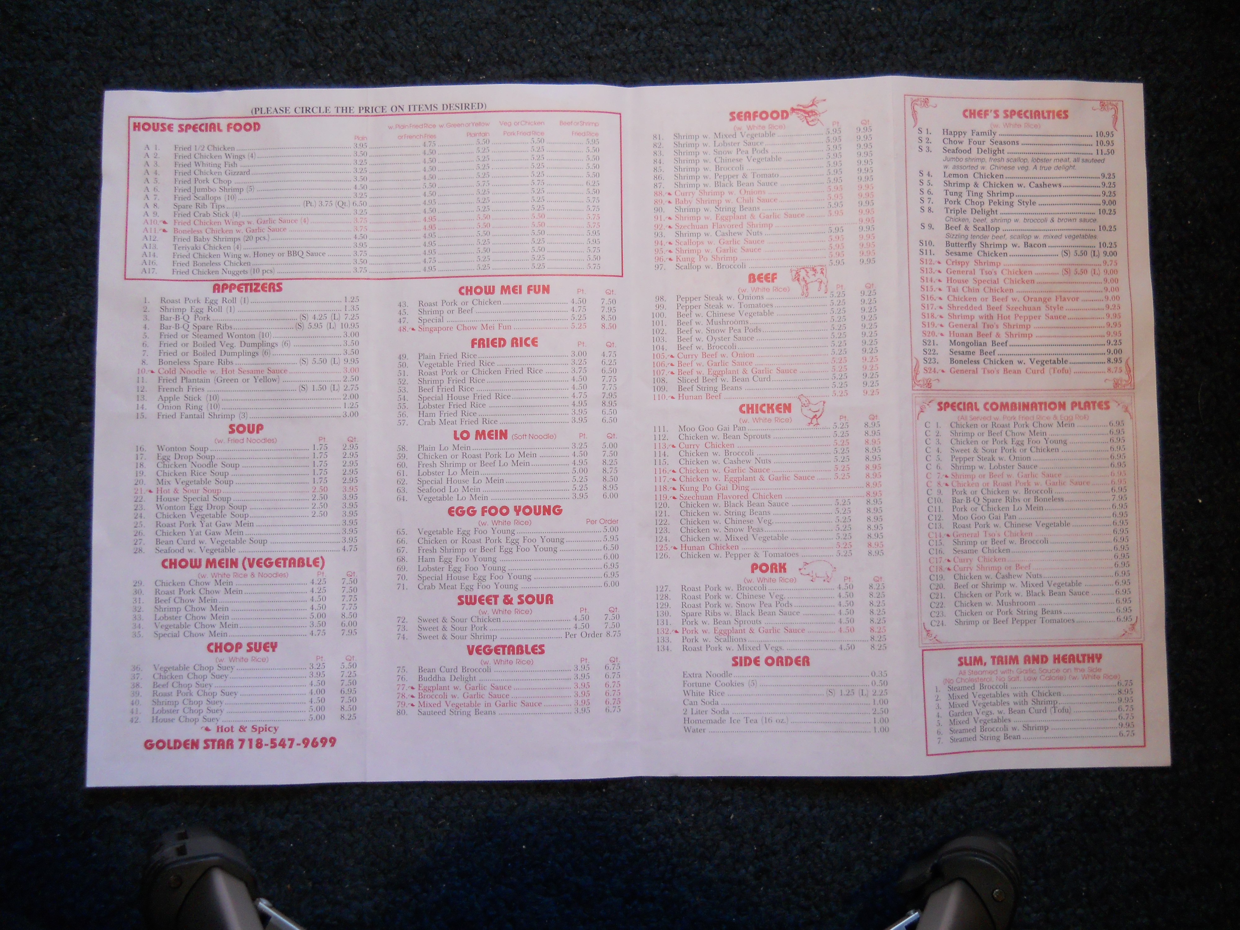 Golden Star Golden menu