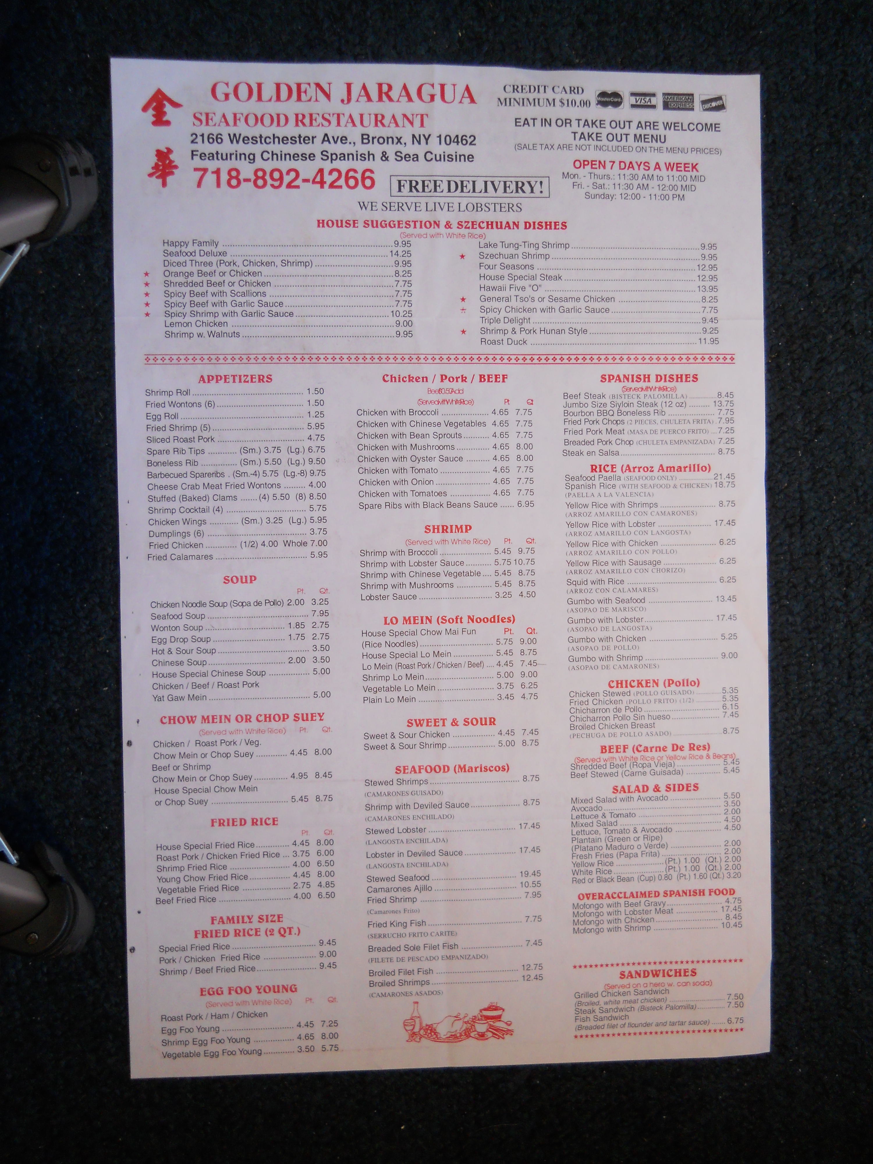 New Golden / Golden Jaragua menu