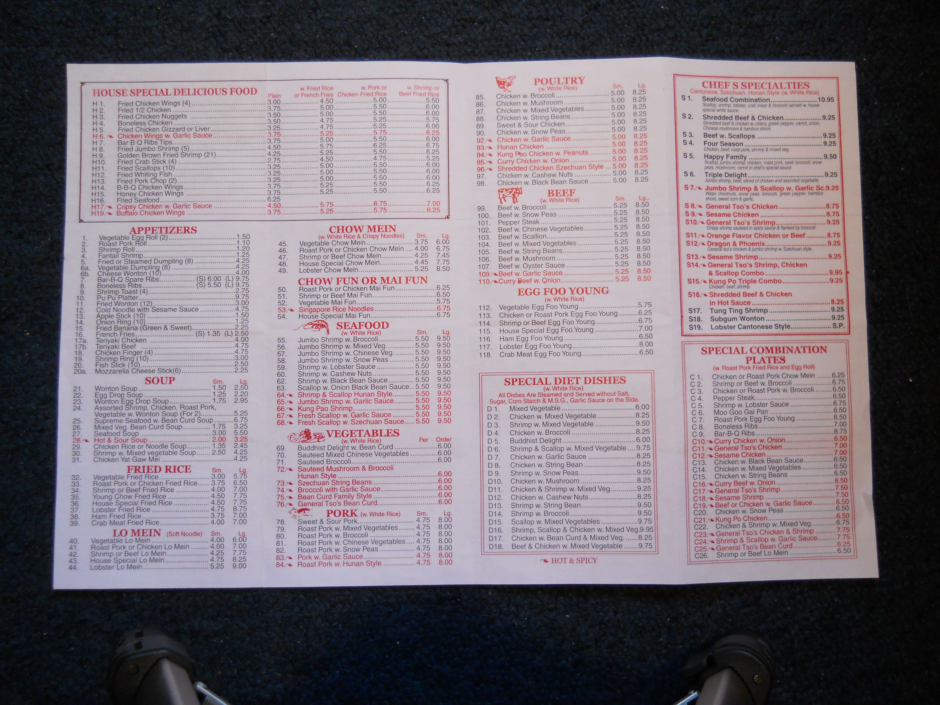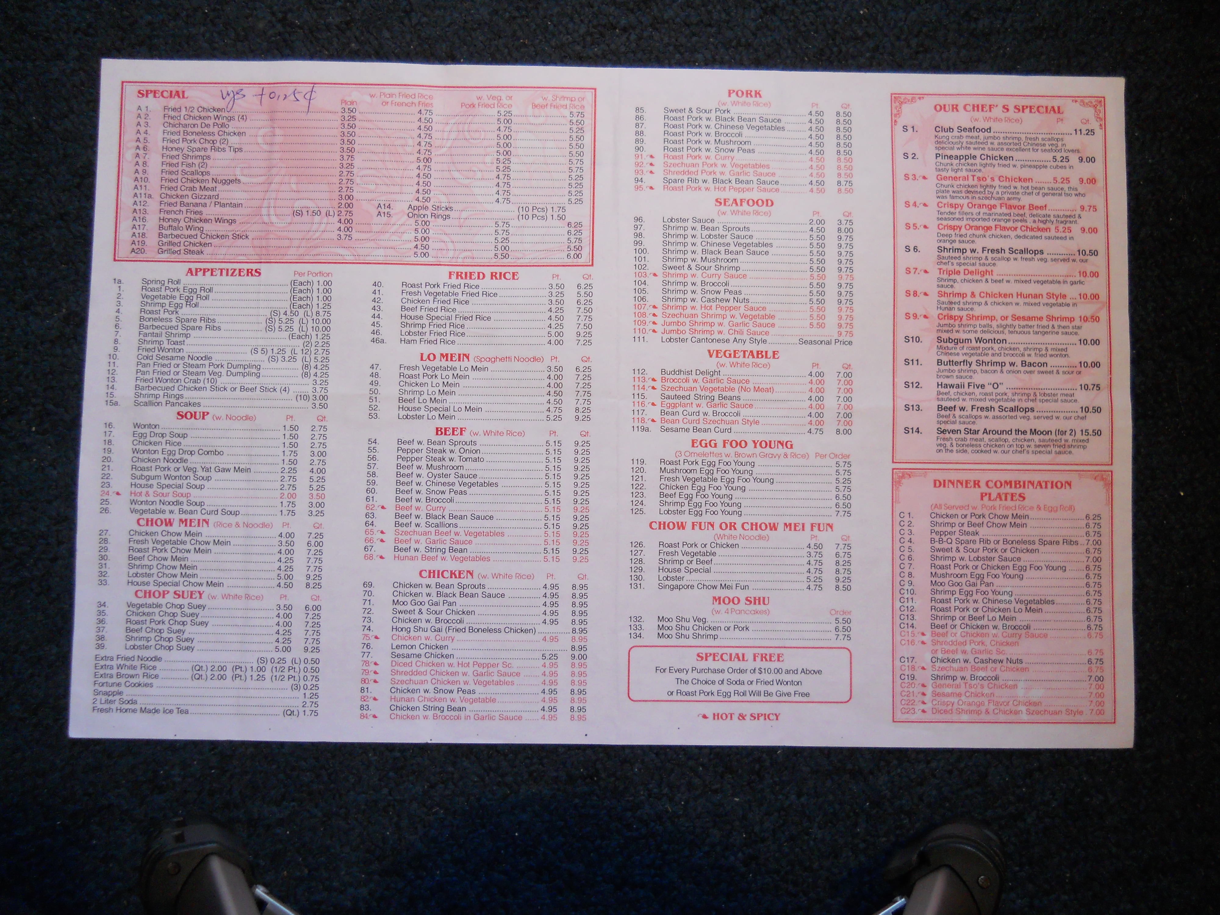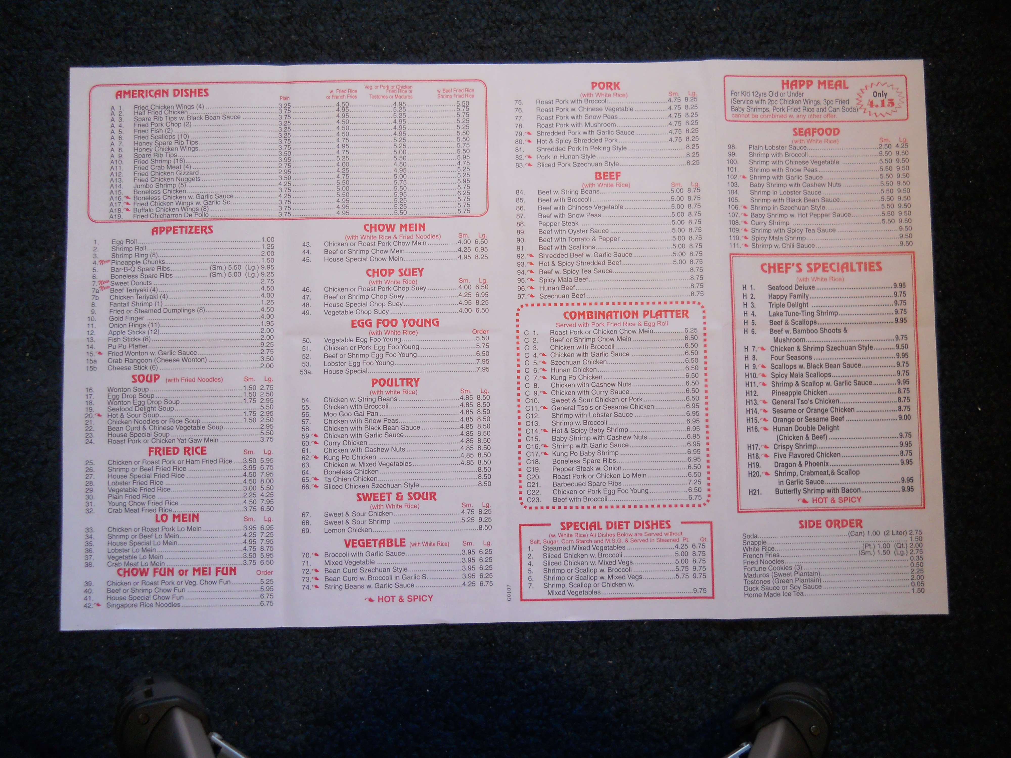 Number One Chinese Restaurant menu