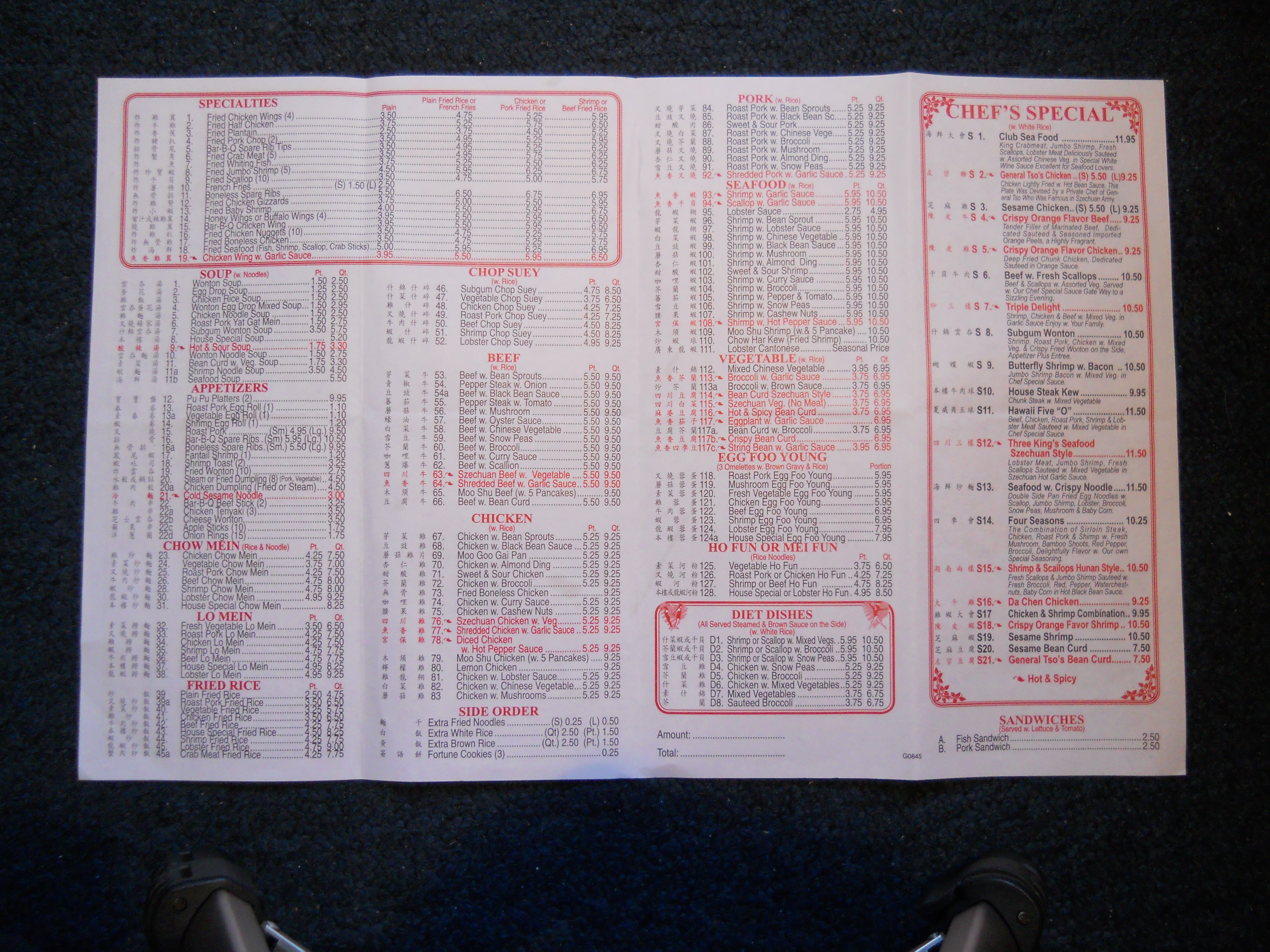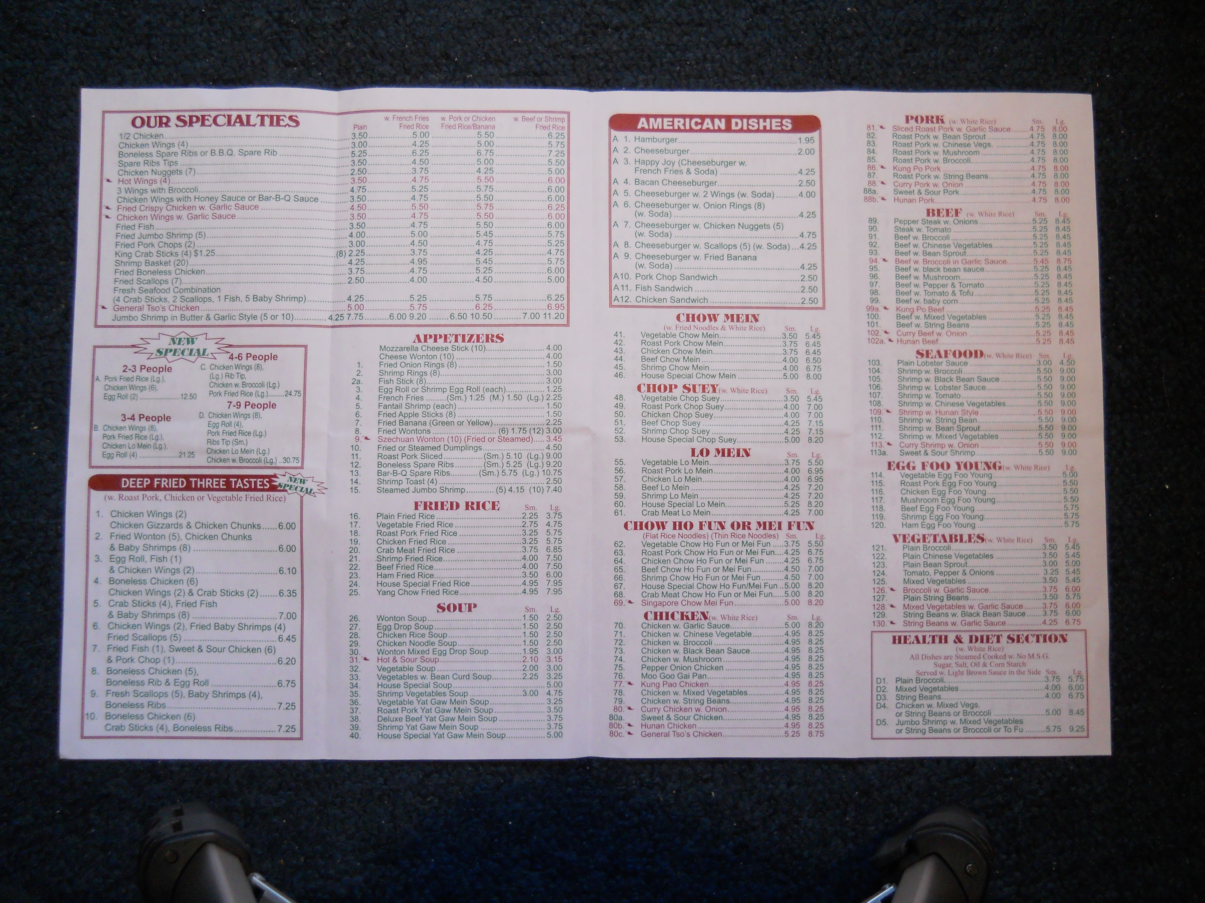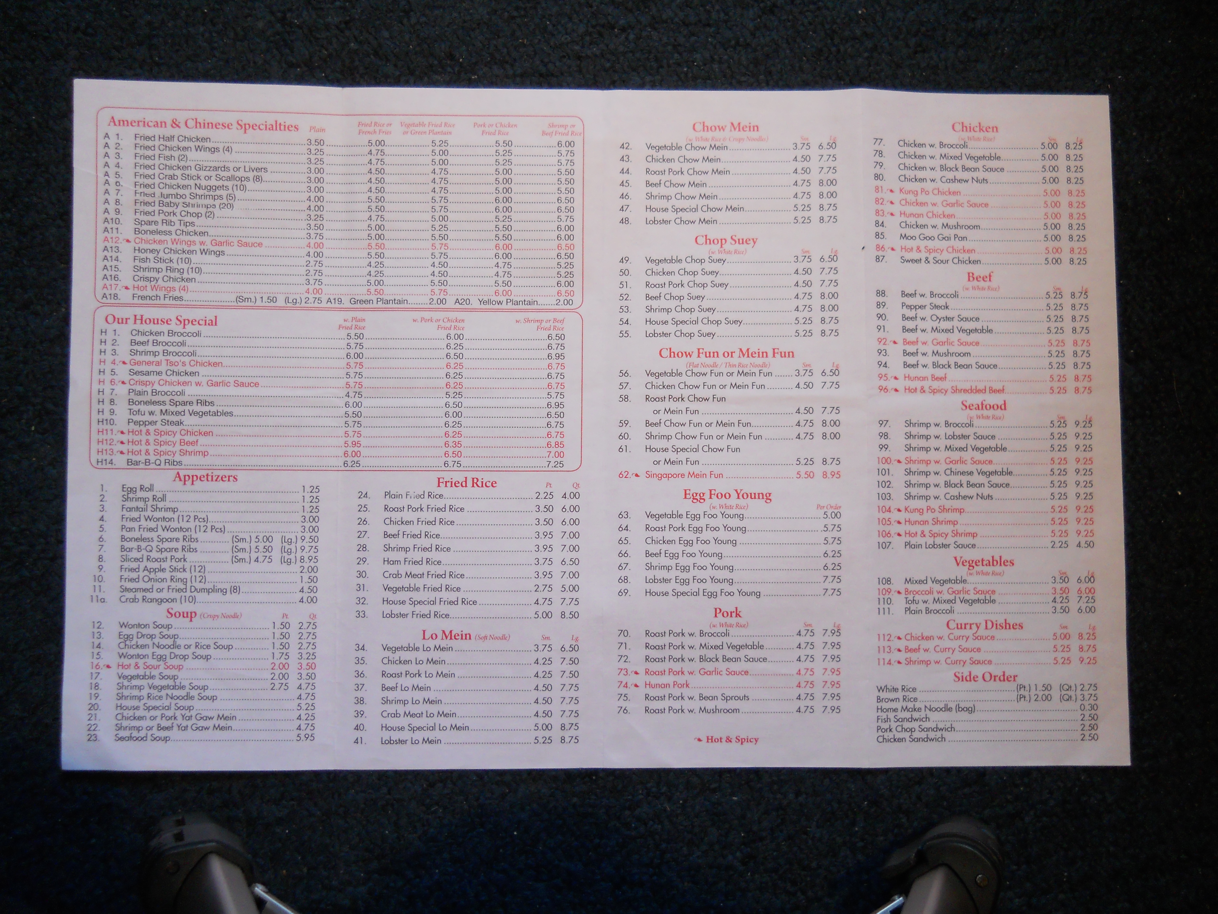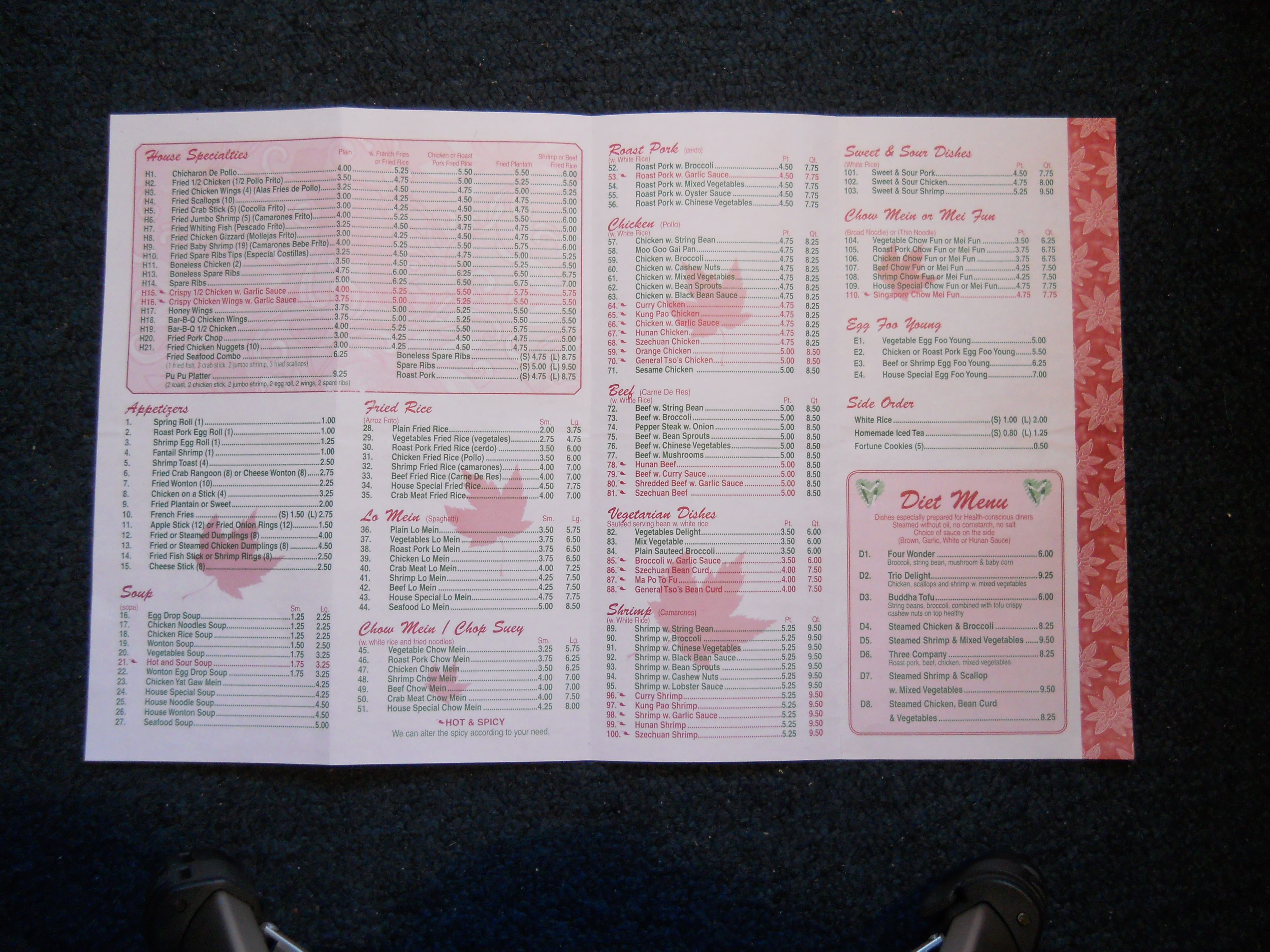 Number One Chinese Restaurant menu