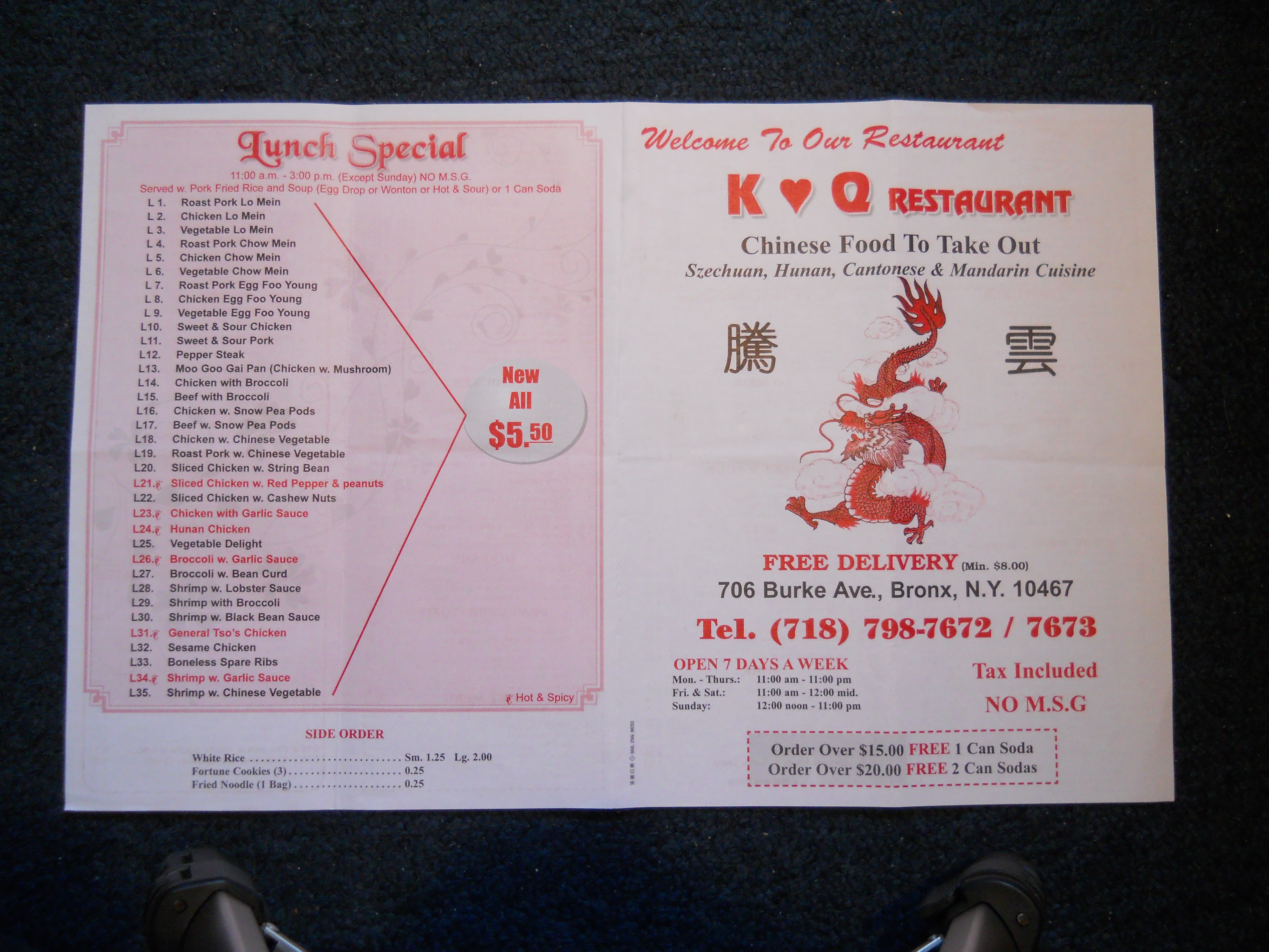K and Q Restaurant menu