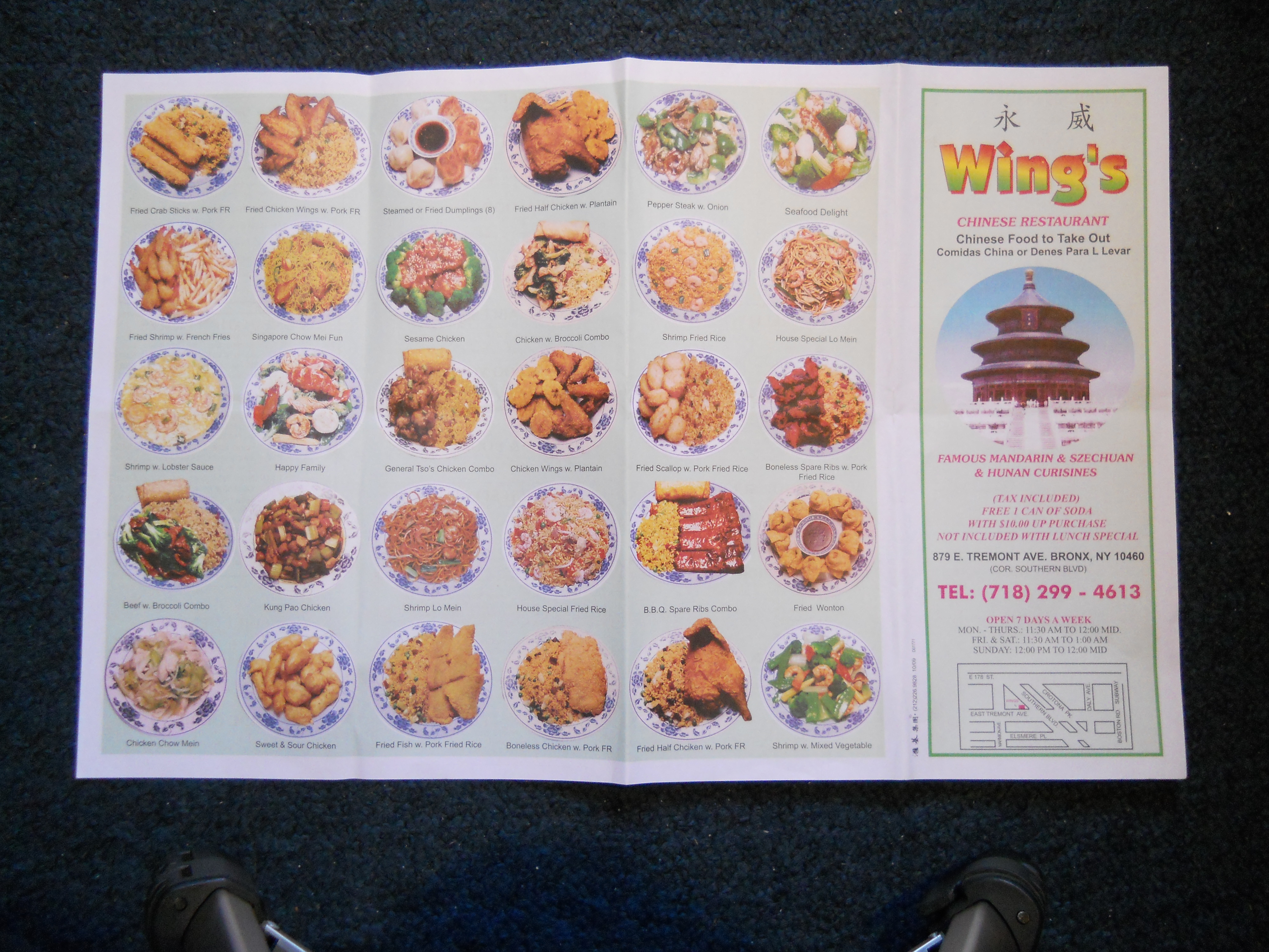 Wing's Chinese Restaurant, 879 East Tremont Avenue, Bronx, NY, 10460 (CAMIS 40836870)