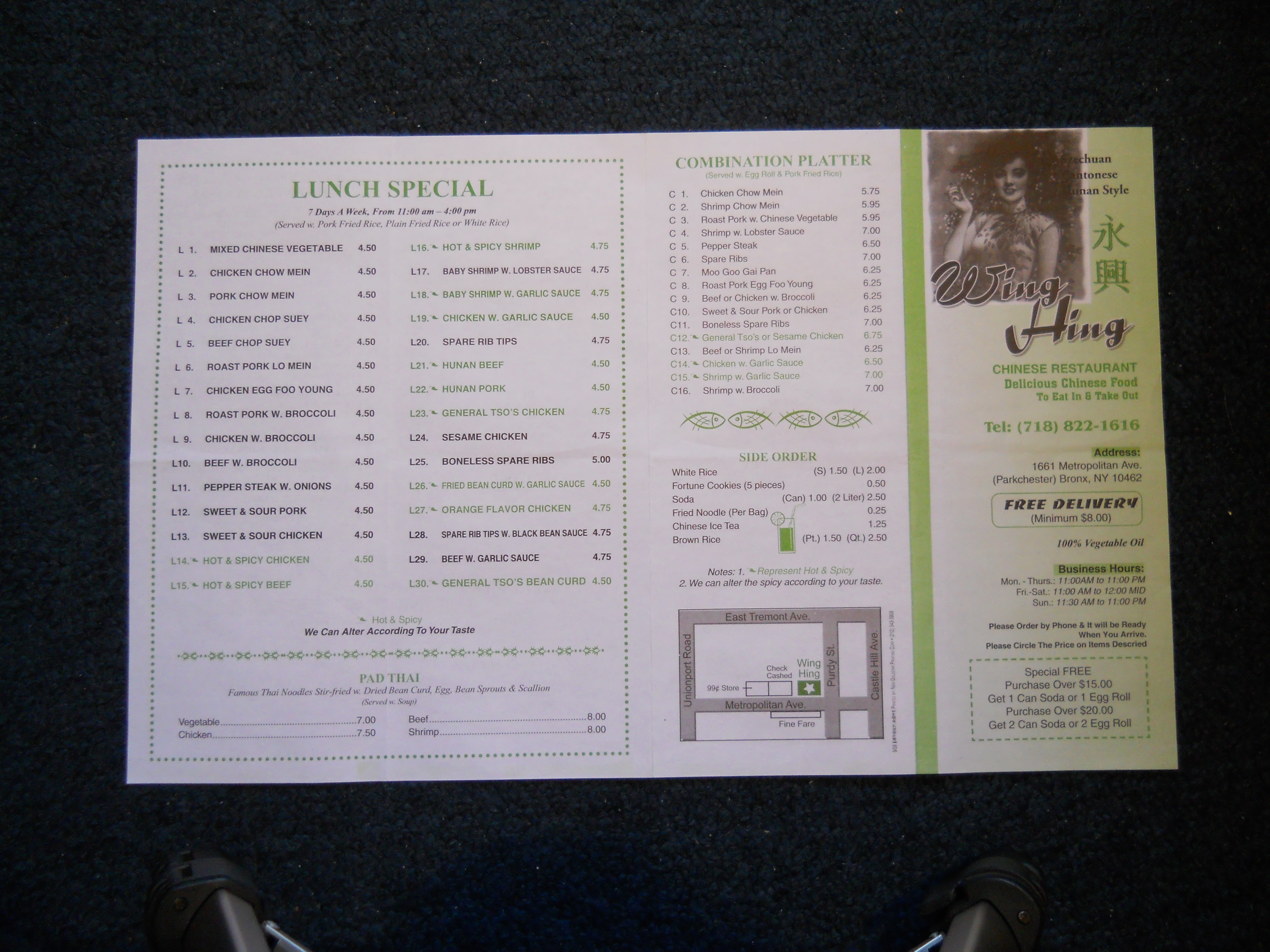 Wing's Chinese Restaurant menu