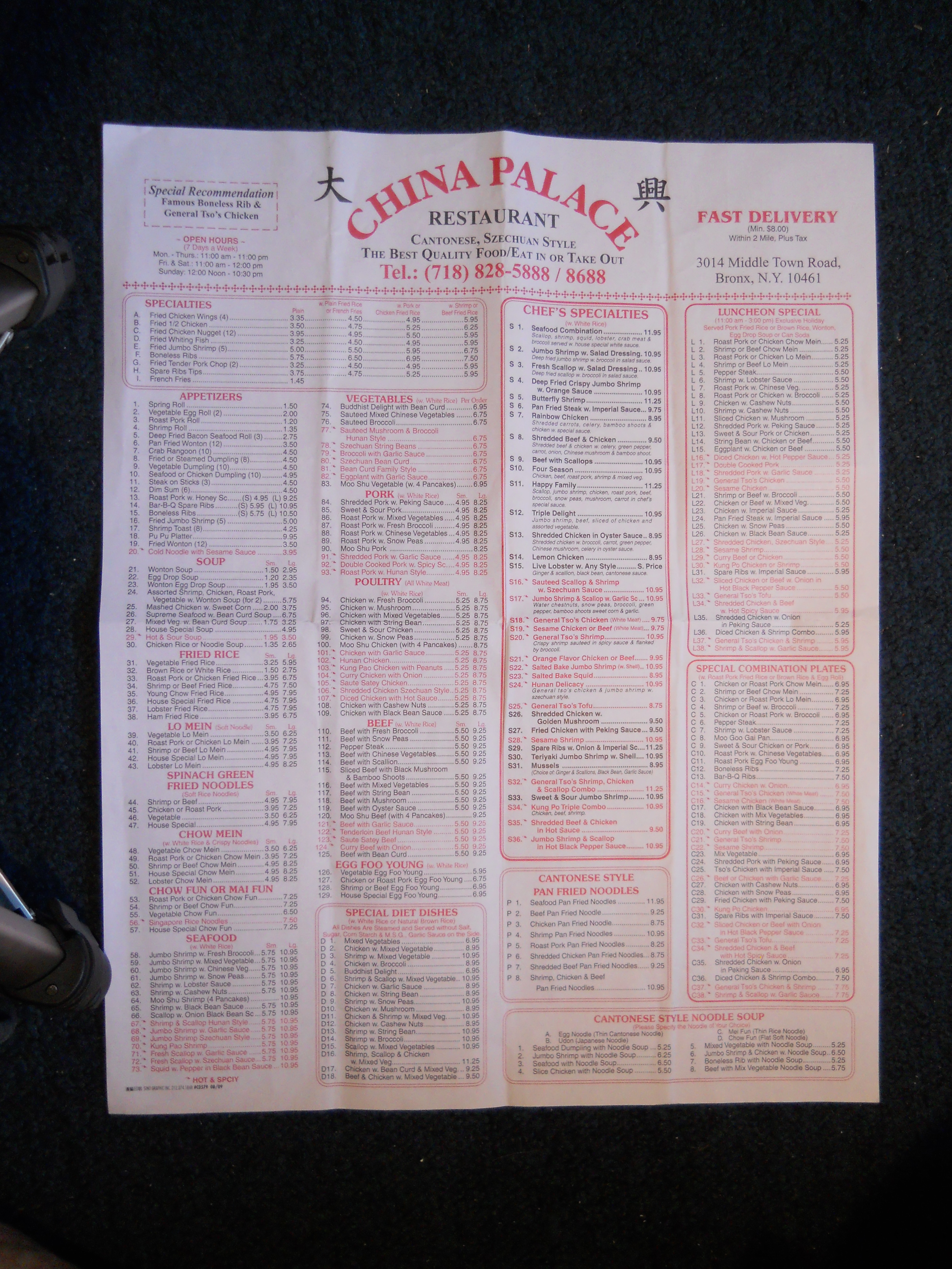 China Palace Restaurant, 3014 Middletown Road, Bronx, NY, 10461 (CAMIS 41052095)