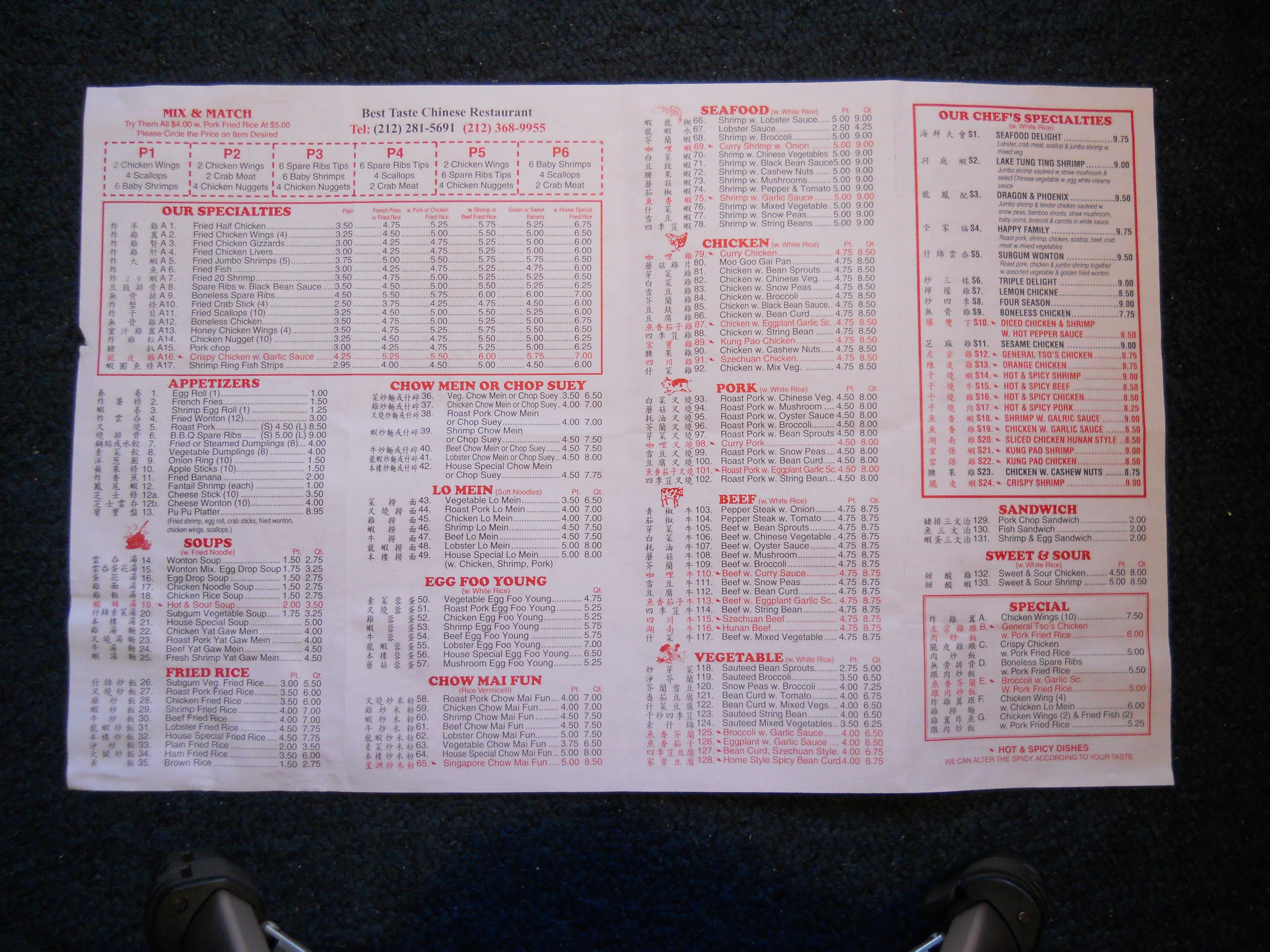 Best Taste Chinese Restaurant, 3609A Broadway, New York, NY 10027 (CAMIS 40660488)