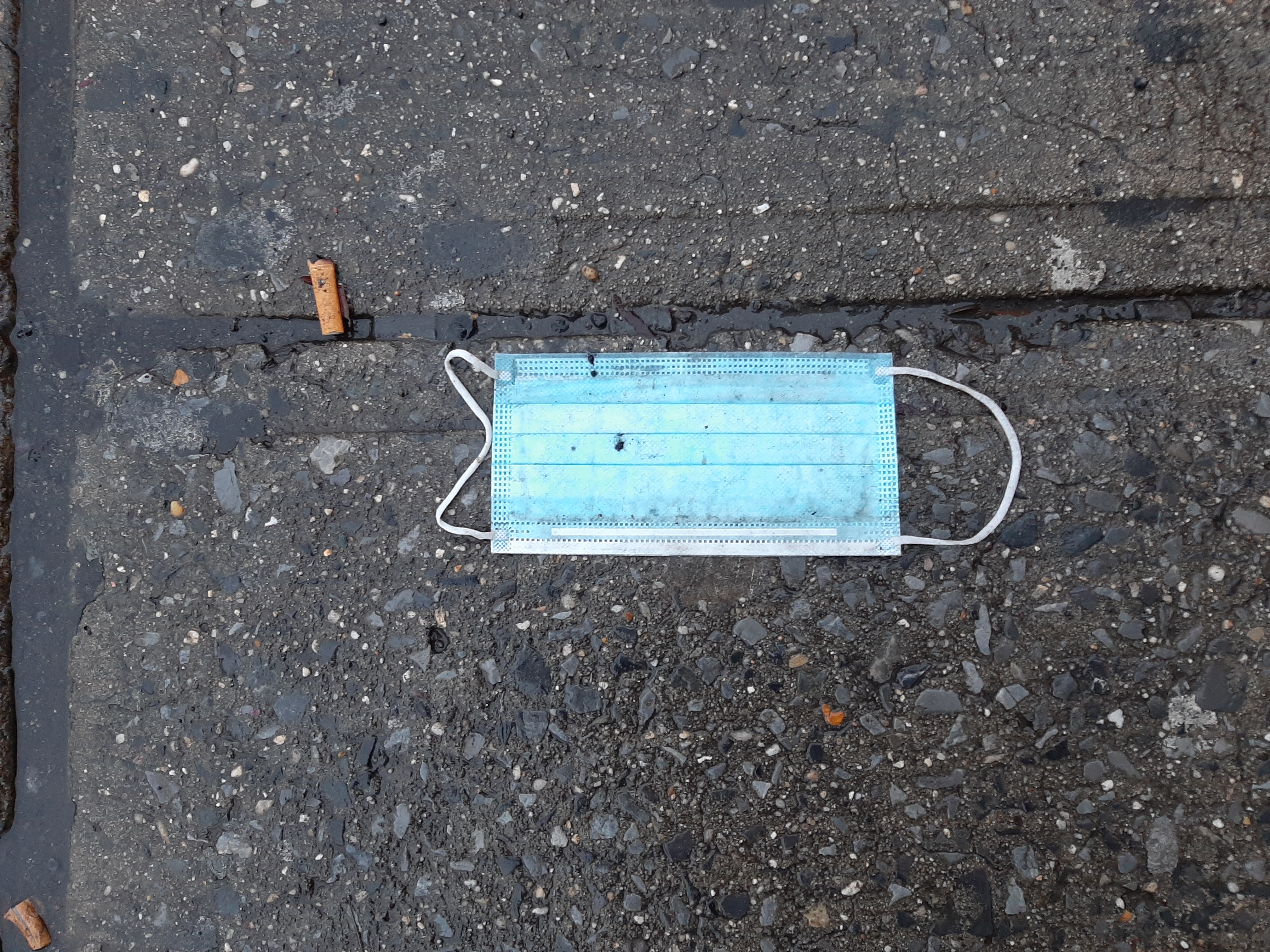 Discarded surgical mask on the sidewalk