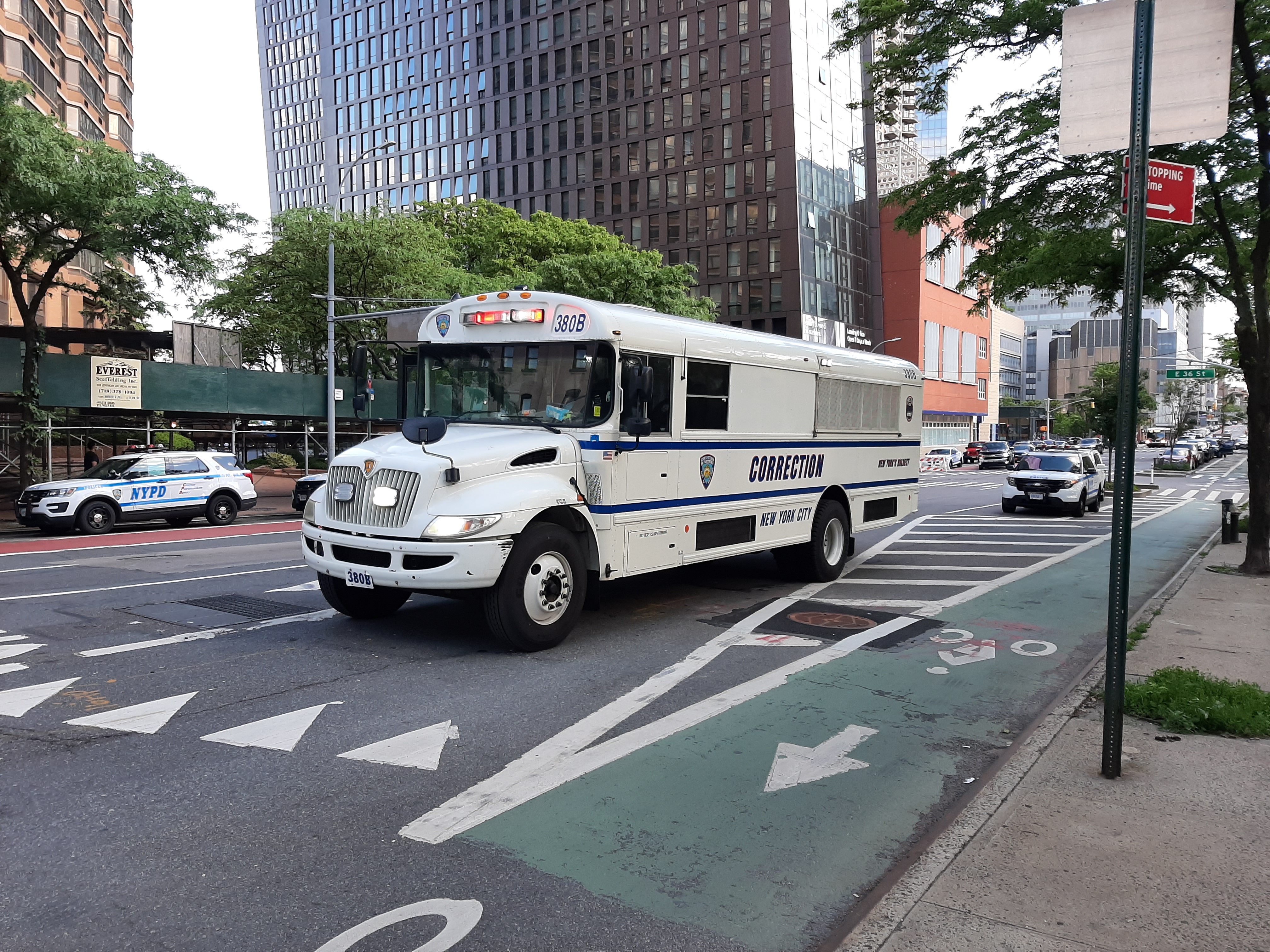 Corrections bus with protesters