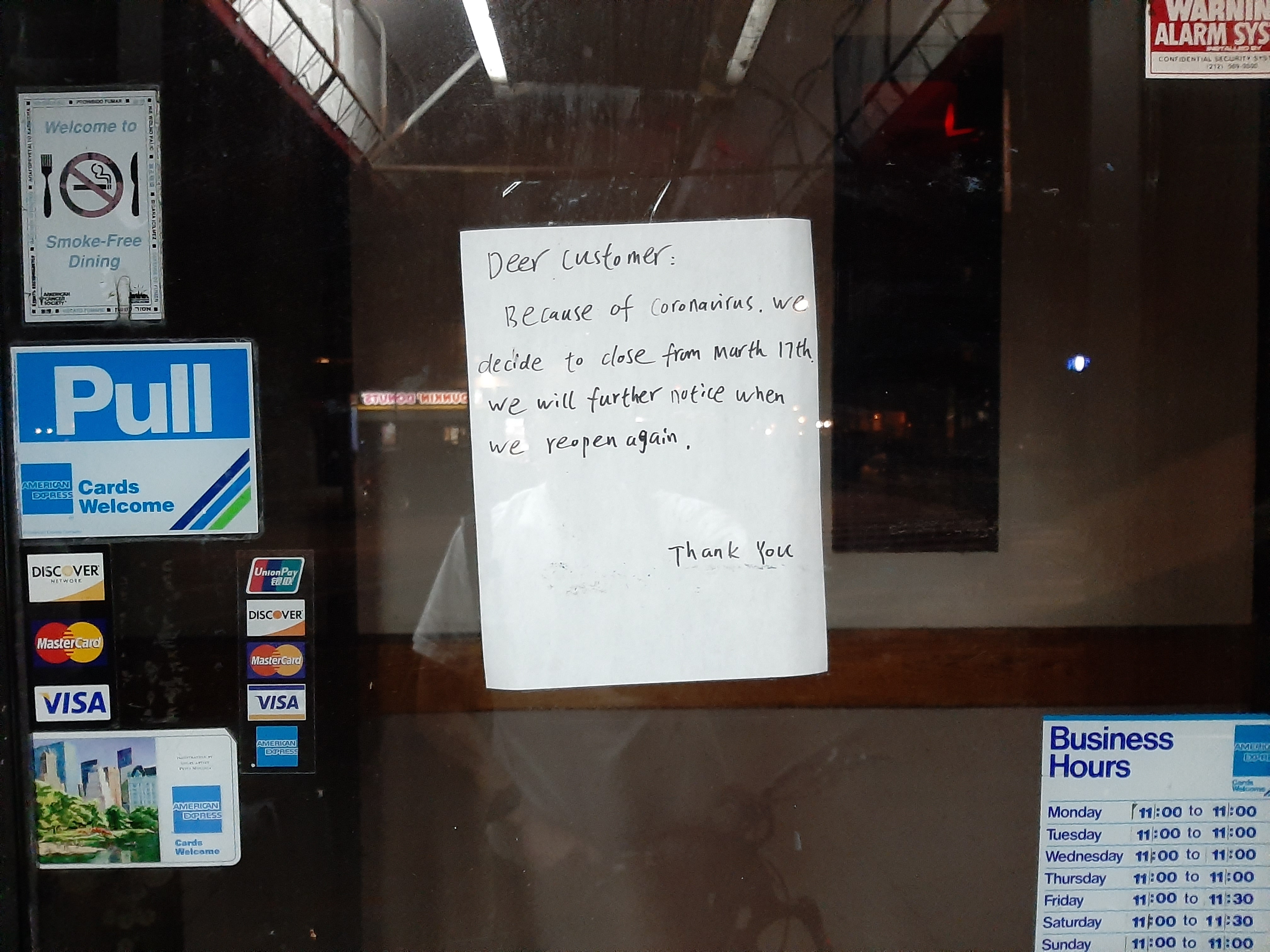 Closed for COVID since March 17