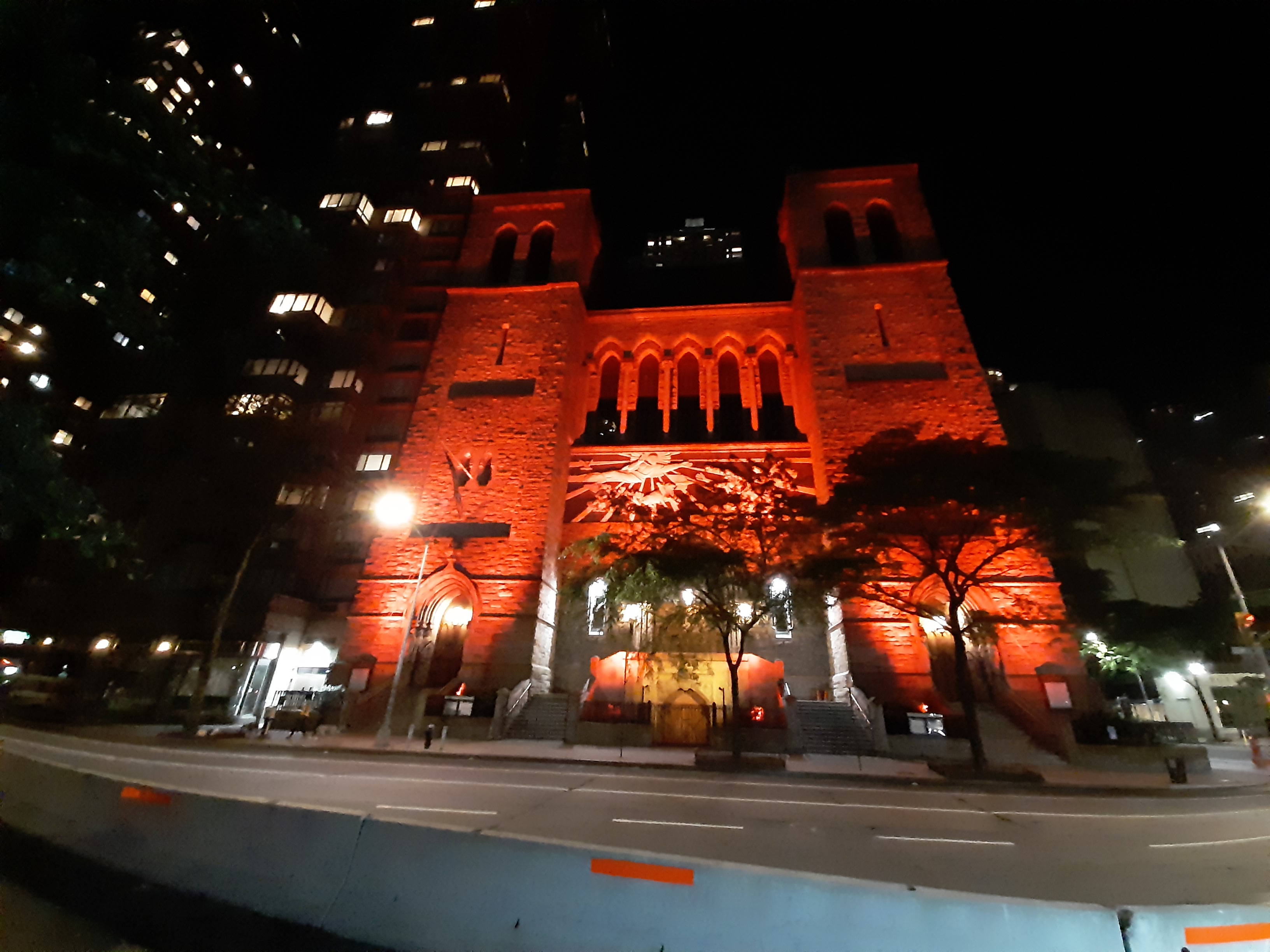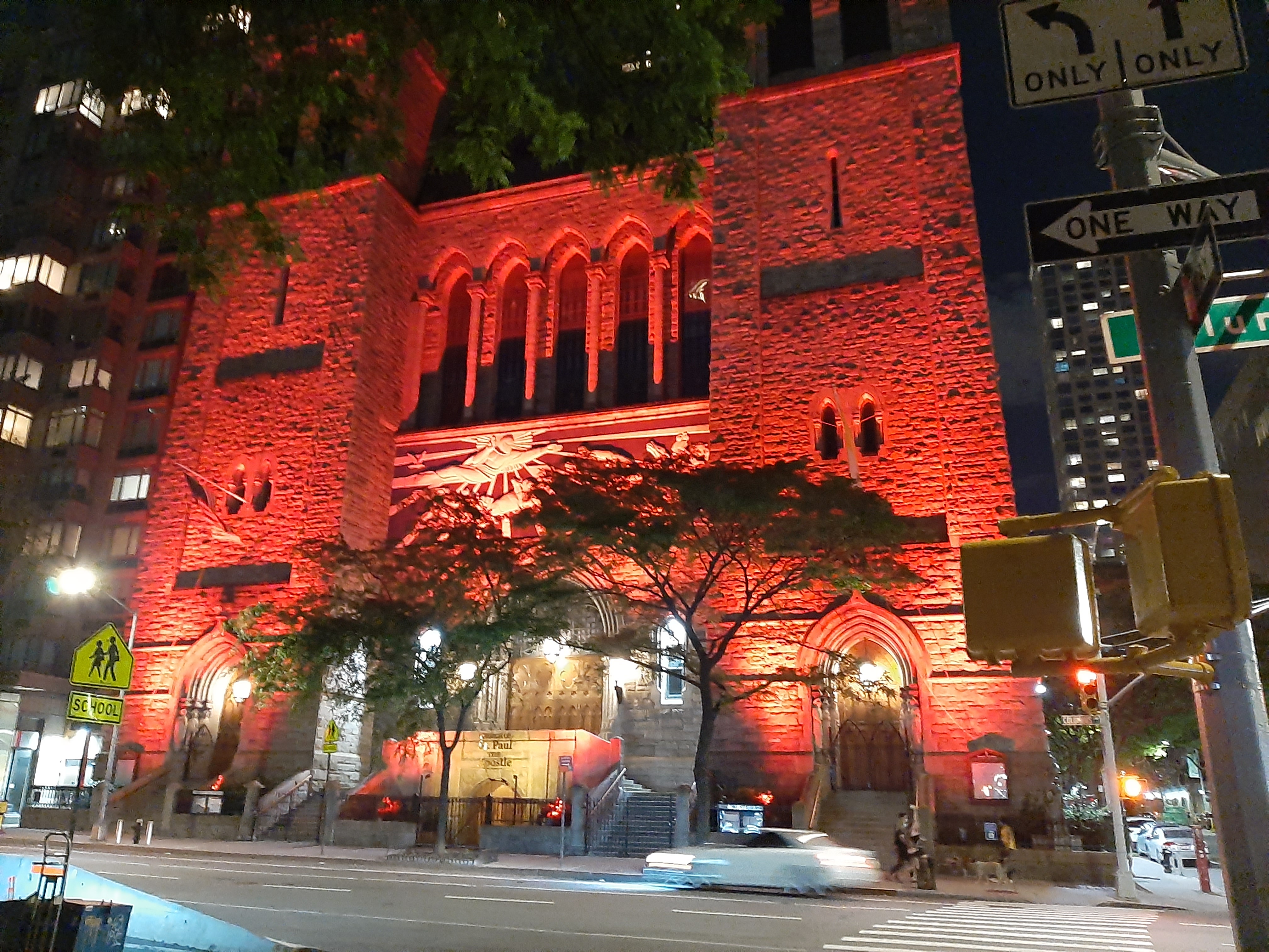 Church of Saint Paul the Apostle - lit red for George Floyd