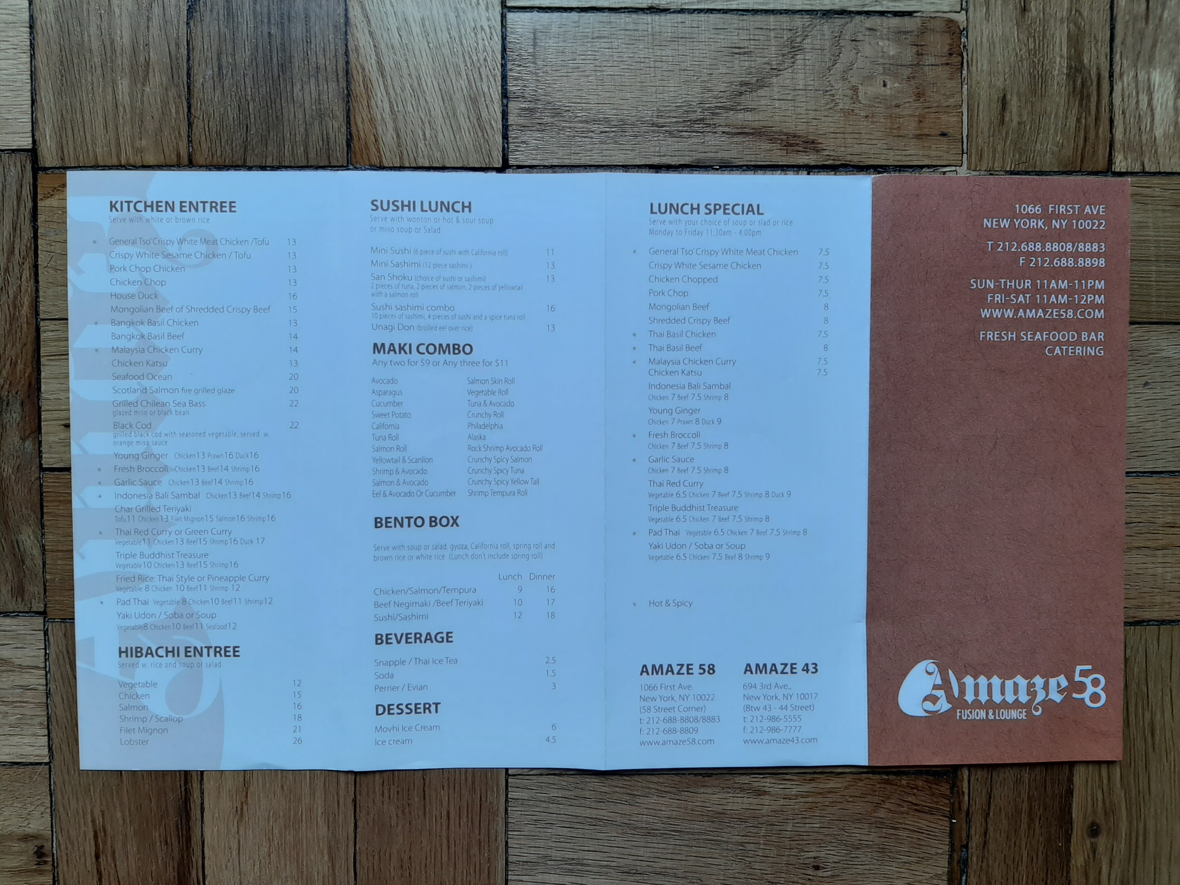 Amaze Fusion and Lounge (Avenue 58), 1066 First Avenue / 401 E 58 ST, New York, NY 10022 (CAMIS 50001842)