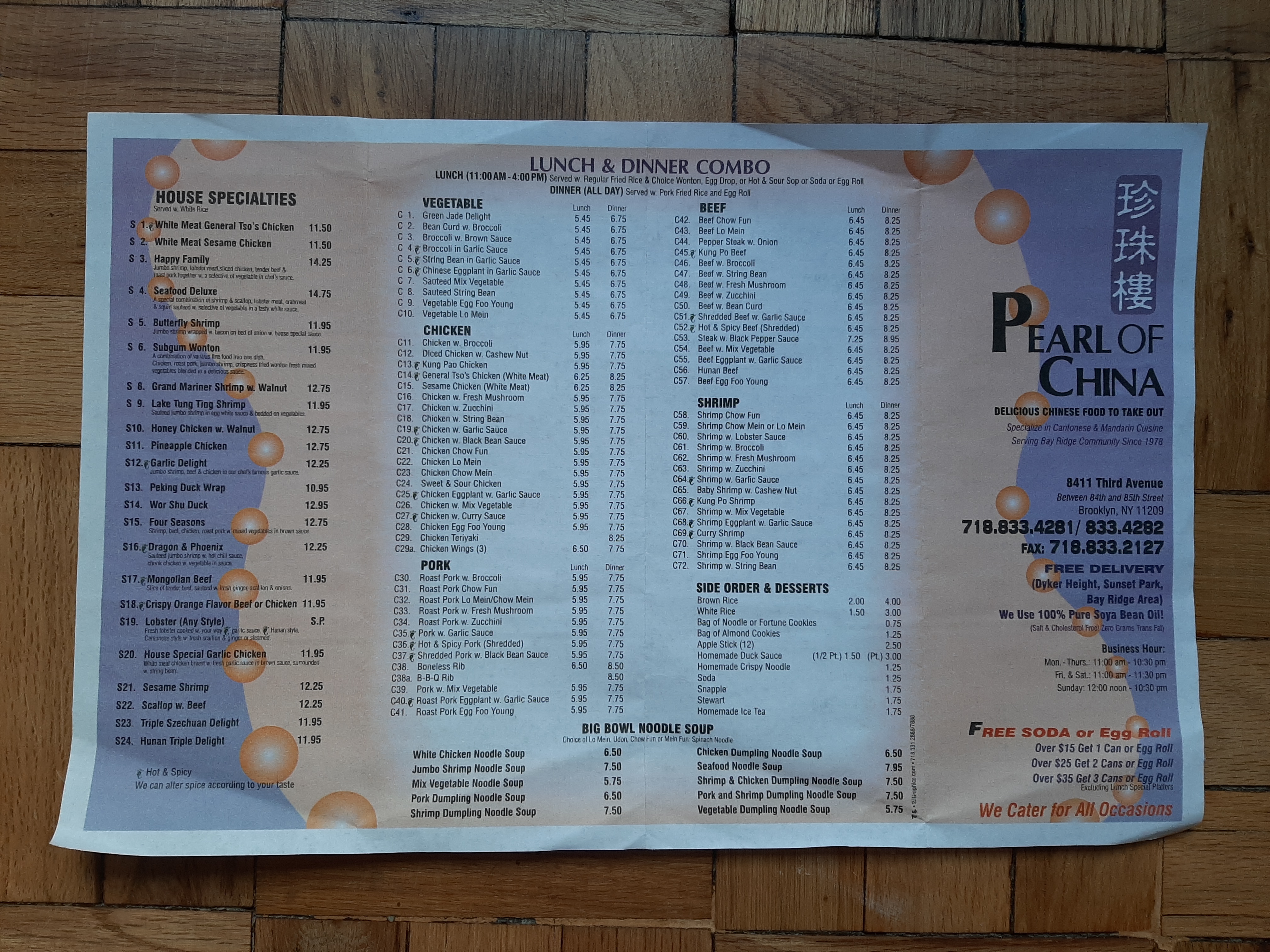 Pearl of China, 8411 Third Avenue (CAMIS 50005503)