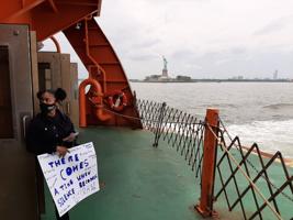 Protester + Statue of Liberty