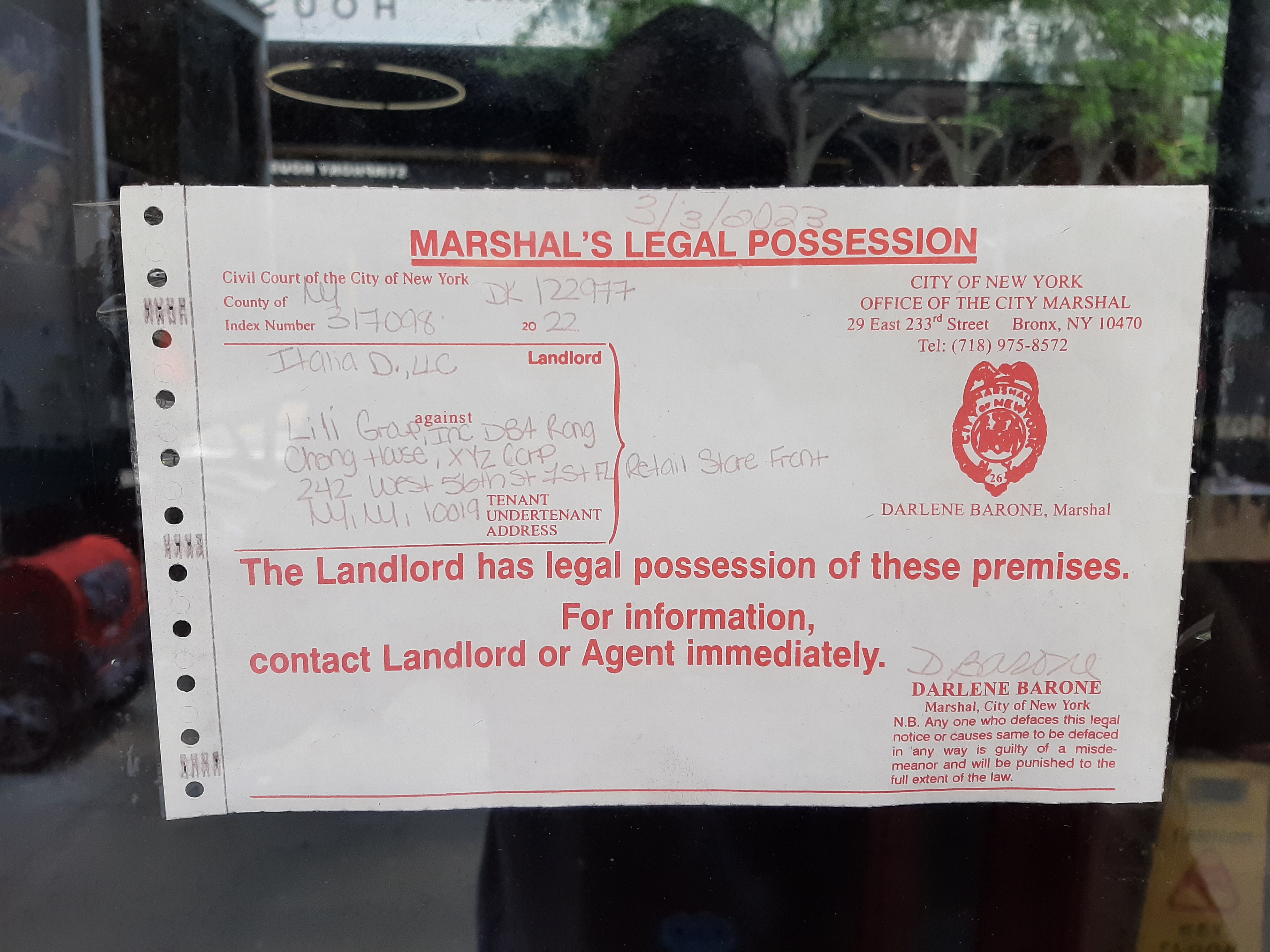 Marshall's legal possession