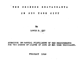 Louis Chu. 1939. The Chinese Restaurants in New York City02/03/2010 Chinese Restaurant Sample List CSV File
