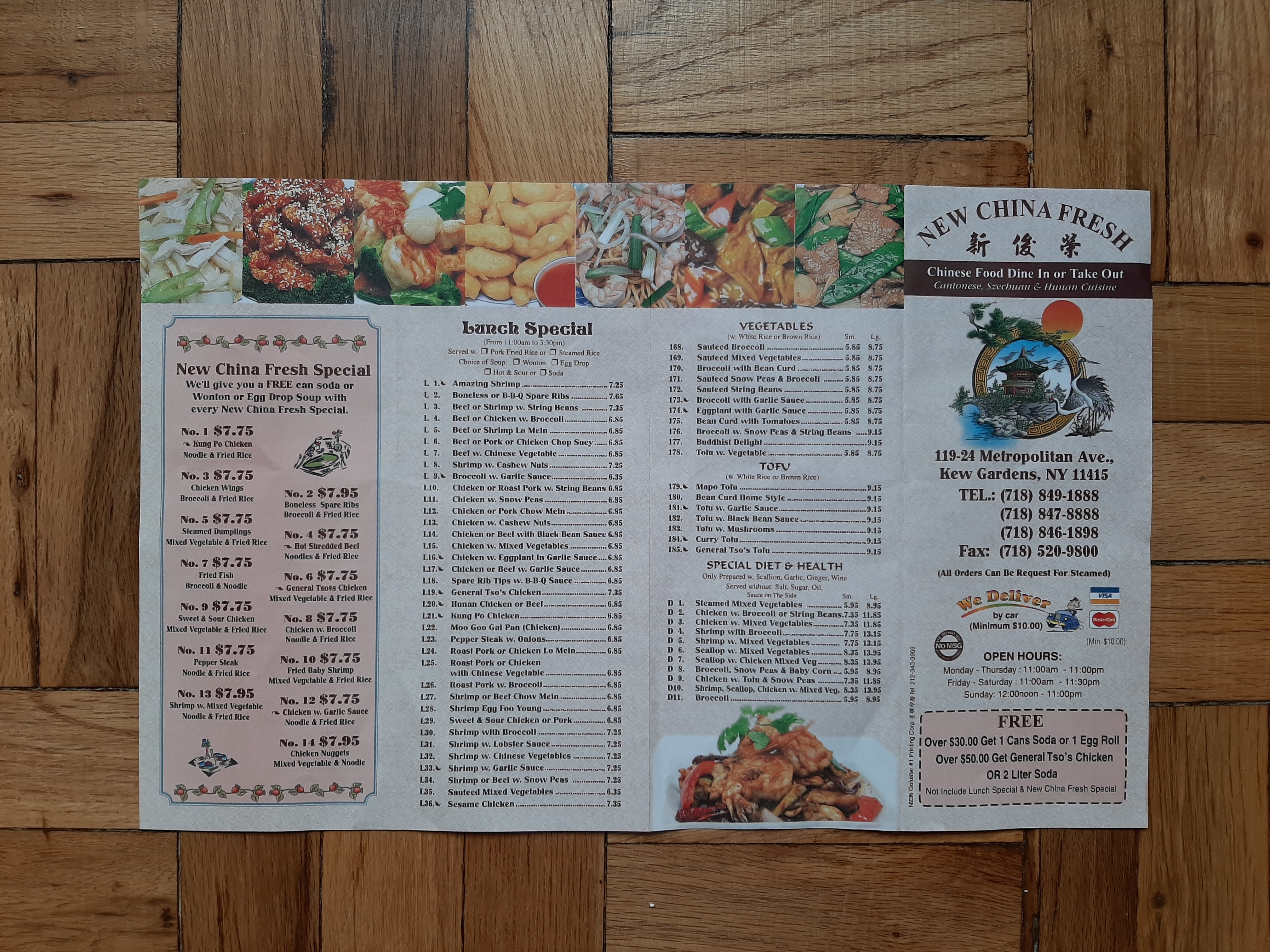 09/01/2019 19:02:35 New China Fresh (CAMIS 50071283)09/01/2019 18:44:53 Lo mein05/13/2020 19:56:56 New China Fresh reopen during COVID05/13/2020 19:57:06 Menu05/24/2020 21:44:36 New China Fresh Restaurant06/01/2020 10:13:16 Menu06/01/2020 10:13:23 Menu