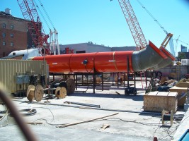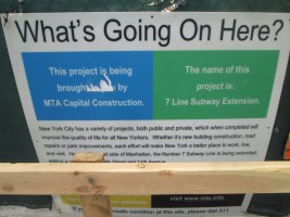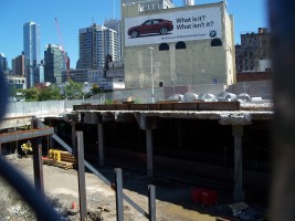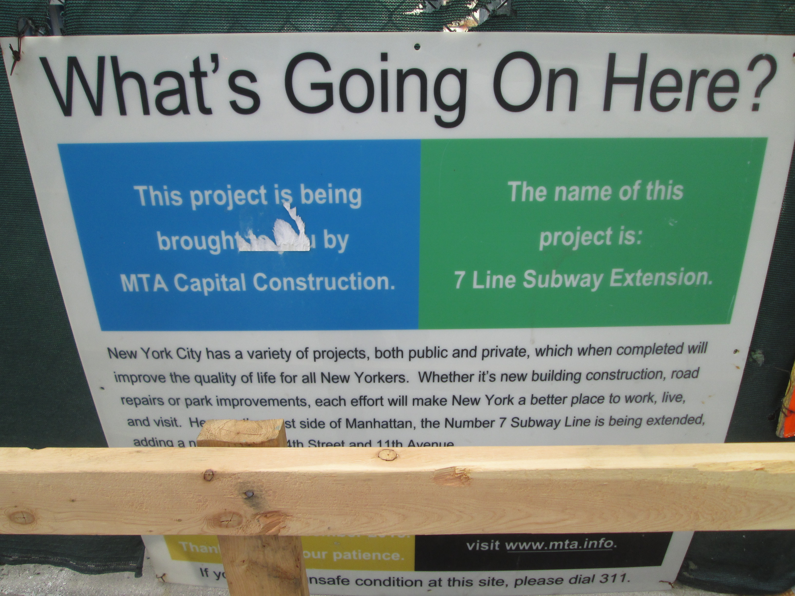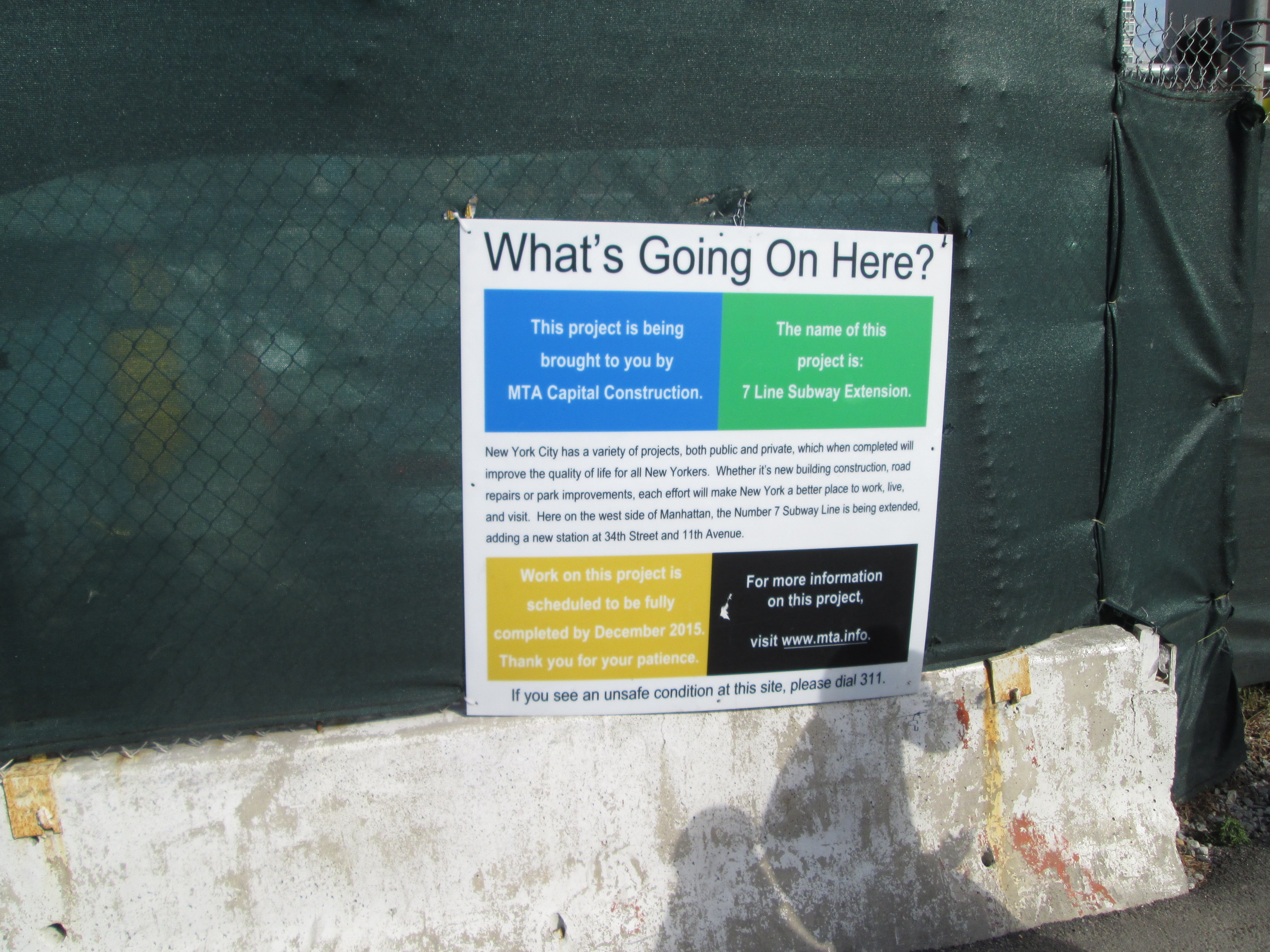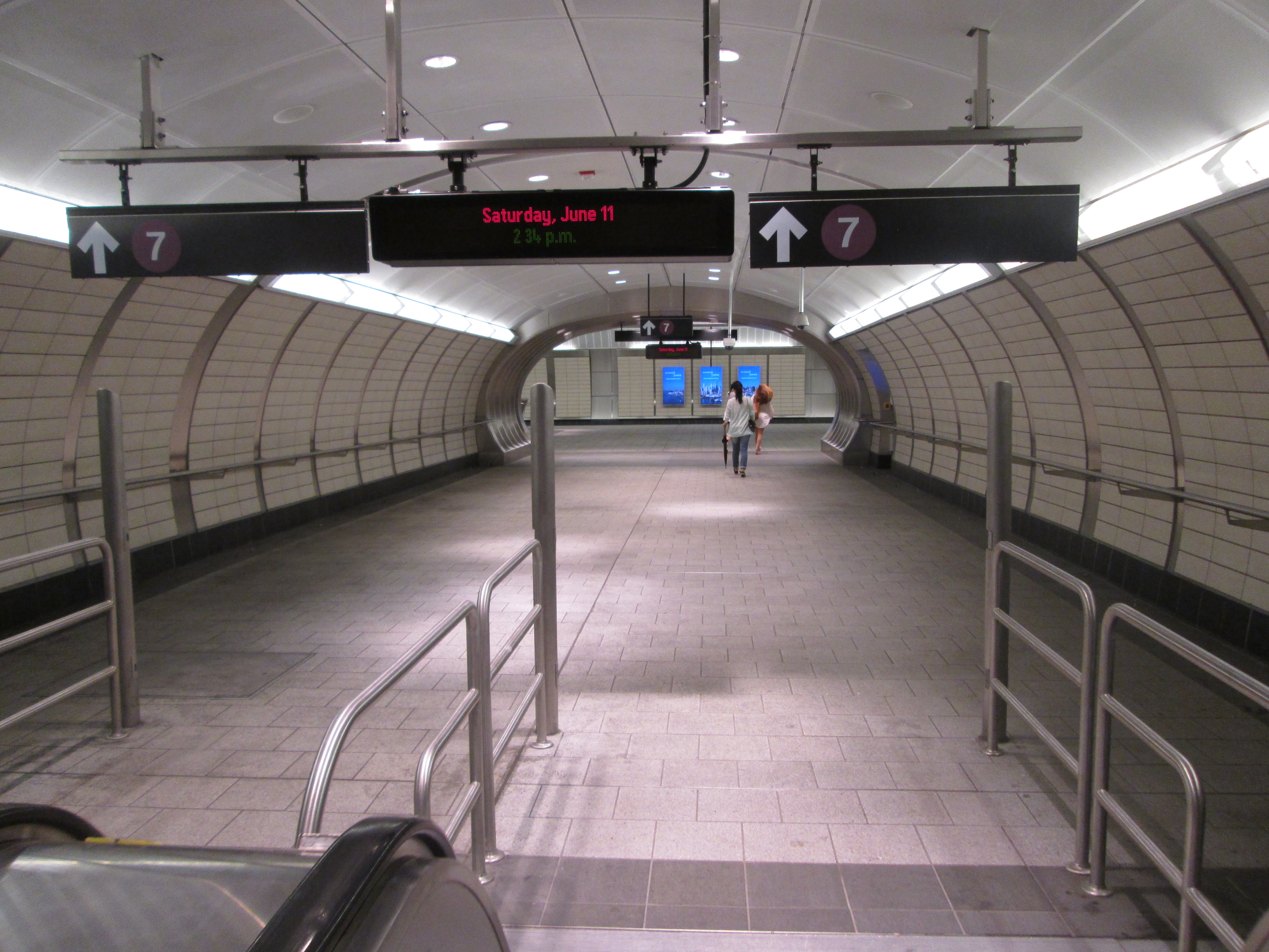 In October of 2007, the Metropolitan Transit Authority began awarding contracts for an extension of the IRT Flushing Line (#7 Train) from its existing terminus at Times Square under 41st Street (which opened in 1917) to an new station here on Eleventh Avenue at 34th Street across from the Jacob Javits Convention Center. The two-track extension will run through a new 7,000-foot deep-bored tunnel under 41st Street that turns south and runs under Eleventh Avenue. While there is interest in building a station at 41st Street and Eleventh Avenue to service the burgeoning crop of luxury development on the far west side of Hell's Kitchen, as of this writing, the city (suffering from chronic financial difficulties) hasn't come up with the money to build the station. The tunnel will actually continue south to 23rd street to provide train storage, leaving the possibility of later extension further south into Chelsea and the Chelsea Piers recreational area.