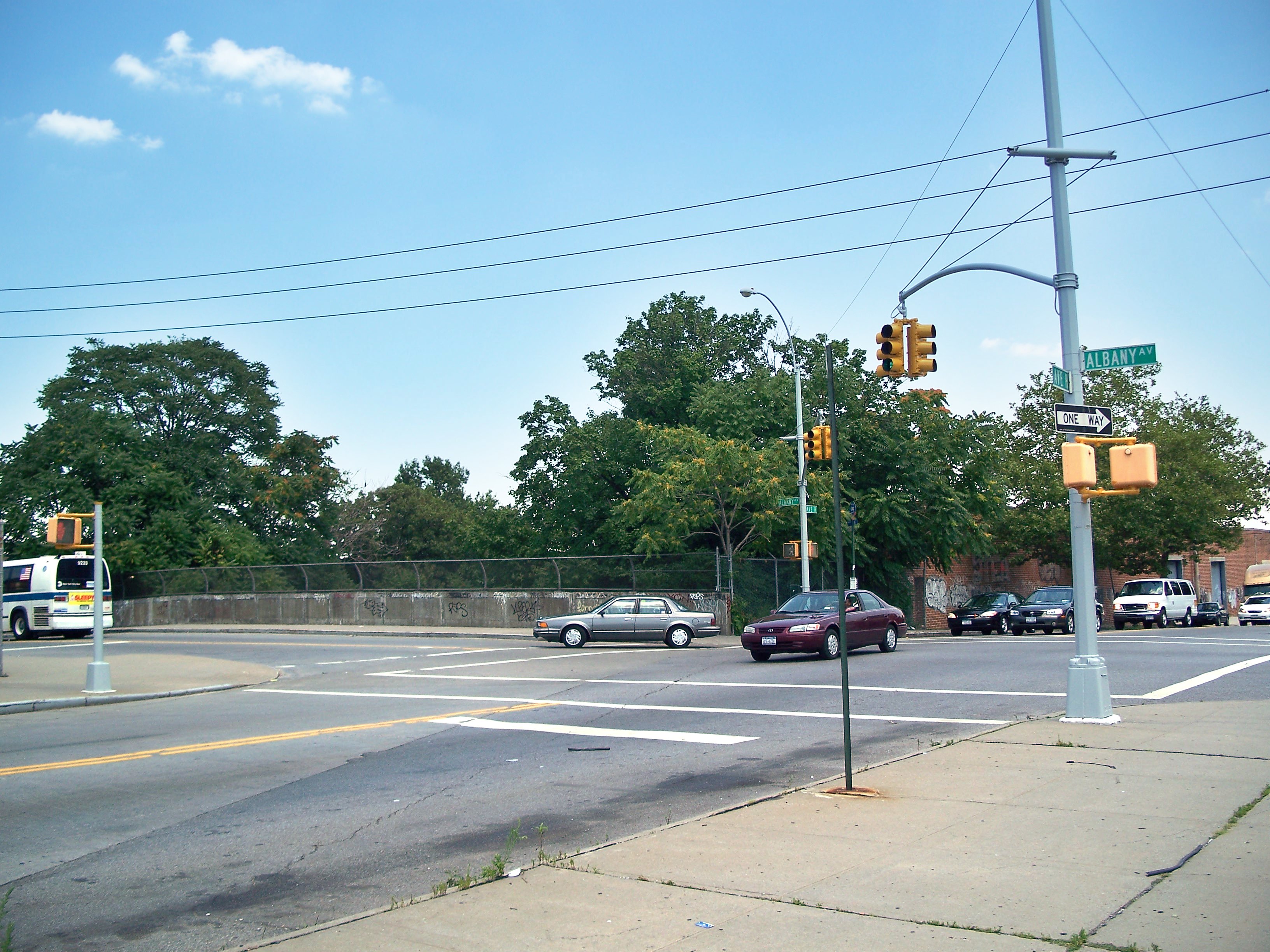 Avenue H has an industrial patch here as you head farther east from Nostrand Avenue, although there are still plenty of folks living off the avenue on the side streets. This intersection with the tracks has some irregular lots that might make good locations for a station house, although it may be a bit too close to the Flatbush Avenue station to be justifiable.