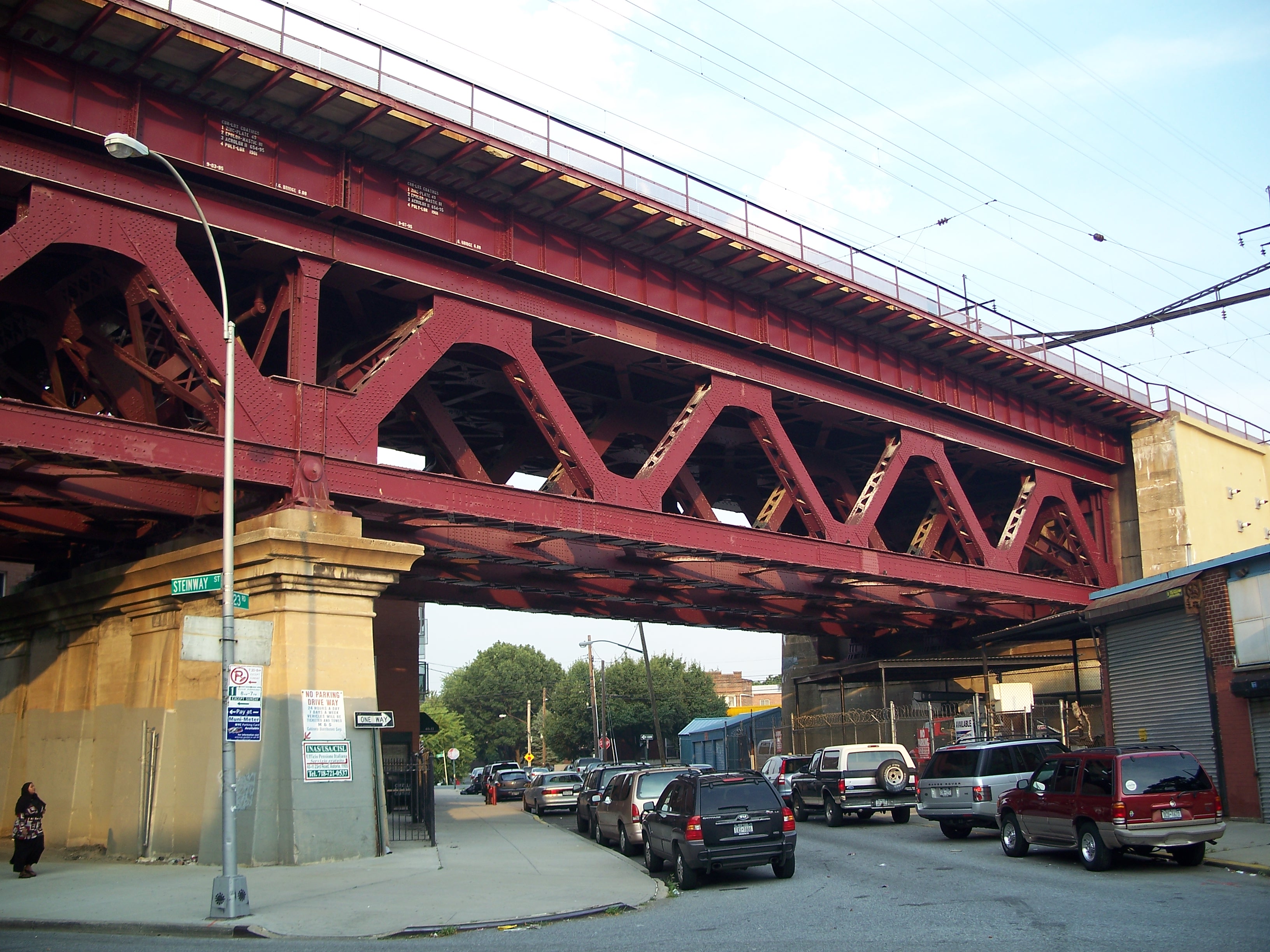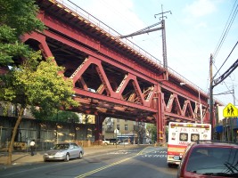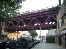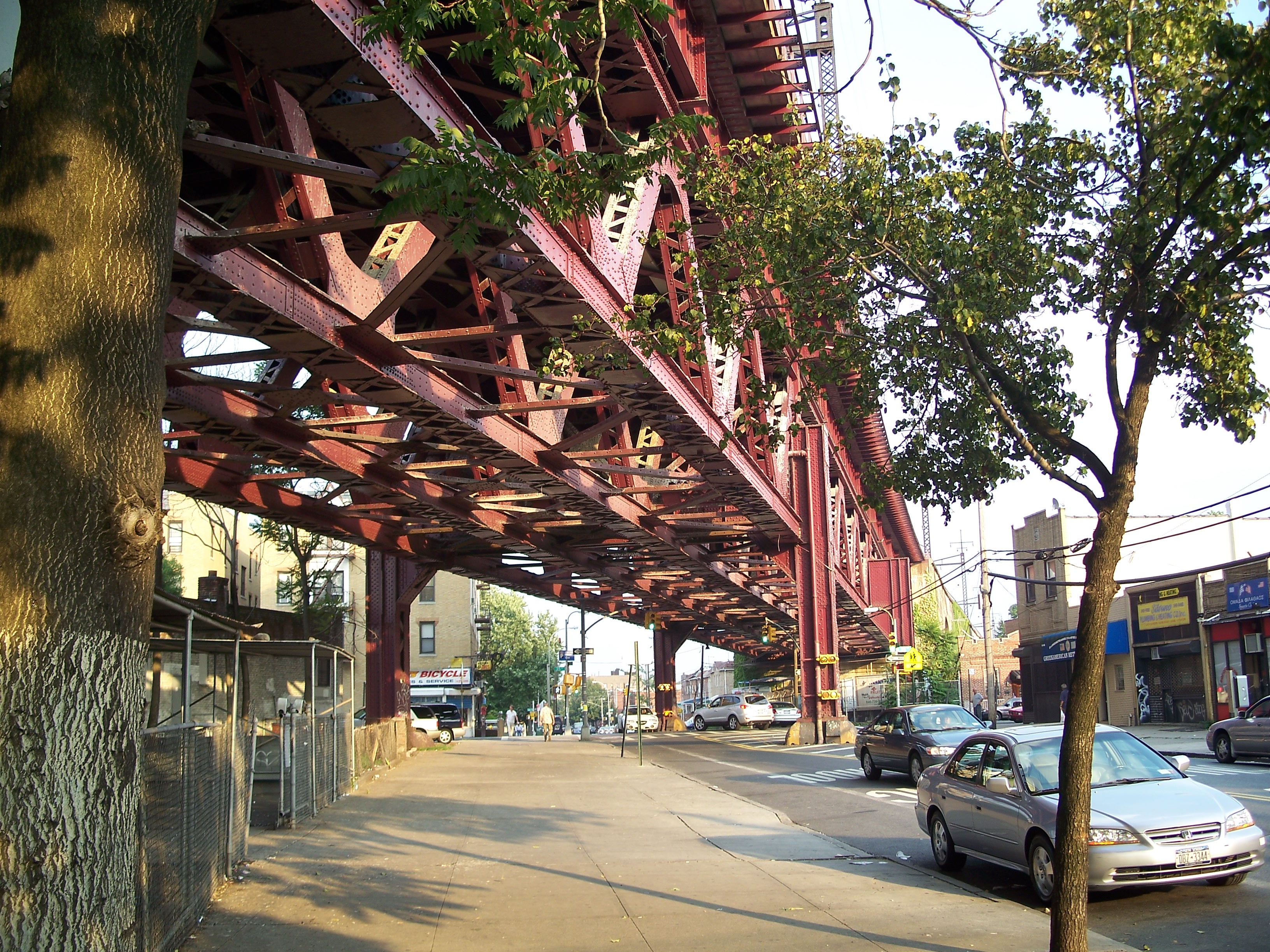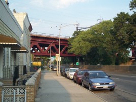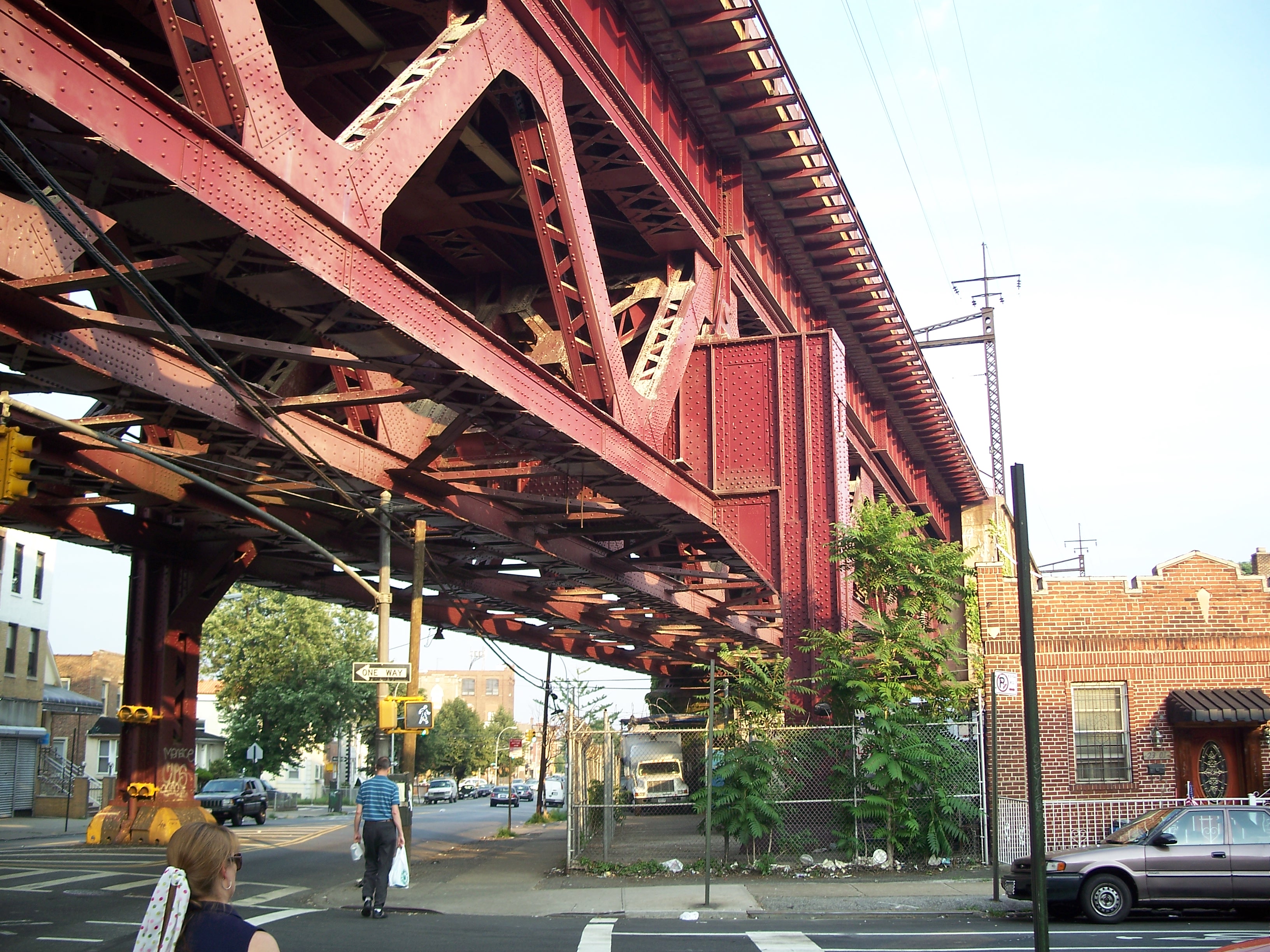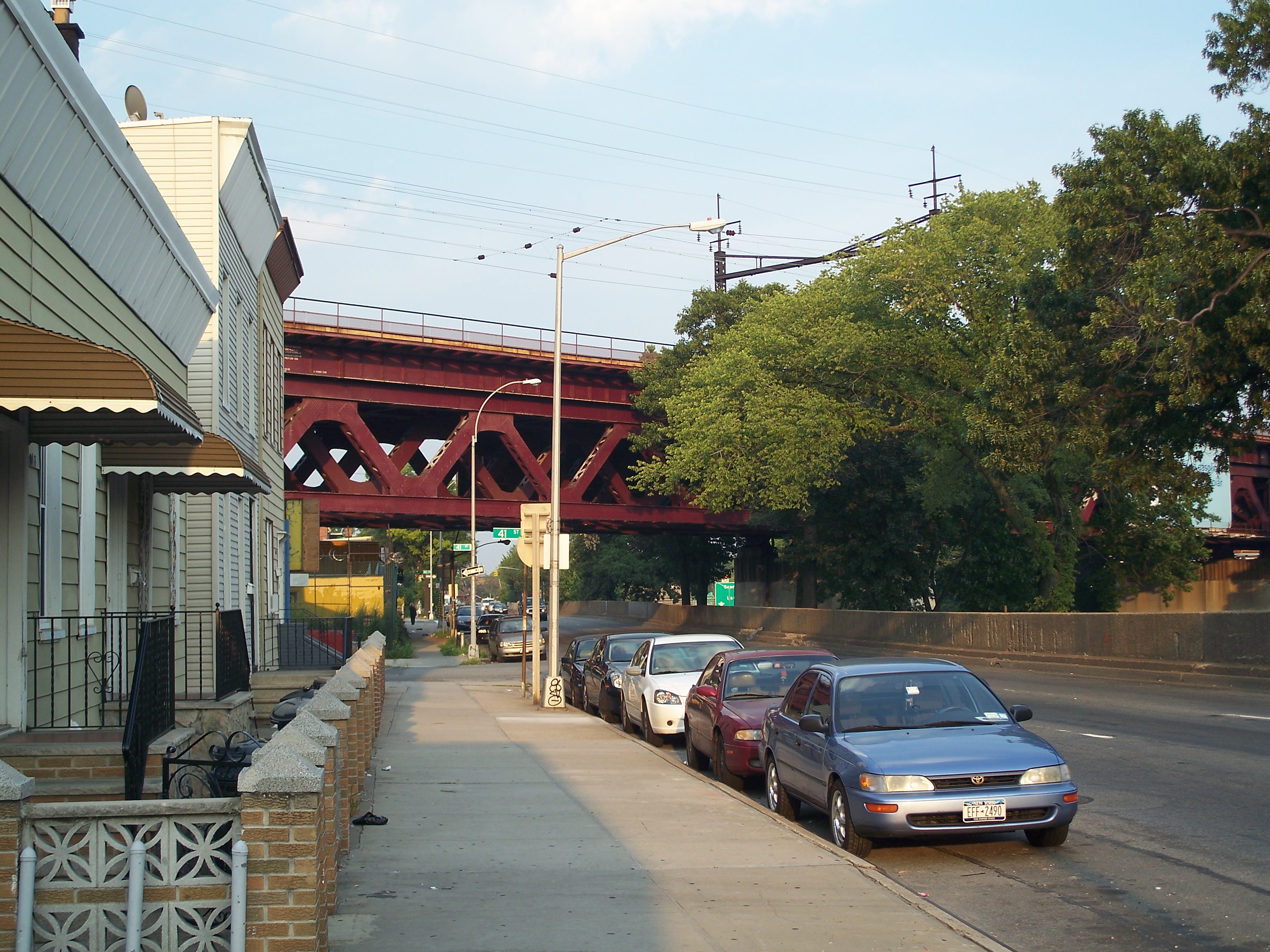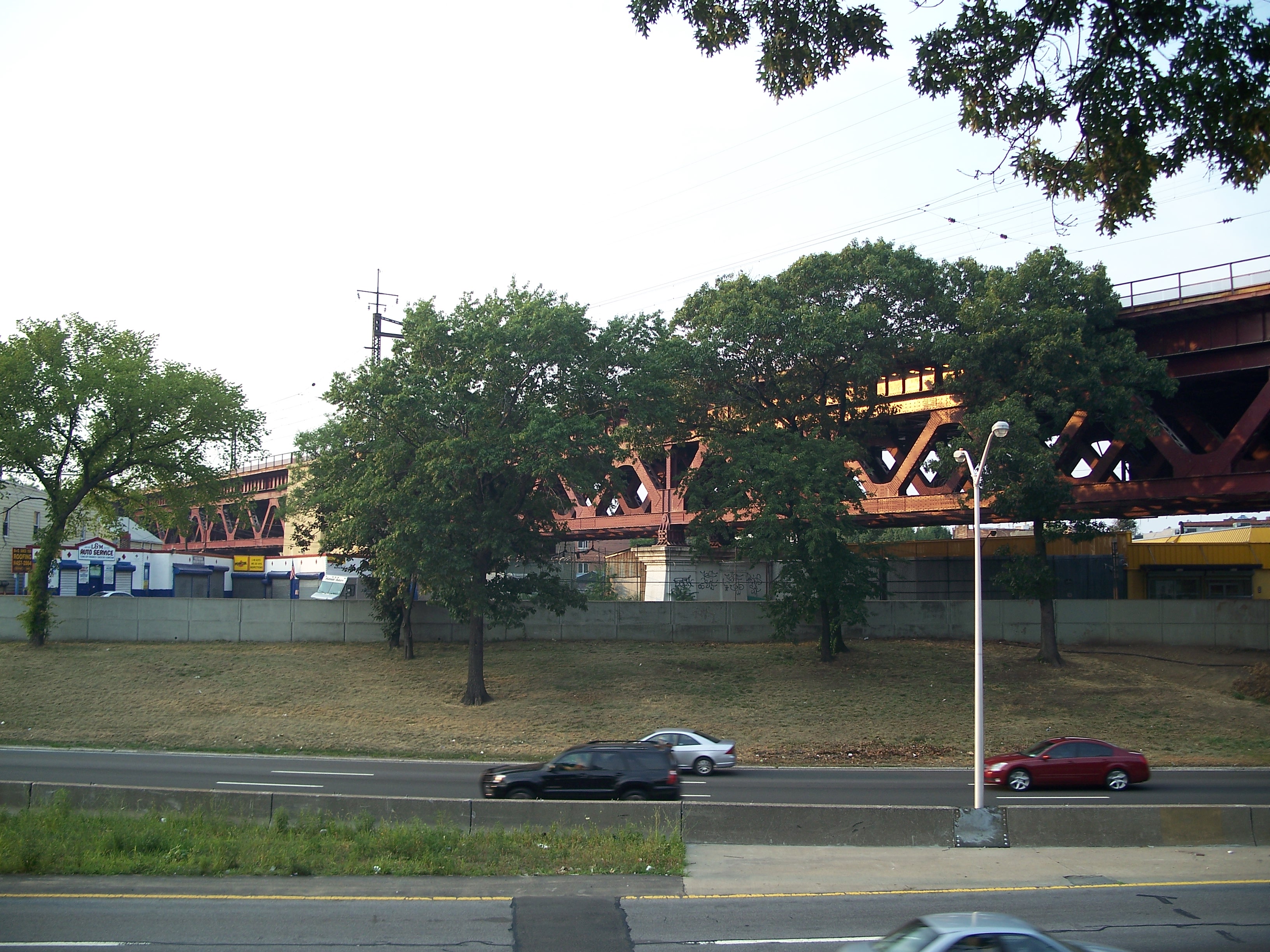 The NYCRR line crosses I-278, Astoria Boulevard, and Steinway Street on a very imposing truss viaduct. This is also an approximate midway point on the line between Roosevelt Avenue and the BMT Ditmars Boulevard station, which might make it a good spot for a Circumferential Line station - perhaps over the irregular lot between Astoria Boulevard and Steinway Street, north of I-278.