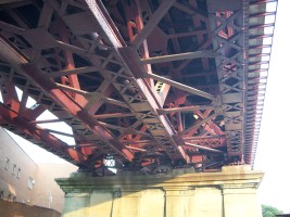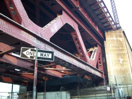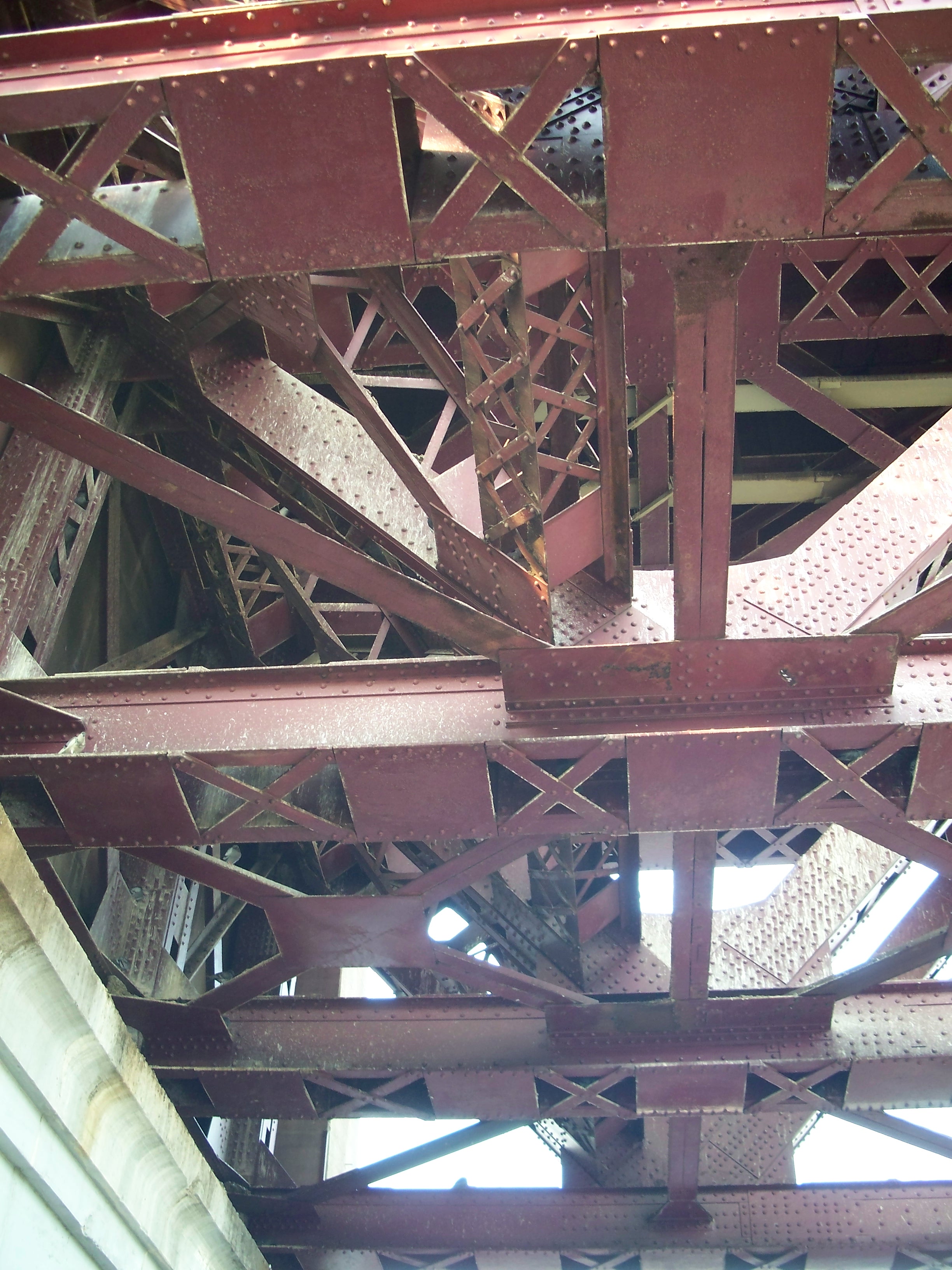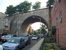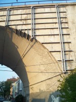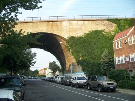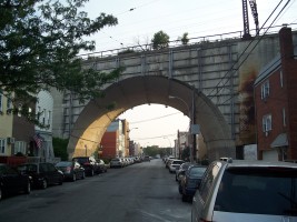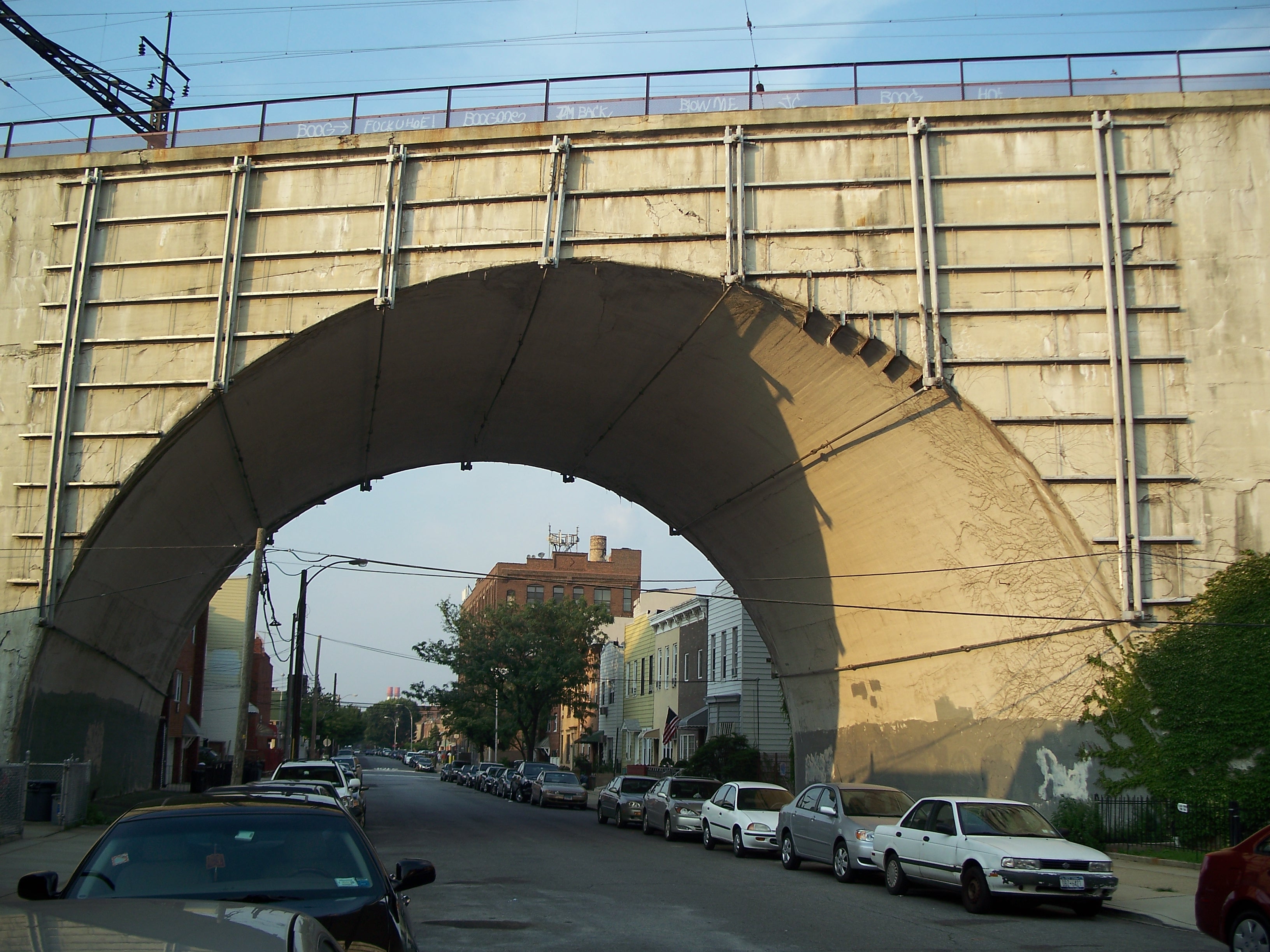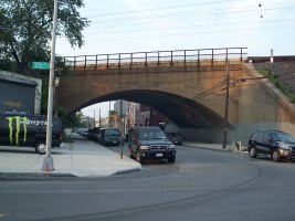 The concrete arch over 38th Street seems to be falling apart and is being held together with rails and tension rods. The repairs seem to have been there for awhile as there are limestone stalactites hanging from the metalwork. Terrifying.