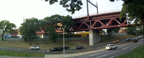 The New York Connecting Railroad, now joined with Amtrak traffic from Penn Station, makes gradual ascent through Astoria to the Hell Gate bridge over the East River. This elevation, along with potential congestion issues and a line design that was never intended to have intermediate station stops adds some significant challenges to the design for a Circumferential Line.