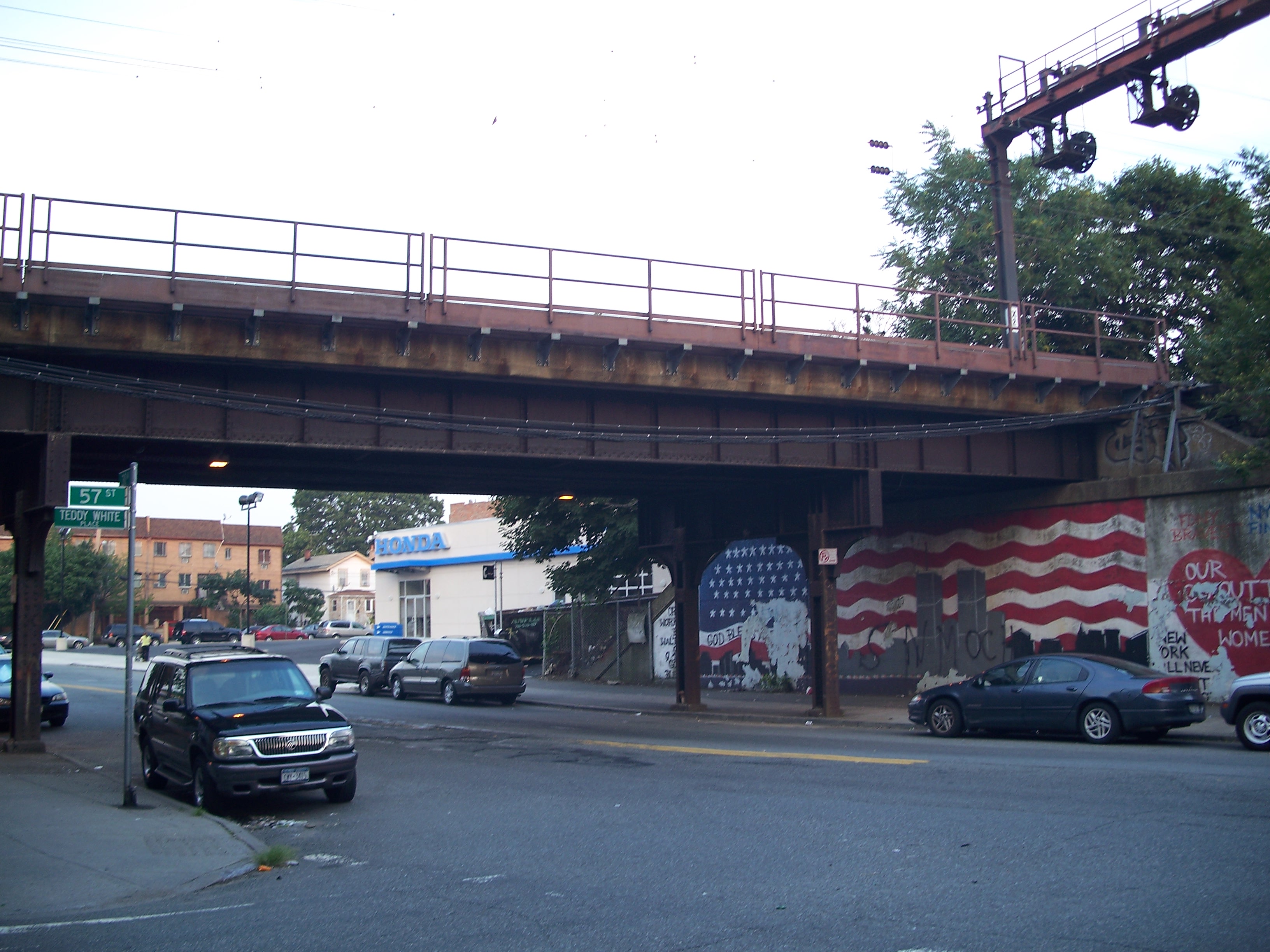 37th Avenue bridge over the tracks and the Brooklyn-Queens Expressway