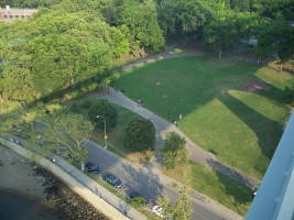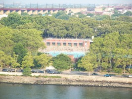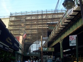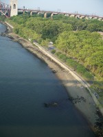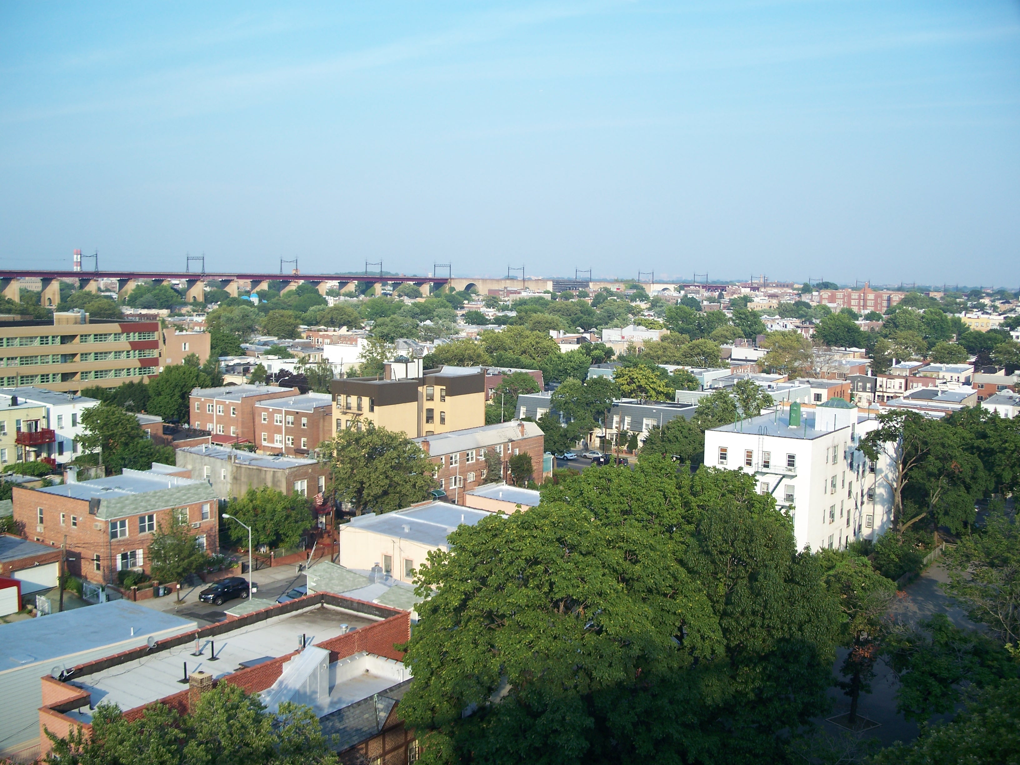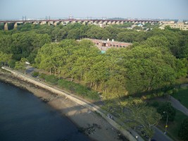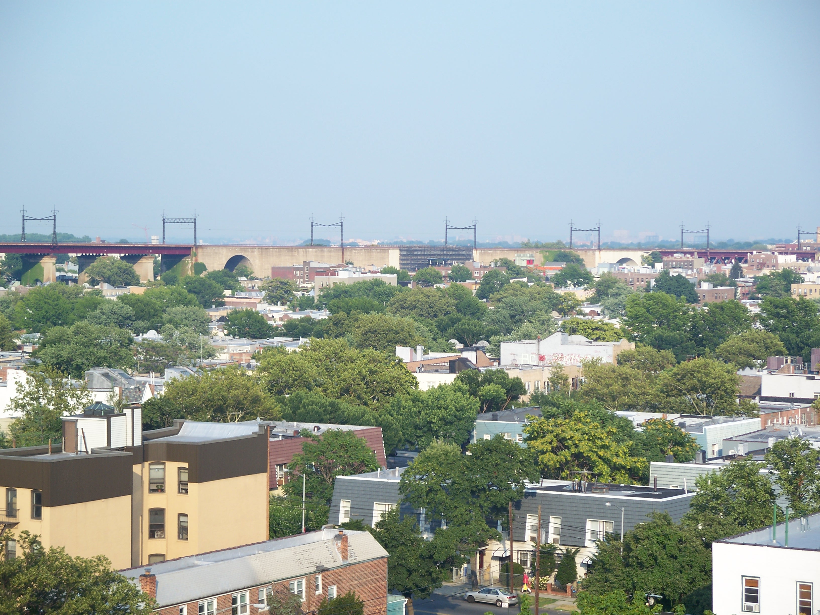 Looking east at the east approach to the Hell Gate Bridge from the Triboro suspension bridge