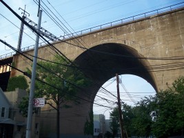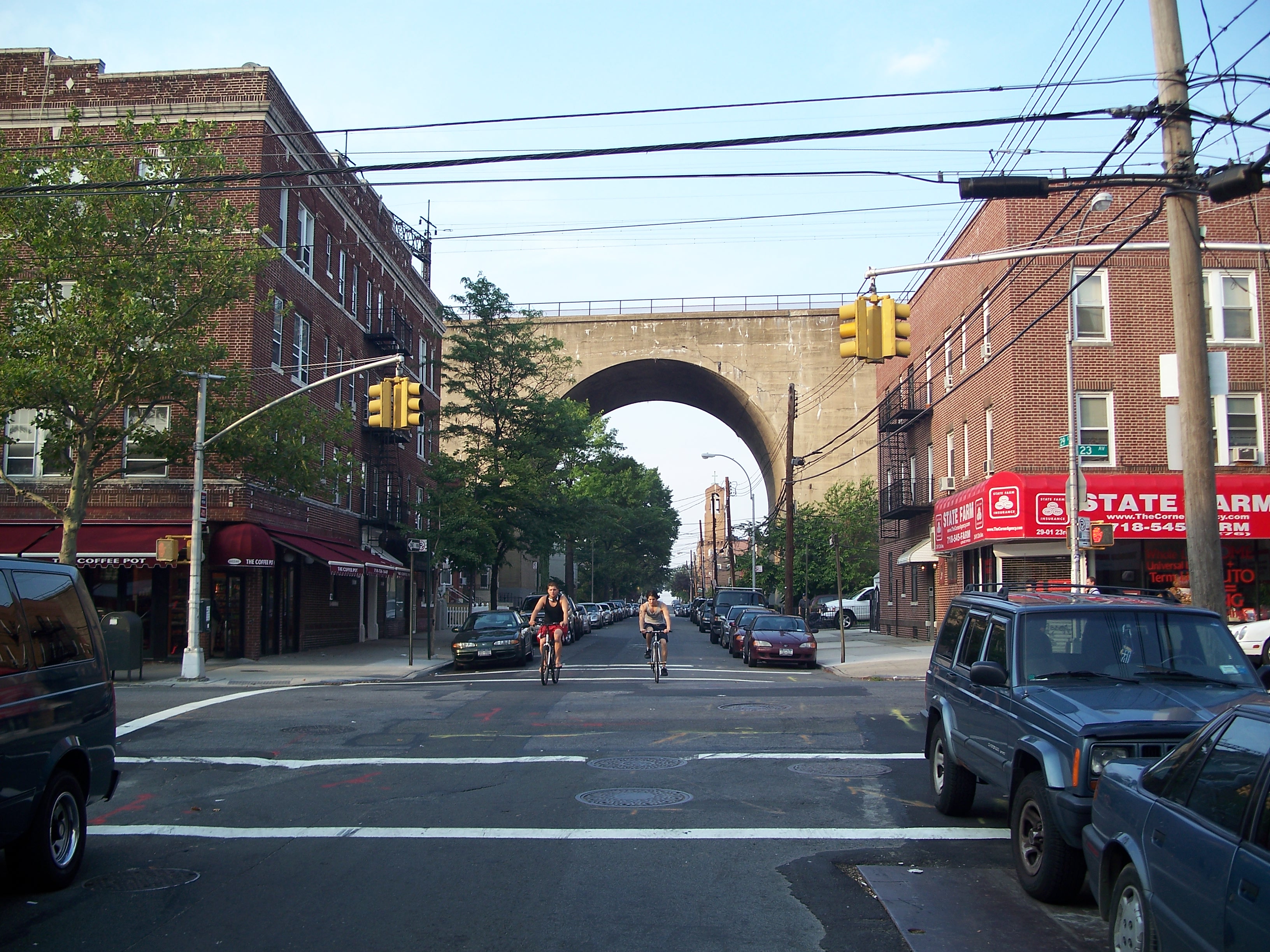 The BMT Astoria Line terminates underneath an NYCCRR arch bridge over 31st Street. This would be a likely spot for a transfer point between the Circumferential Line and the BMT Astoria. If there's space on the deck for platforms, escalators and elevators would either have to descend inside the masonry or, more likely, along the outside of the arch.