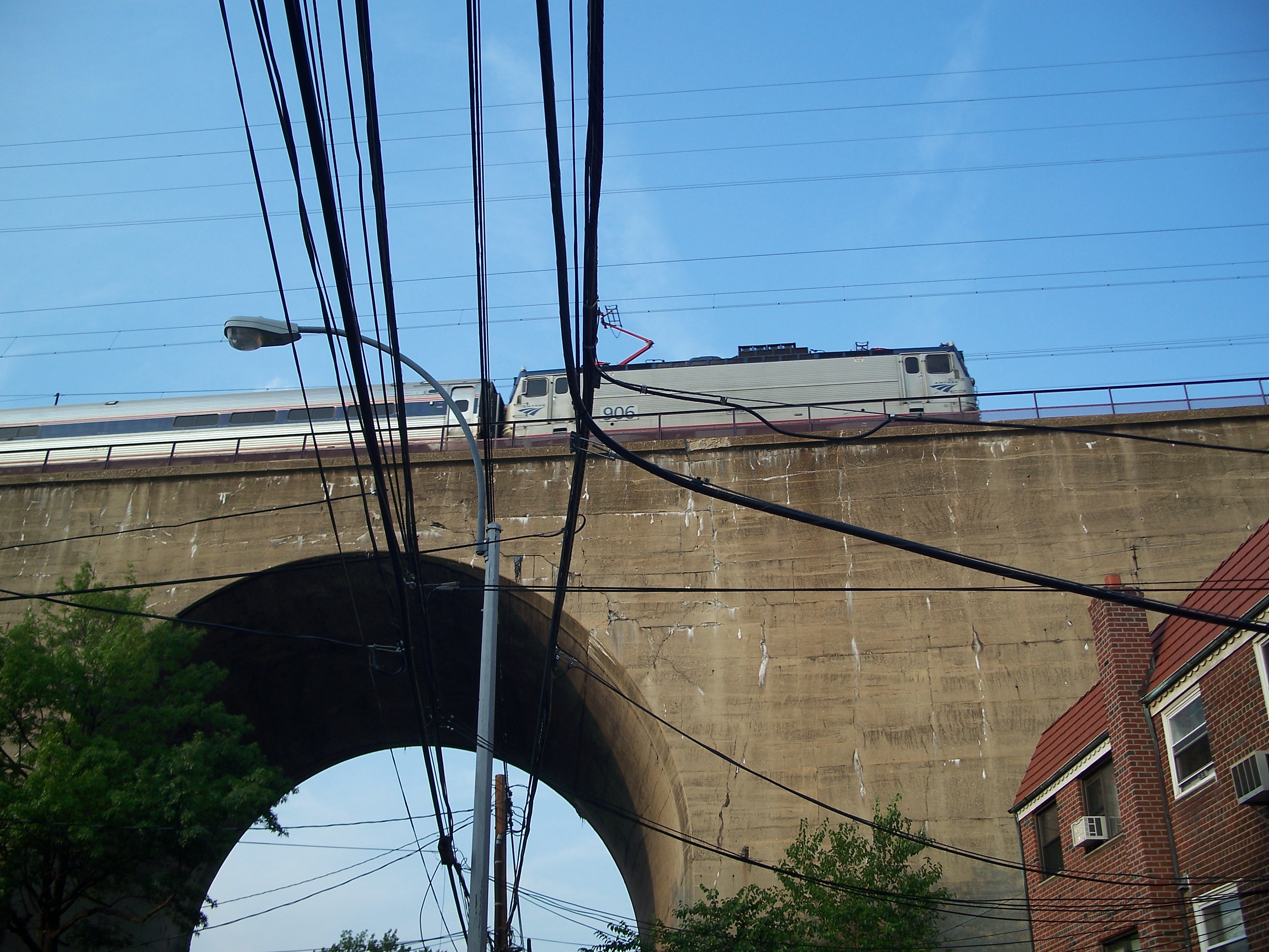 Amtrak train passing over 28th Street on its way to Sunnyside and Penn Station