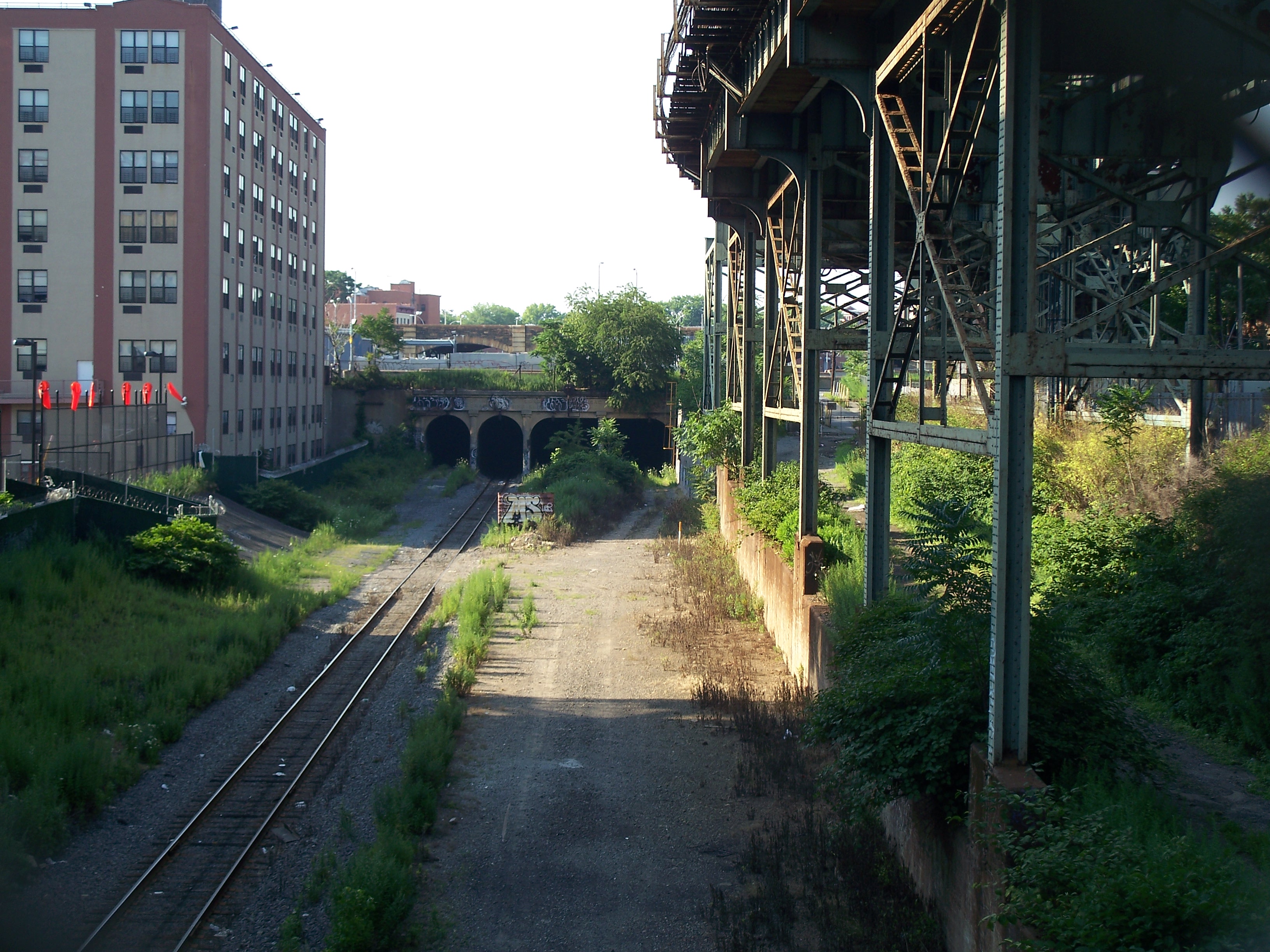 Looking south from over the East NY tunnel portal. Note the abandoned platform on the left