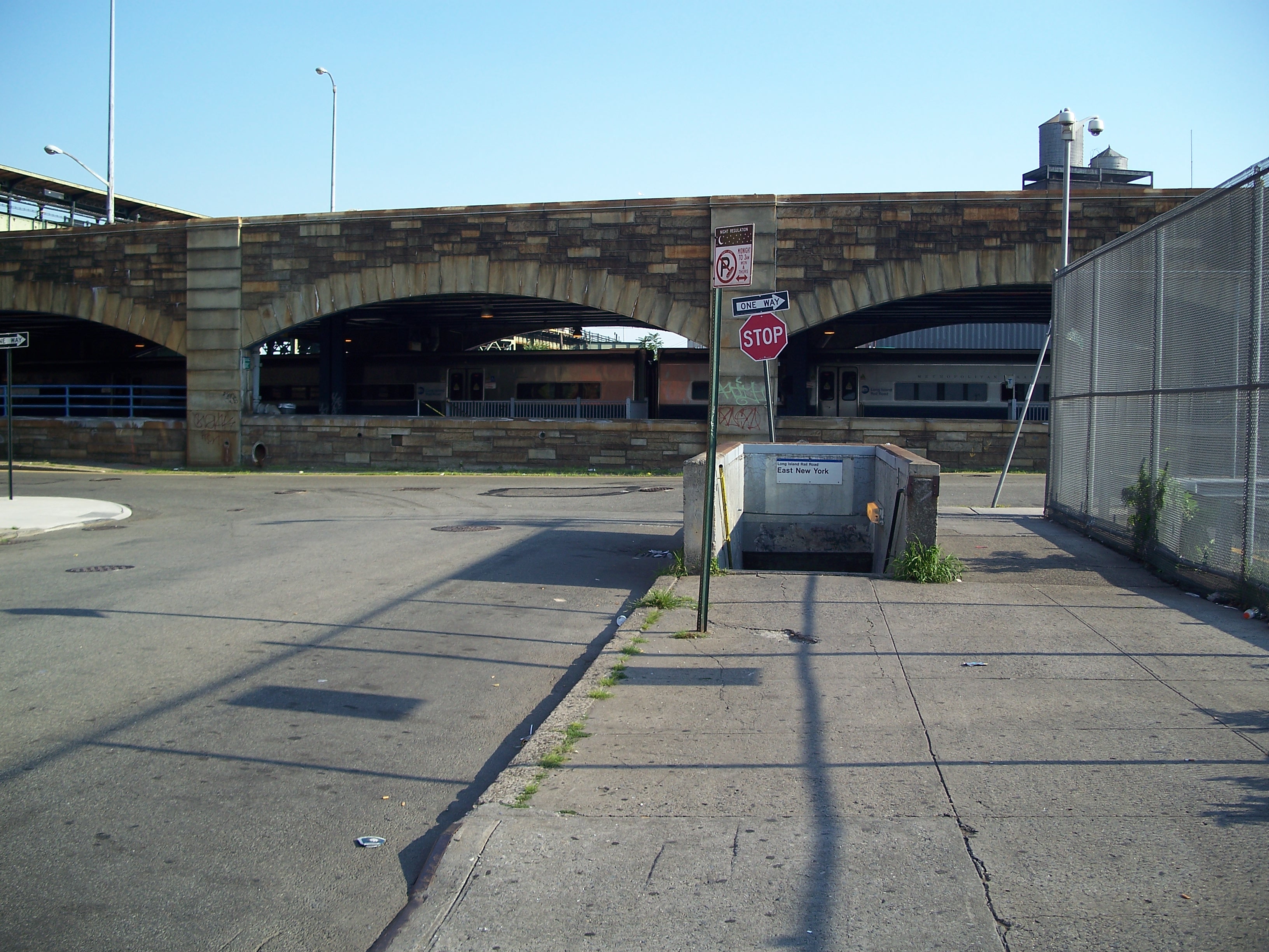 The East New York Tunnel was dug in 1914 during the massive grade-crossing elimination project that elevated or submerged most of the Bay Ridge Line. The tunnel begins just south of Liberty Avenue and passes under the mess at Broadway Junction, including Atlantic Avenue, Fulton Street, Broadway, and Bushwich Avenue before running under the western edge of Evergreen Cemetery and emerging as an elevated line near the corner of Evergreen Avenue and Piling Street.
