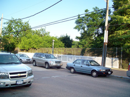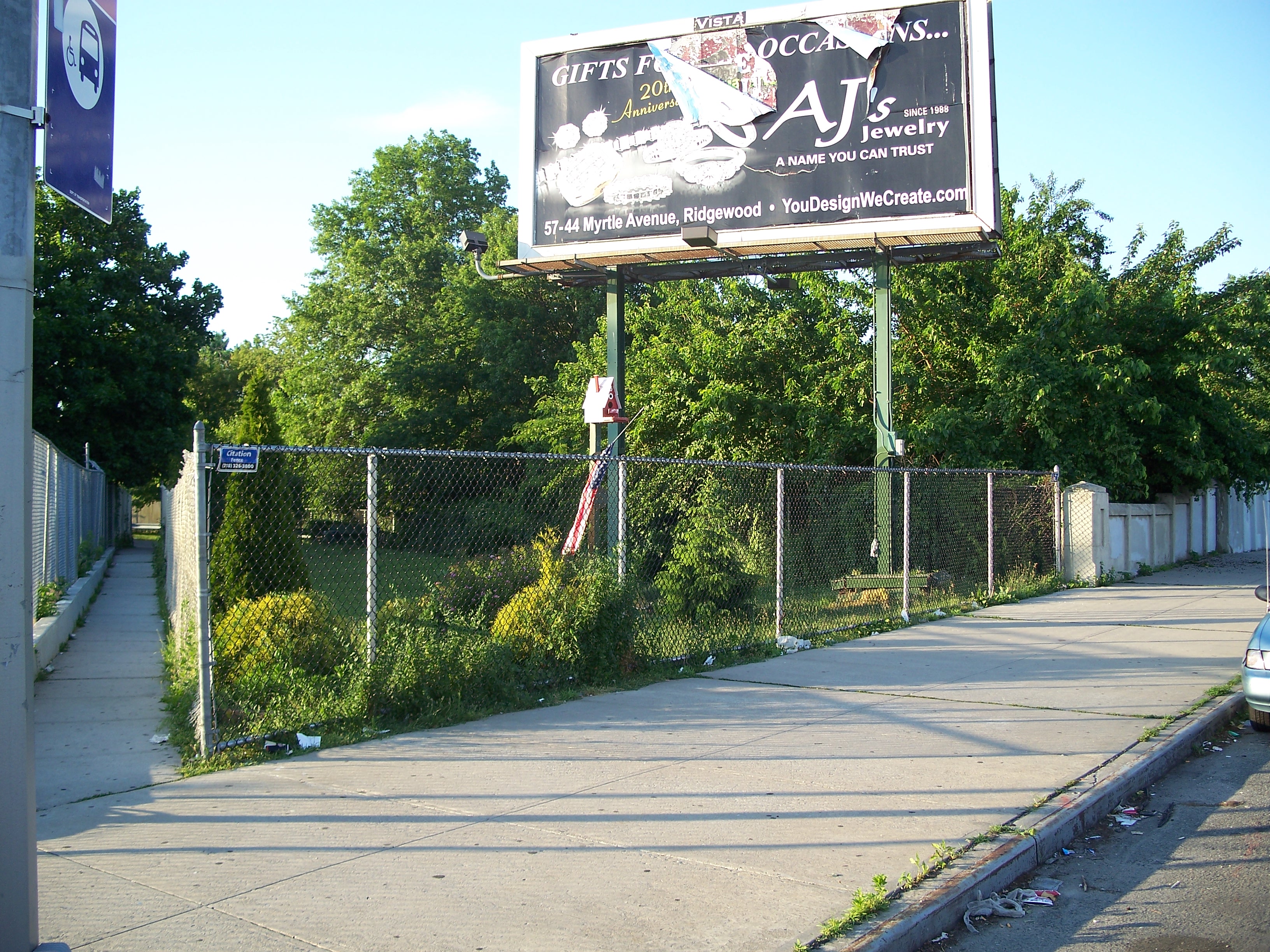 Although this is only a few blocks north of the Metropolitan Avenue station, this might be a nice spot for a station, given an available (and othewise unusable) small plot of land by the tracks and proximity to Juniper Valley Park.