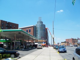 The Brooklyn IRT line (2 and 5 trains) terminates at the intersection of Flatbush Avenue and Nostrand Avenue, just north of the freight rail tracks. Triangle Junction, a new retail building housing a Target store was built just to the south of the IRT station betweeen Avenue H, Flatbush and Nostrand. The rear part of the parking garage for the building extends over the freight tracks. Presumably, a new station would be built under the parking garage or (more likely) to the west on the site of a fresh produce market that would be seized with eminent domain. A pedestrian tunnel could then connect the two stations.