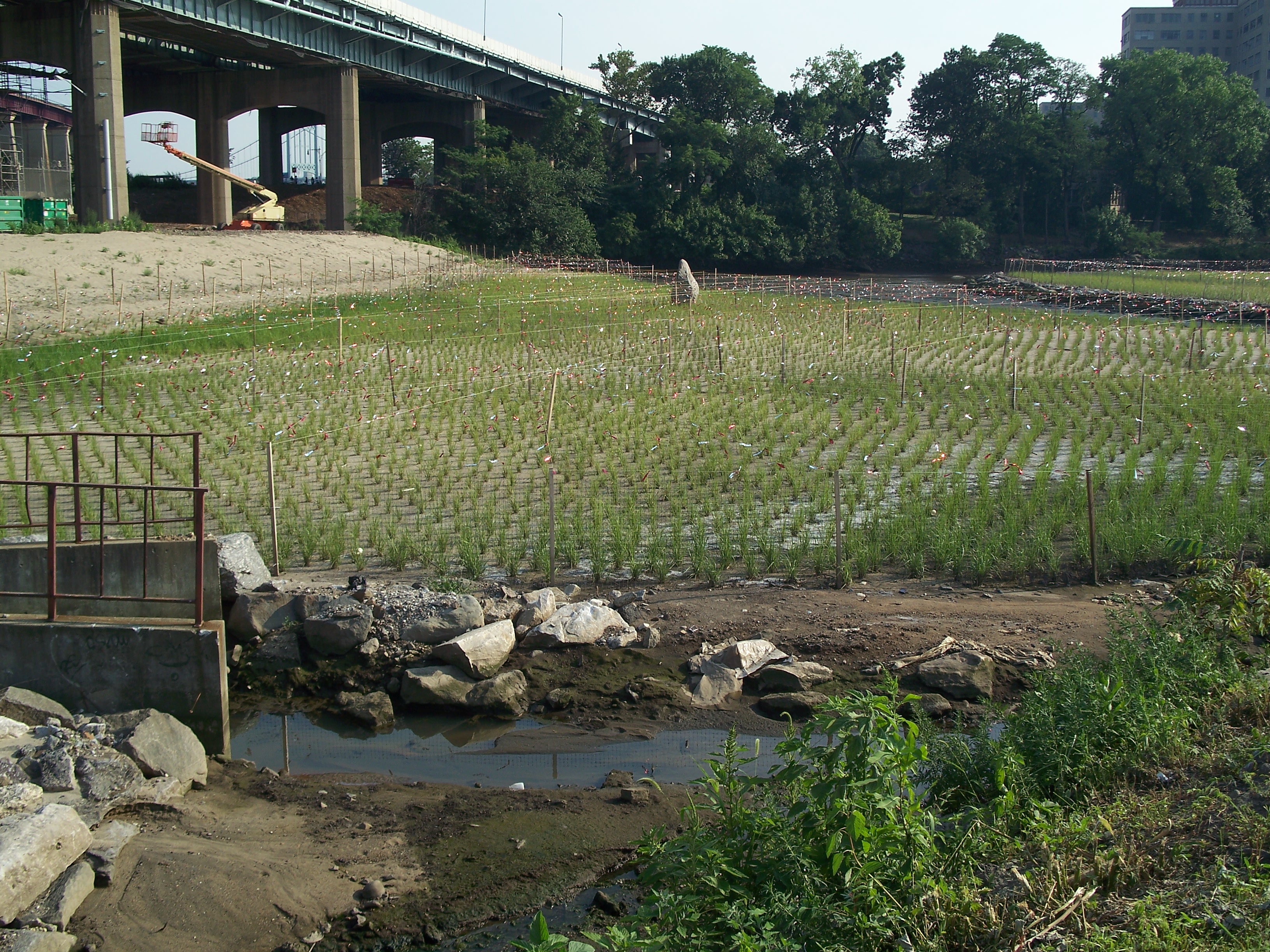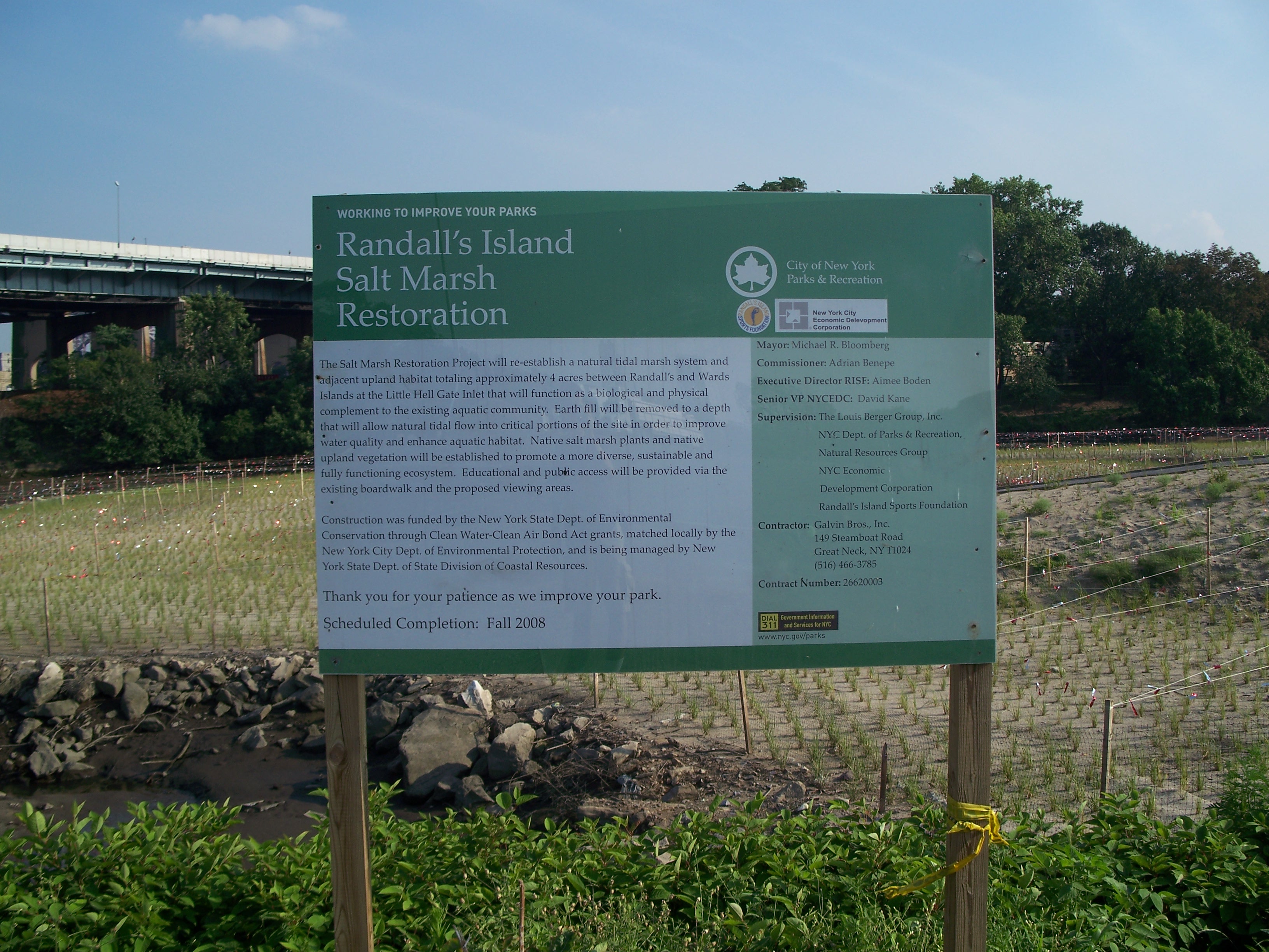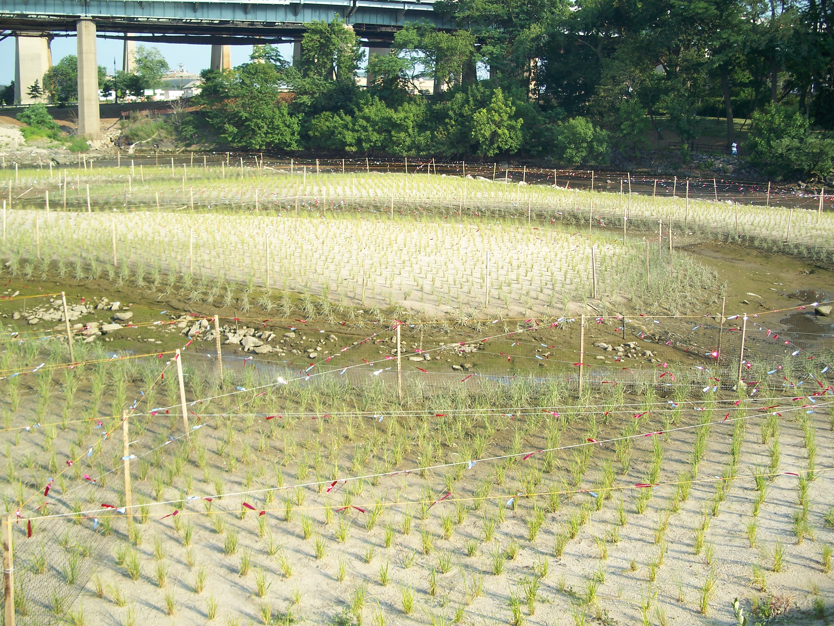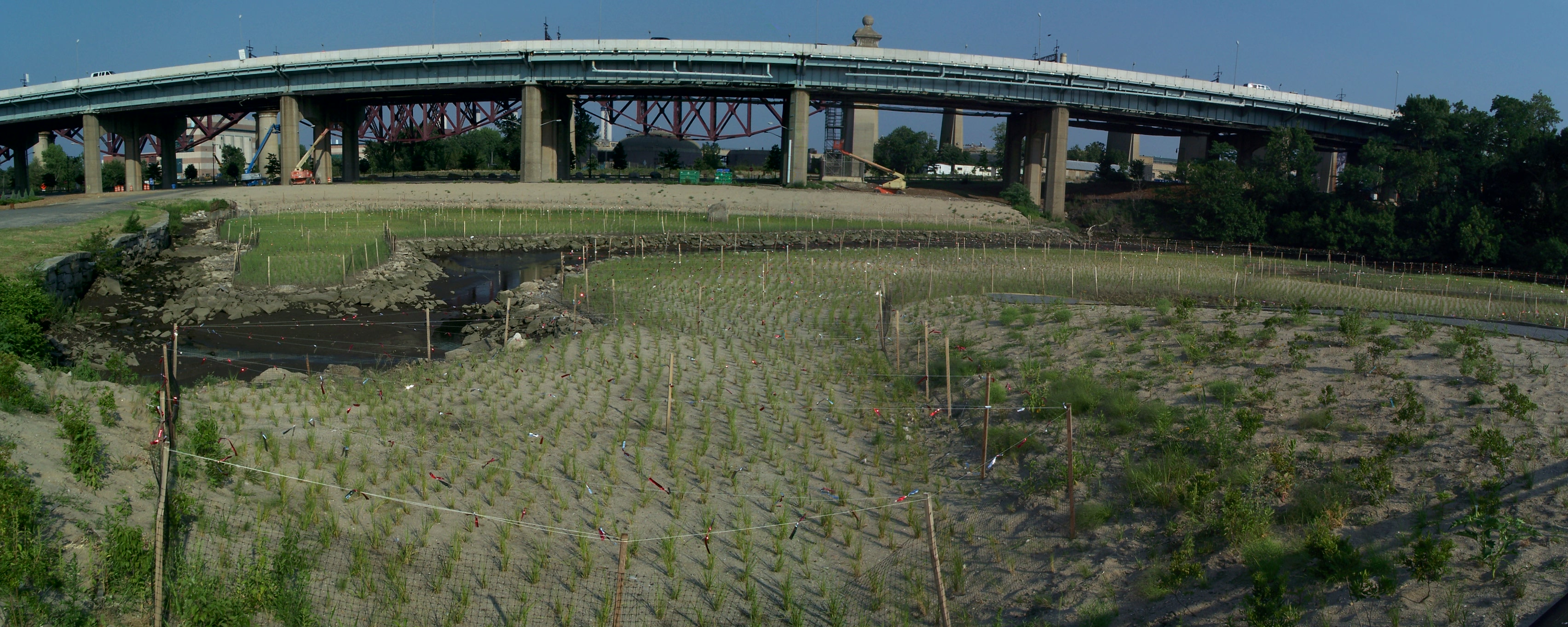 Salt marsh restoration - triboro bridge viaduct in the distance