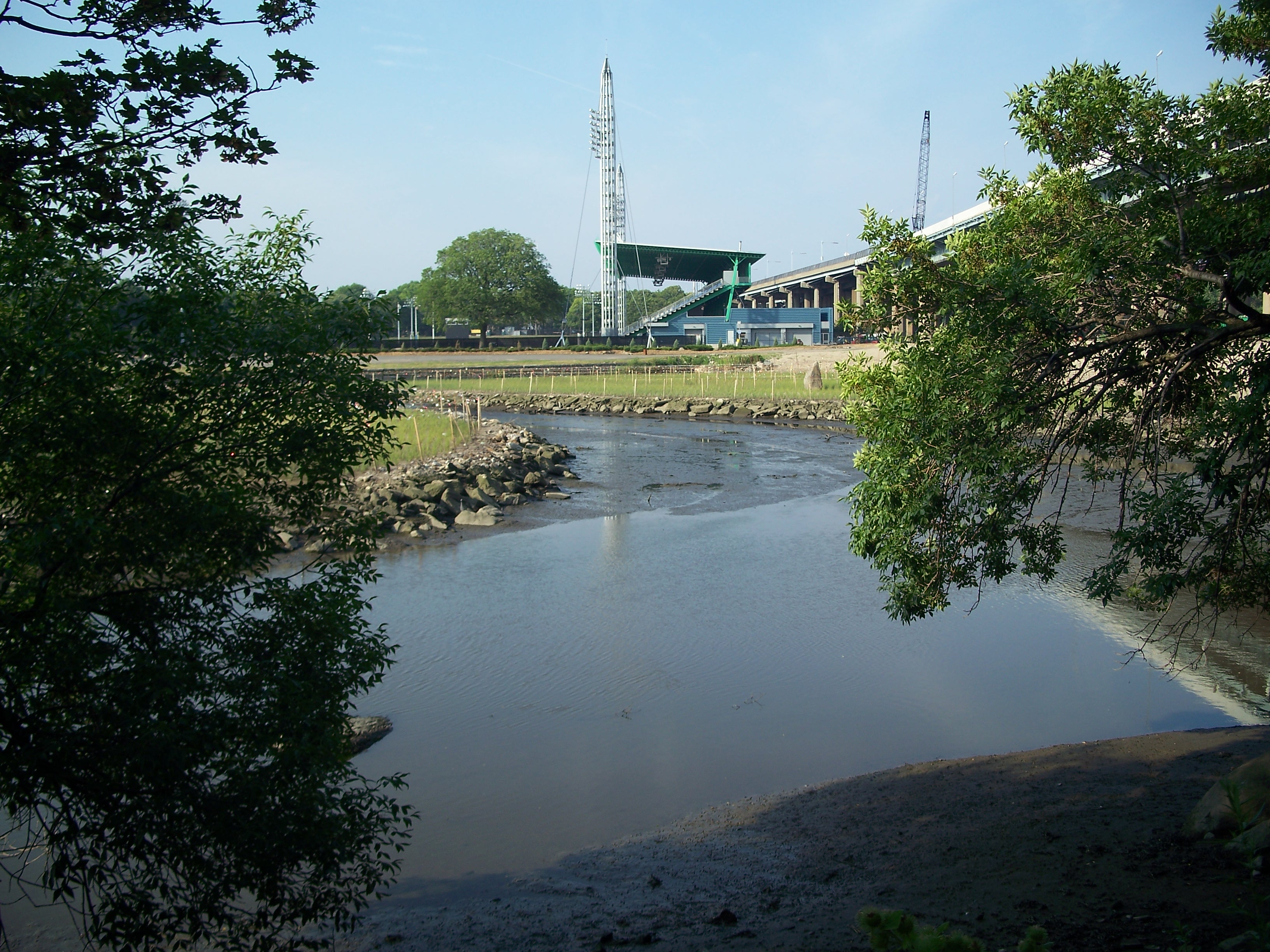 Wards Island and Randalls Island used to be separated by a tidal marsh. Lacking an appreciation for the importance of wetlands for water filtration, the marsh was filled in to expand available land on the island. A project to restore the marsh was initiated around 2007.